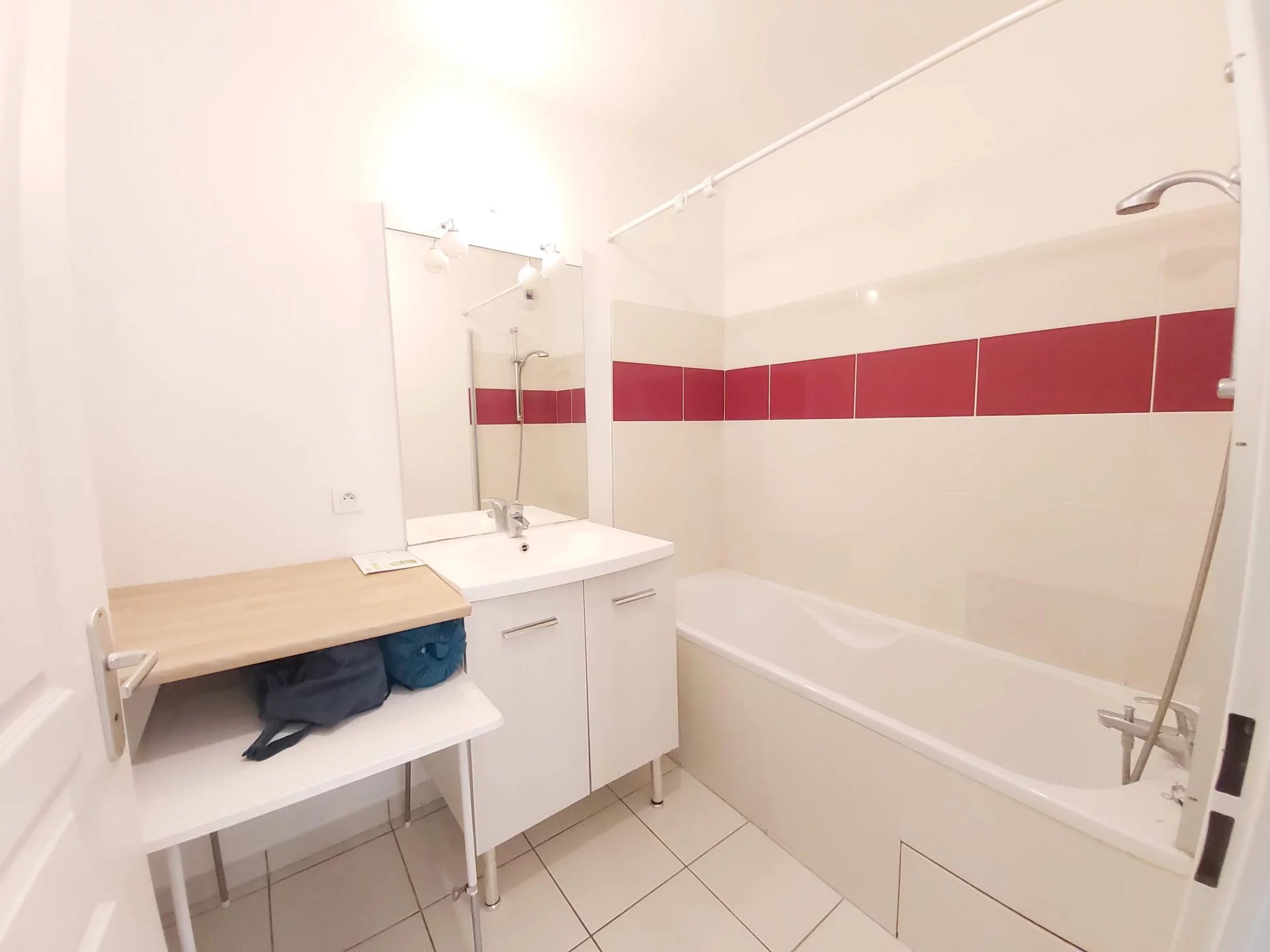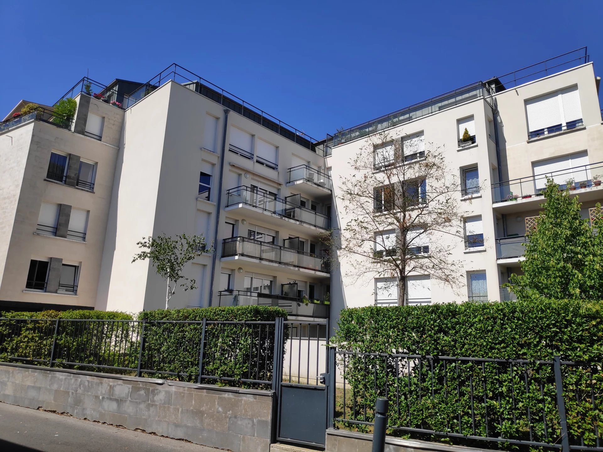 COEUR CENTRE VILLE Résidence standing de 2011 avec chauffage et eau chaude collectif. Appartement F2 comprenant entrée cuisine séjour sur balcon dégagement chambre salle de bains WC placards Double parking en sous sol 2 MINUTES A PIED DU RER E