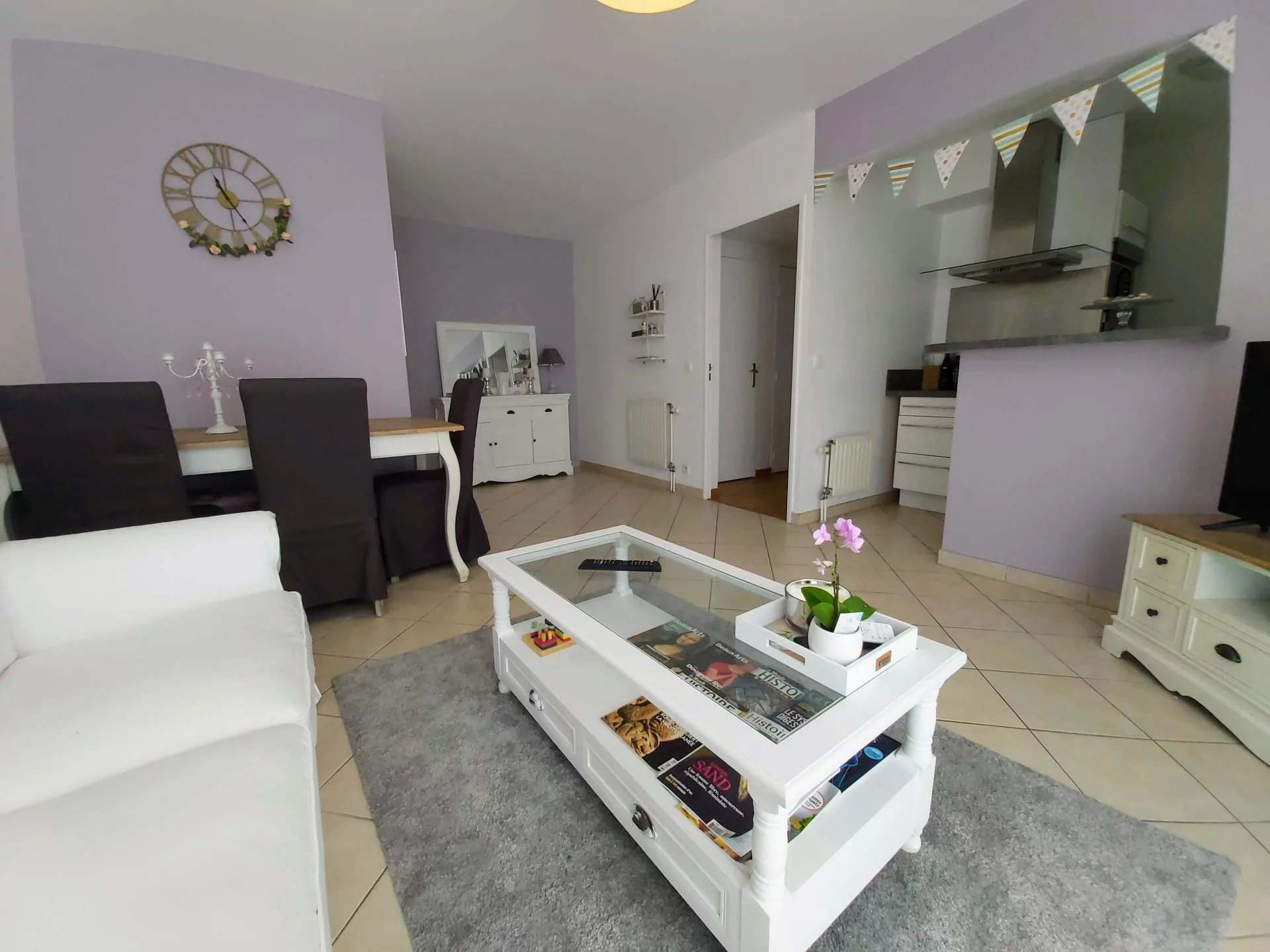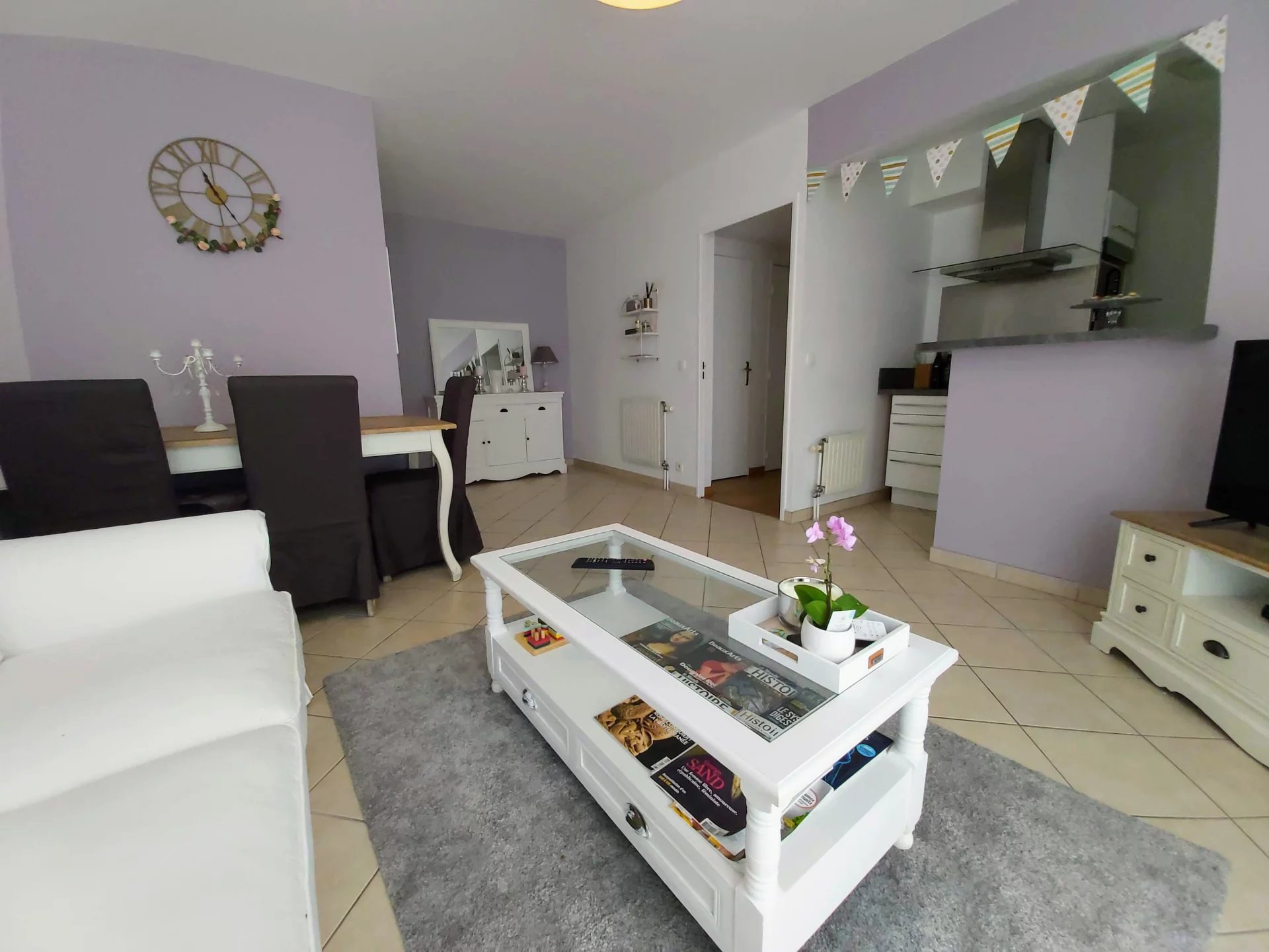 EXCLUSIVITÉ A MOINS DE 12 MN A PIED DU RER E Résidence standing Appartement F3 composé d'une entrée avec placard, séjour sur balcon, cuisine ouverte aménagée et équipée, 2 chambres dont 1 avec placard, salle de bains, WC. Volets roulants électriques. 2 parkings en sous sol. BEL ÉTAT GÉNÉRAL CHAUFFAGE ET EAU CHAUDE COMPRIS DANS LES CHARGES !