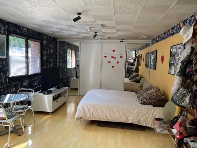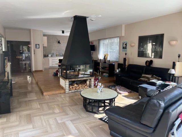Jolie maison de 200m2 sur 2 niveaux avec jardin arboré.Elle se compose d'un grand salon avec une cuisine ouverte, cheminée de 60m2, un espace nuit comprenant deux chambres avec placard (17m2 et 12,5m2, une salle de bain et un wc. A l'étage inférieur 3 grandes chambres (24m2, 15m2 et 13m2, un salle d'eau, chaufferie et un atelier avec cave à vin.