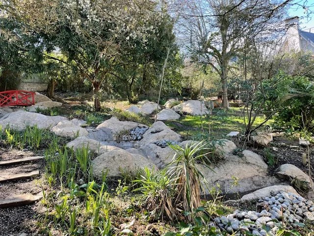 Nichée au sein d'un bucolique jardin paysagé agrémenté d'une cascade, vous serez séduit par l'alliance du charme de l'ancien et du confort moderne.