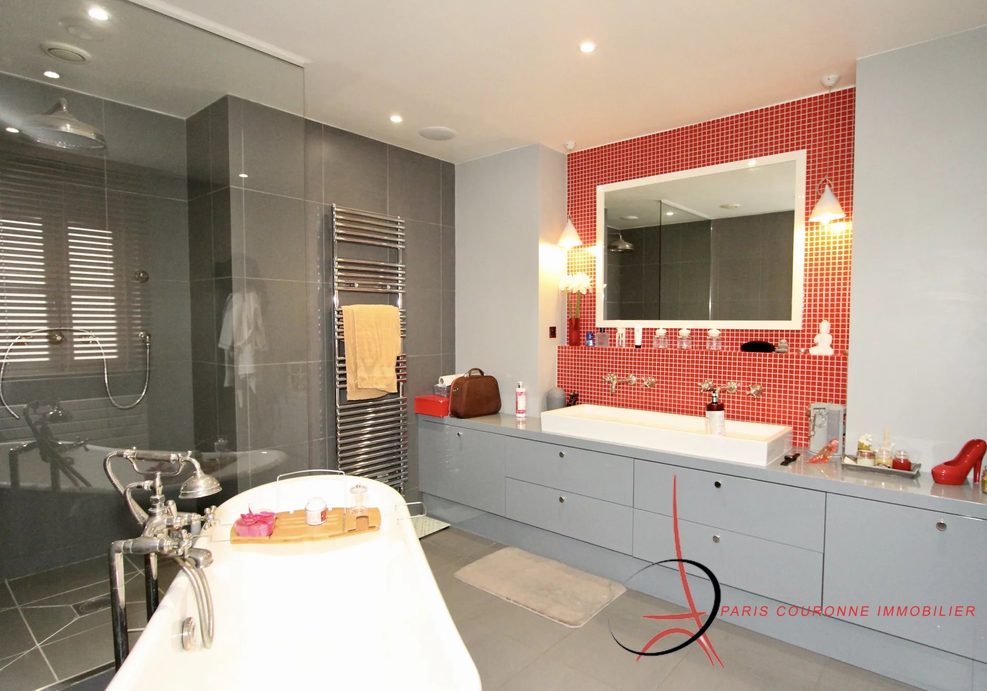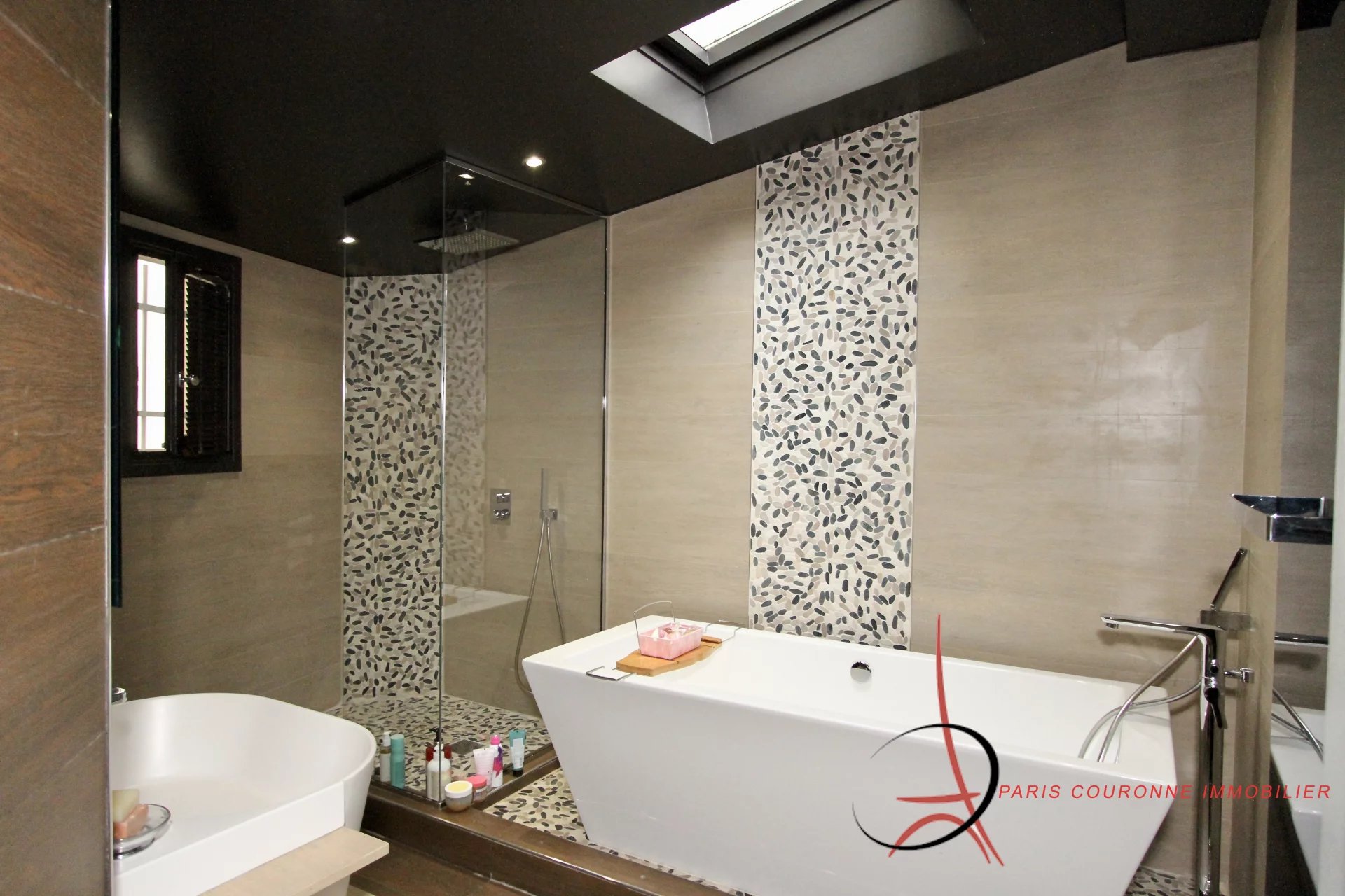 A l'étage une chambre parentale avec large dressing et sa salle de bain et douche, toilette séparée, deux chambres et une seconde salle de bain et douche, toilette séparée, buanderie.