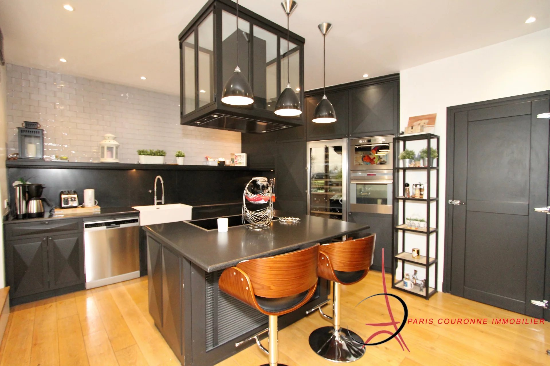 Un séjour avec cheminée, une salle à manger, une cuisine de 20 m2 (avec cloison coulissante) bordée d'une belle terrasse de 15 m2 à l'abri des regards.