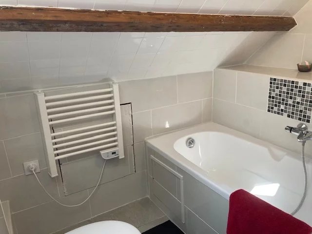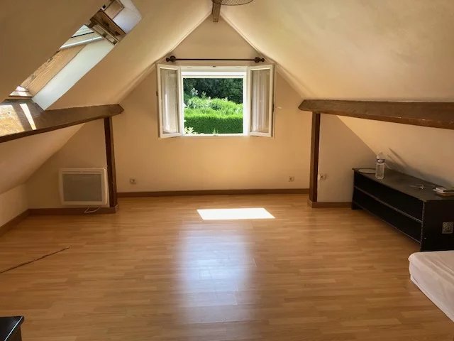 Niveau supérieur mansardé : un palier/bureau dessert une grande chambre 23 m2 env au-sol, deux autres chambres de 9 m2 env chacune et une salle de bain avec toilettes.