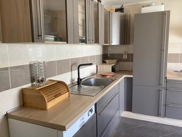 Rez-de-jardin: Salon/salle à manger lumière traversante 30 m2 env, cuisine dinatoire moderne séparée 11 m2 avec accès terrasse, un bureau/salle TV, une chambre 14 m2 , une salle de douche et un WC séparé.