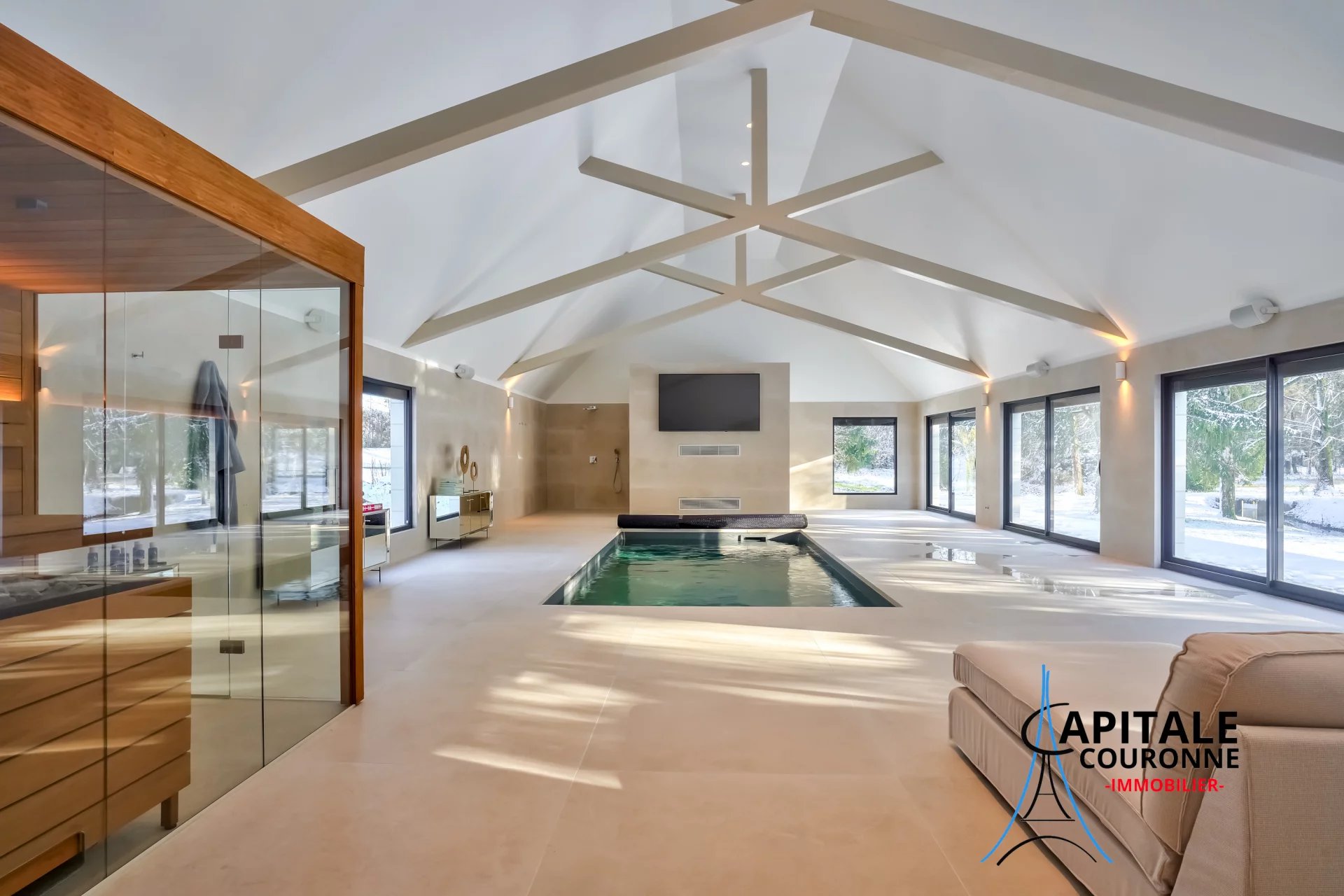 A 10 mn de Senlis, exceptionnelle propriété de 380 m², dont 134 m² d’un espace de détente piscine intérieure (toit cathédrale 5,6 m hauteur), sauna et vue panoramique. Nichée au coeur d'un vaste parc d’1,360 hectares, cette maison en pierre de taille a été entièrement rénovée par un architecte en 2021. (Couverture, isolation, plomberie, éléc, sols etc…). Domotique, prestations et matériaux très haut-de-gamme.(Parquet Carresol, meunuiseries Alu Damiani, Marbres Padacini, robineterie HansGrohé, interrupteurs Atelier Luxus, etc...)