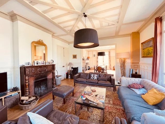 La demeure principale d’env 310 m2 sur trois niveaux (et S/sol total), dispose d’une belle entrée, d’un lumineux et grand salon/salle à manger avec cheminées, triple exposition (60 m2 env), d’une cuisine séparée, de bureaux et sept chambres dont cinq suites.