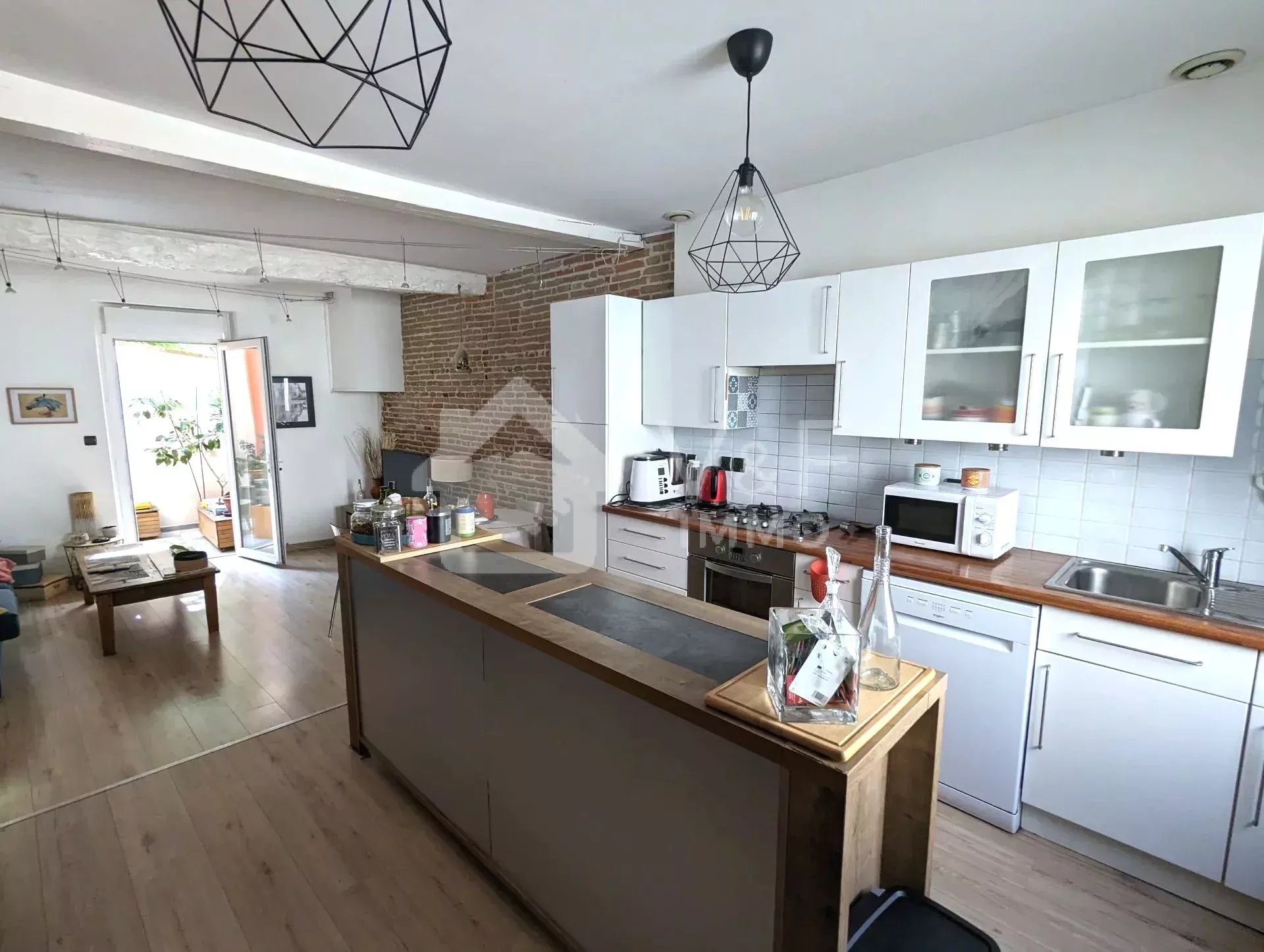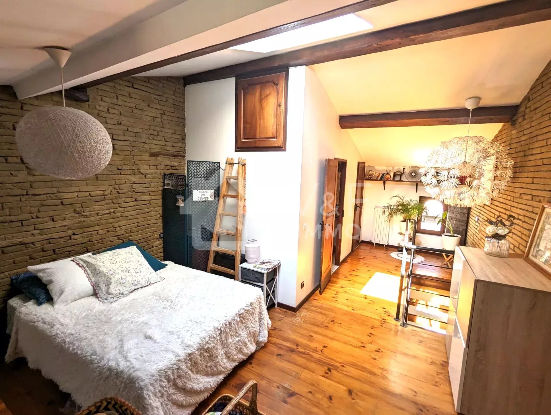 Vieux Blagnac, au coeur de ville magnifique maison de ville alliant le charme de l'ancien avec le confort des éléments récents. Vous serez charmés par l'authenticité des matériaux: briques au mur, parquet bois, poutres, auteur sous plafond et son emplacement au coeur des commerces et à proximité immédiate du Parc des Ramiers( bord de Garonne, Piscine, stade de Rugby) de la ligne de bus 70 et du Tram. Grande pièce de vie traversante et lumineuse donnant sur une terrasse intimiste, à l'étage une grande chambre ouverte et lumineuse avec son puits de jour, dotée d'un dressing, une salle de bain aménagée de rangements et espace buanderie, wc séparés. Le chauffage est au gaz avec chaudière à condensation, conduit de cheminée existant. Plusieurs possibilités s'offrent à vous: idéalement située, elle conviendra pour une habitation principale, le souhait de faire de la location touristique ou meublée,ainsi qu'un emplacement de choix pour des bureaux. Coup de coeur assuré.Appelez Françoise au 07 68 33 96 18