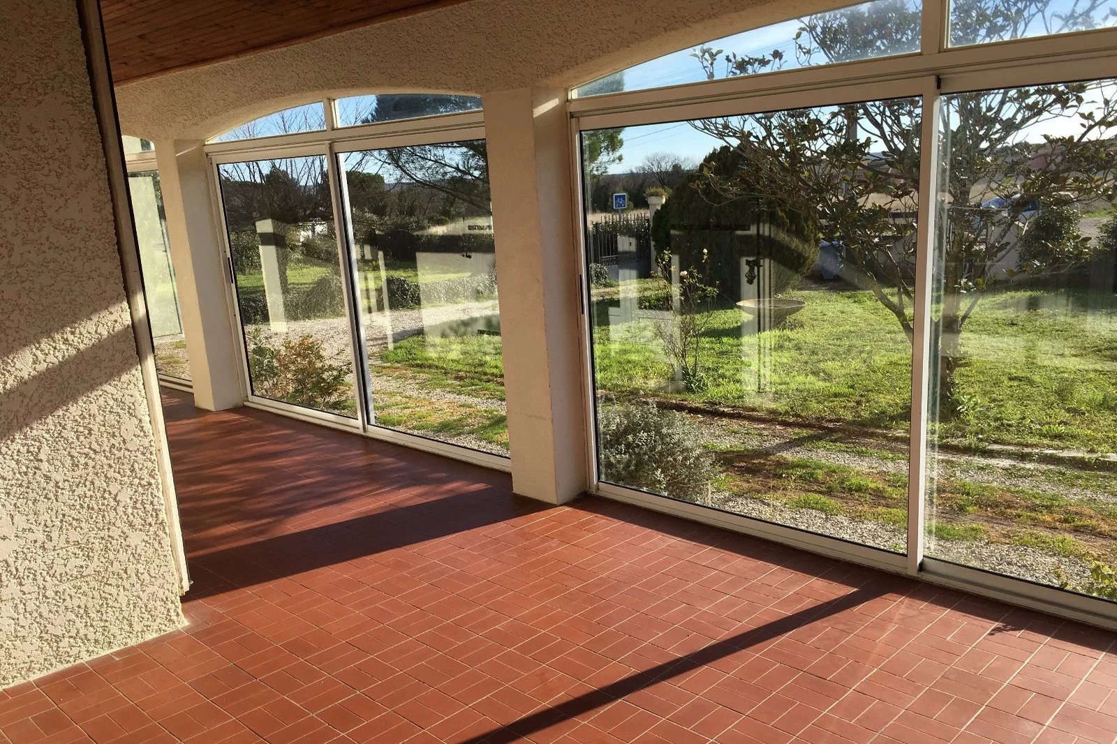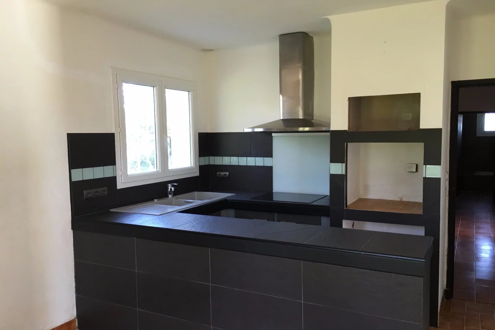 A louer, villa avec garage sur un terrain de 2200m², elle comprend une cuisine séparée avec cellier, un séjour avec climatisation et cheminée, 3 chambres, une salle de bains et des wc separés