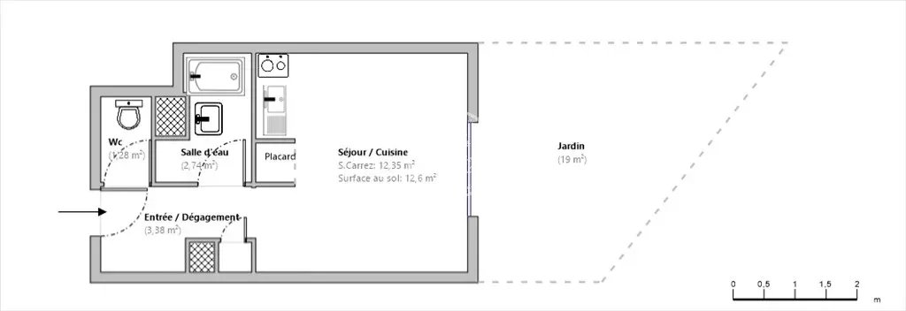 Cet appartement lumineux, situé en Rez-de-Jardin, a été entièrement rénové avec soin. Il bénéficie d'un extérieur de 19 m², parfait pour profiter des journées ensoleillées. L'agencement a été conçu de manière optimale pour offrir un cadre de vie pratique et agréable.