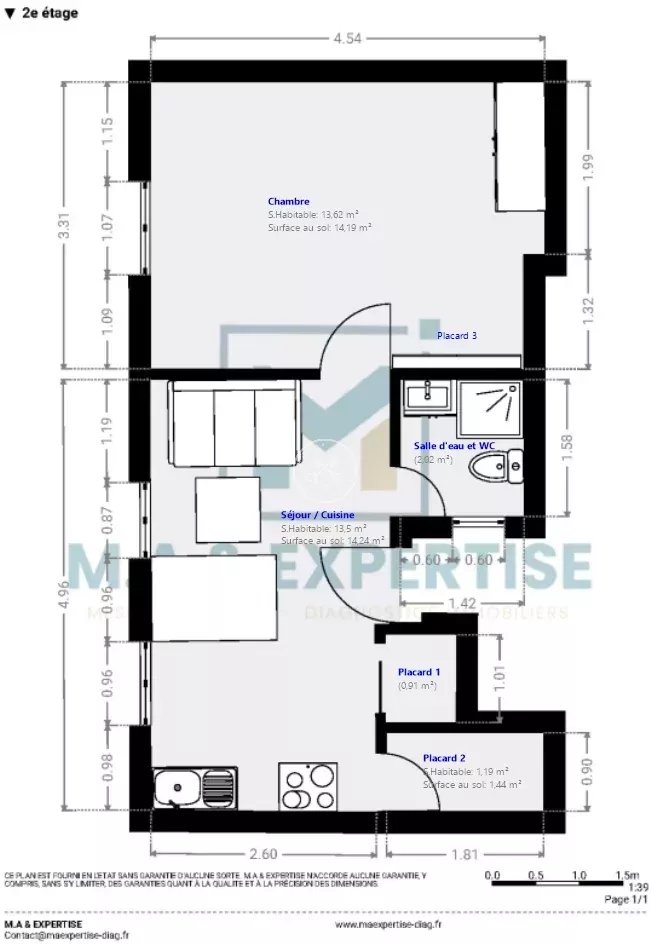 D'une superficie de 32 m², (30.33 en loi carez) cet appartement bénéficie d'une belle exposition plein sud, ce qui lui garantit une luminosité agréable tout au long de la journée.