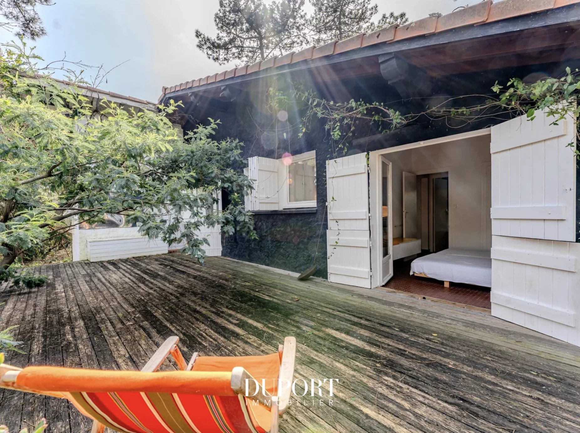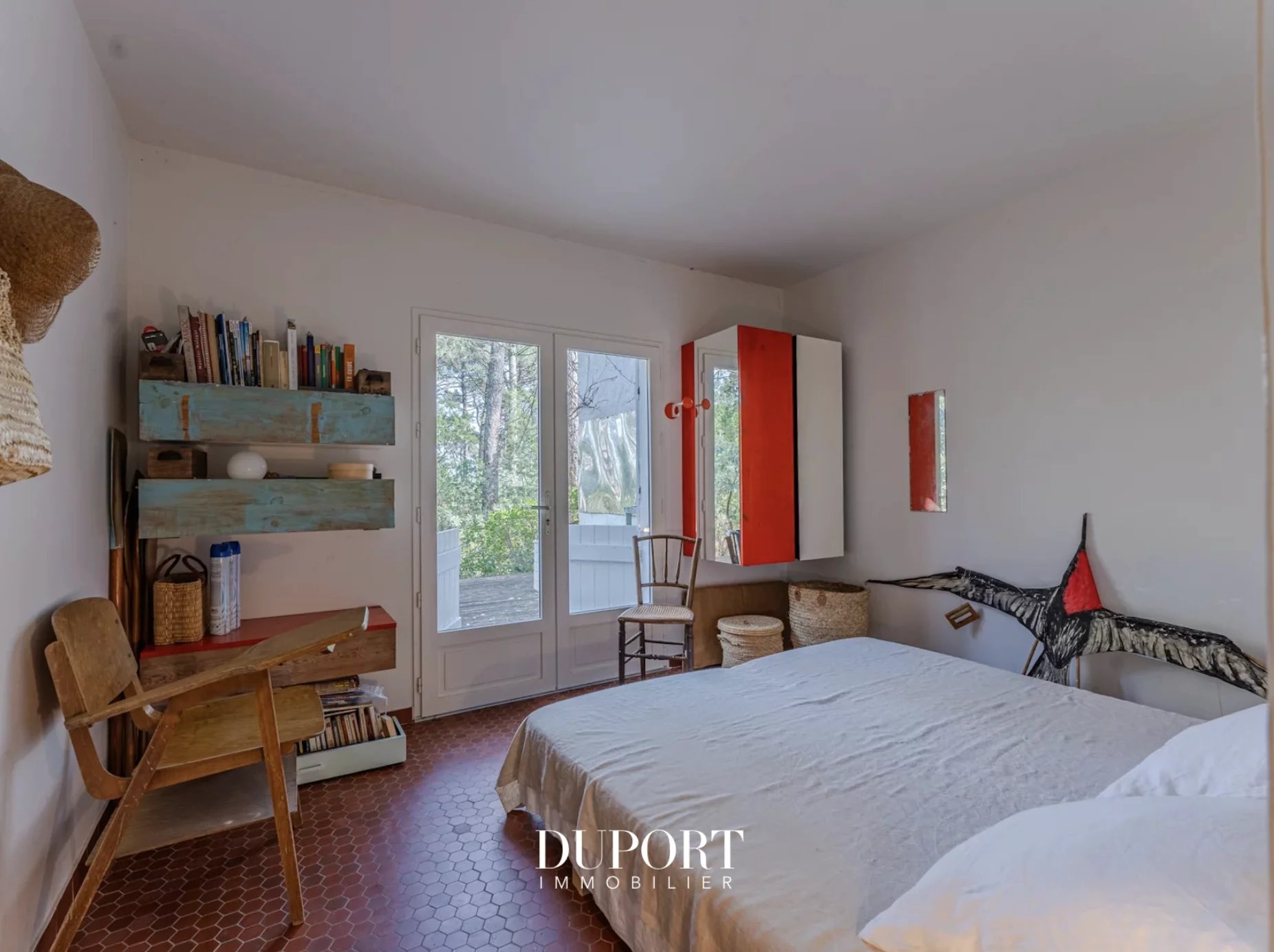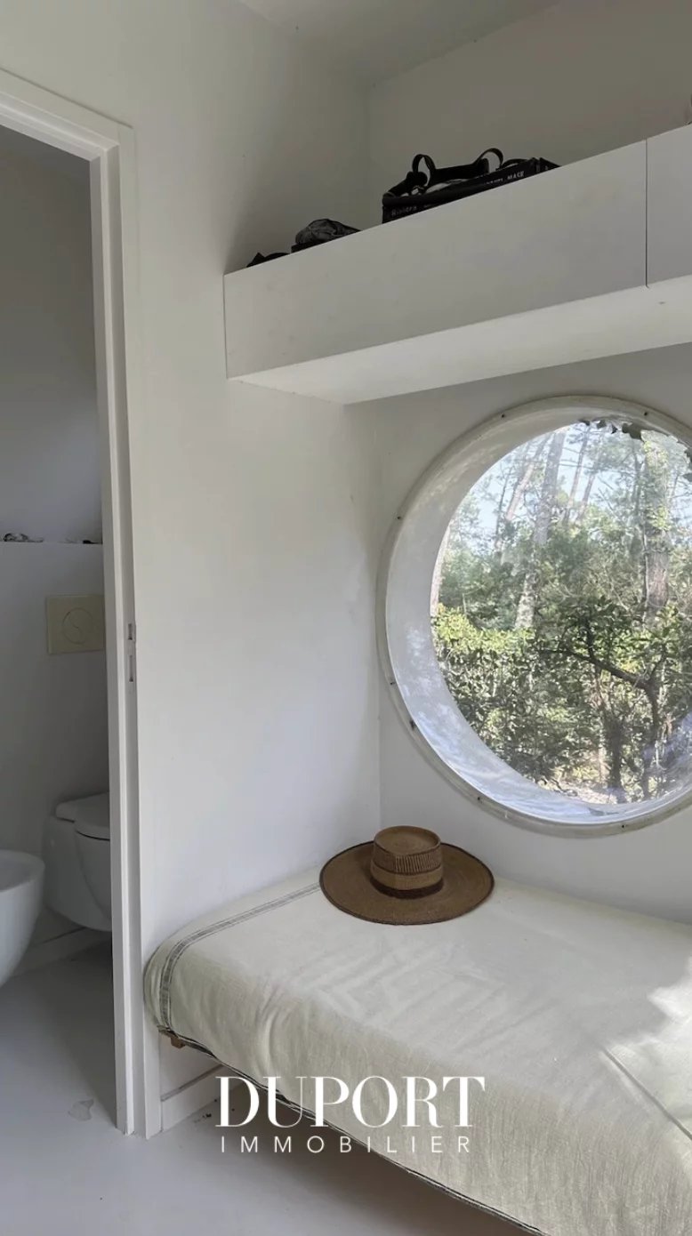 Sur la presqu'île du Cap Ferret, la Maison Duport vous présente cette magnifique villa de 90 m² rénovée par architecte. Dans un style maison de vacances, cette villa proche du bassin saura vous charmer par son charme Ferret Capien. Dès l'entrée dans les lieux, vous serez séduits par un salon/séjour lumineux grâce à ses baies vitrées, une cheminée fonctionnelle et une ambiance cosy. Une cuisine fonctionnelle donnant sur une grande terrasse complète la partie vie. Côté nuit, vous trouverez deux salles d'eau ainsi que quatre chambres dans la maison principale et une cinquième chambre indépendante avec un hublot donnant sur la végétation. Cette belle maison est implantée au coeur d'un jardin végétalisé de 1200 m². Les terrasses bois entourant la maison bénéficient de petits aperçus sur le bassin et la dune du Pyla.