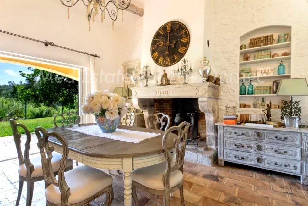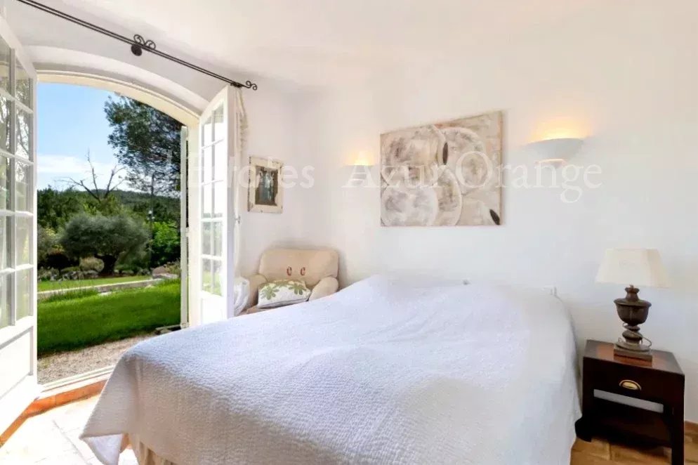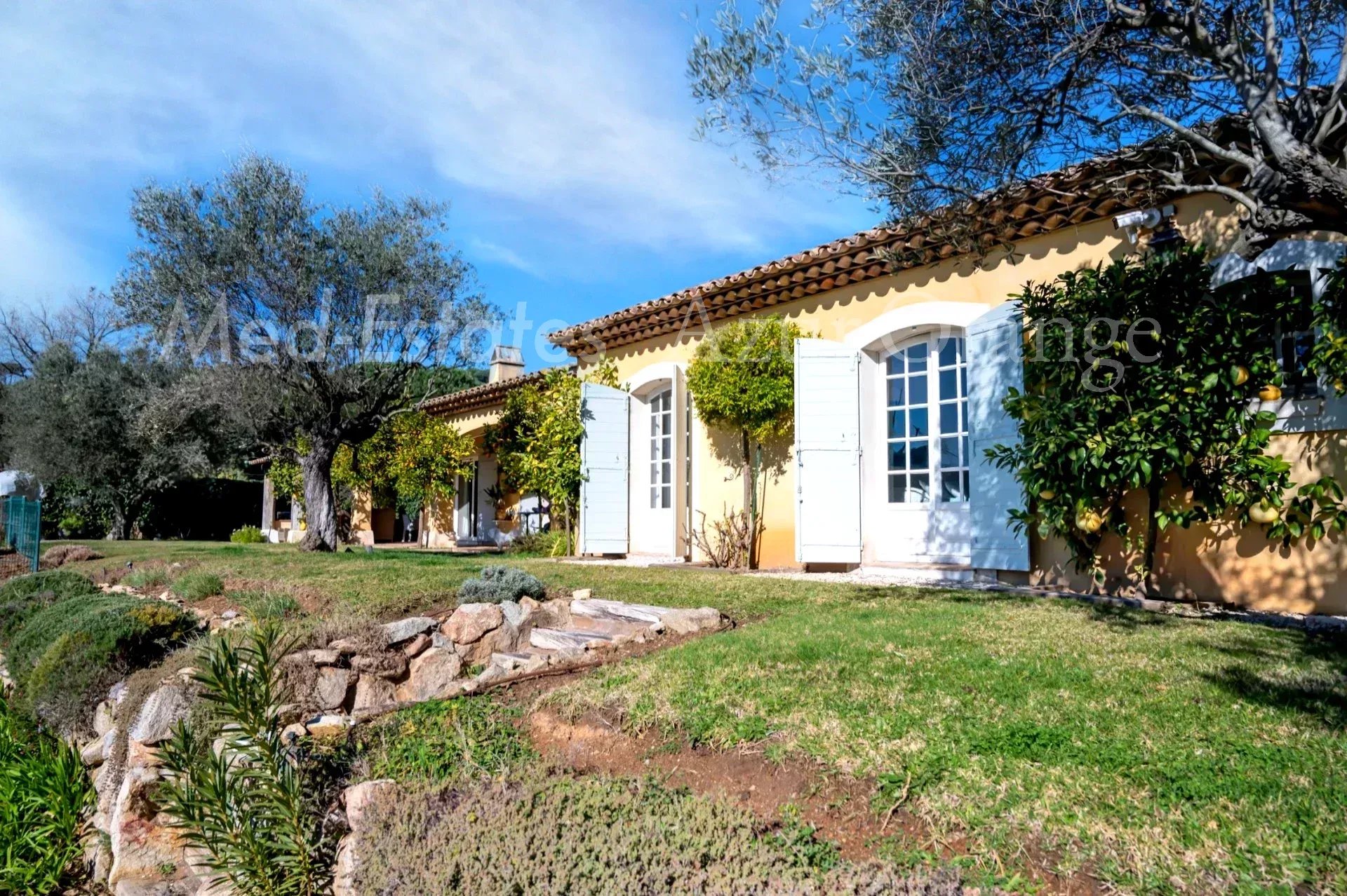 Au coeur des vignes charmante villa de +/- 160 m2, sur un terrain de 2800 m2 avec piscine. La maison offre des espaces agréables, une localisation exceptionnelle : au calme absolu, une vue sur le château de Grimaud ; très bon accès aux plages et à Port Grimaud (+/- 8min), St.-Tropez (+/- 15 min) La maison Entrée ; salon/salle à manger et cuisine entièrement équipée ; chambre avec salle de bain attenante. L'espace extérieur Piscine ; jardin ; garage pour 2 voitures ; parking sur le terrain. Forage. En supplément : un garage aménageable !