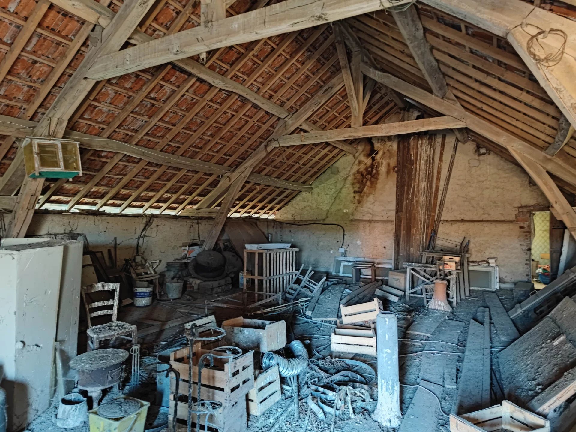 Un vaste grenier aménageable ainsi que l’aile gauche du bâtiment composé de deux pièces à rénover sont également présents permettant d’agrandir la bâtisse.