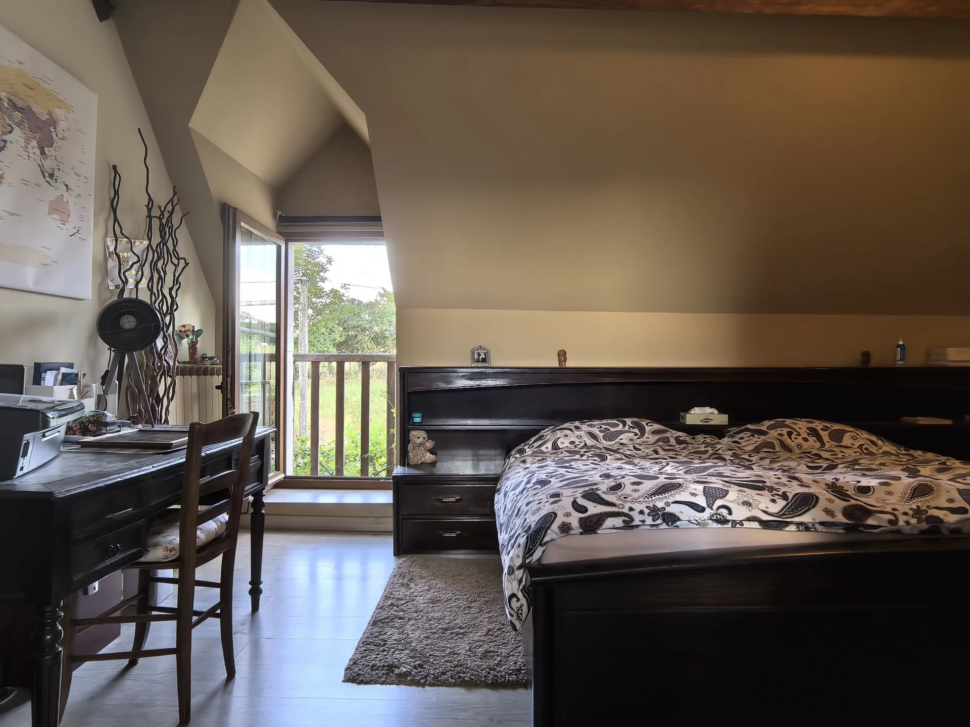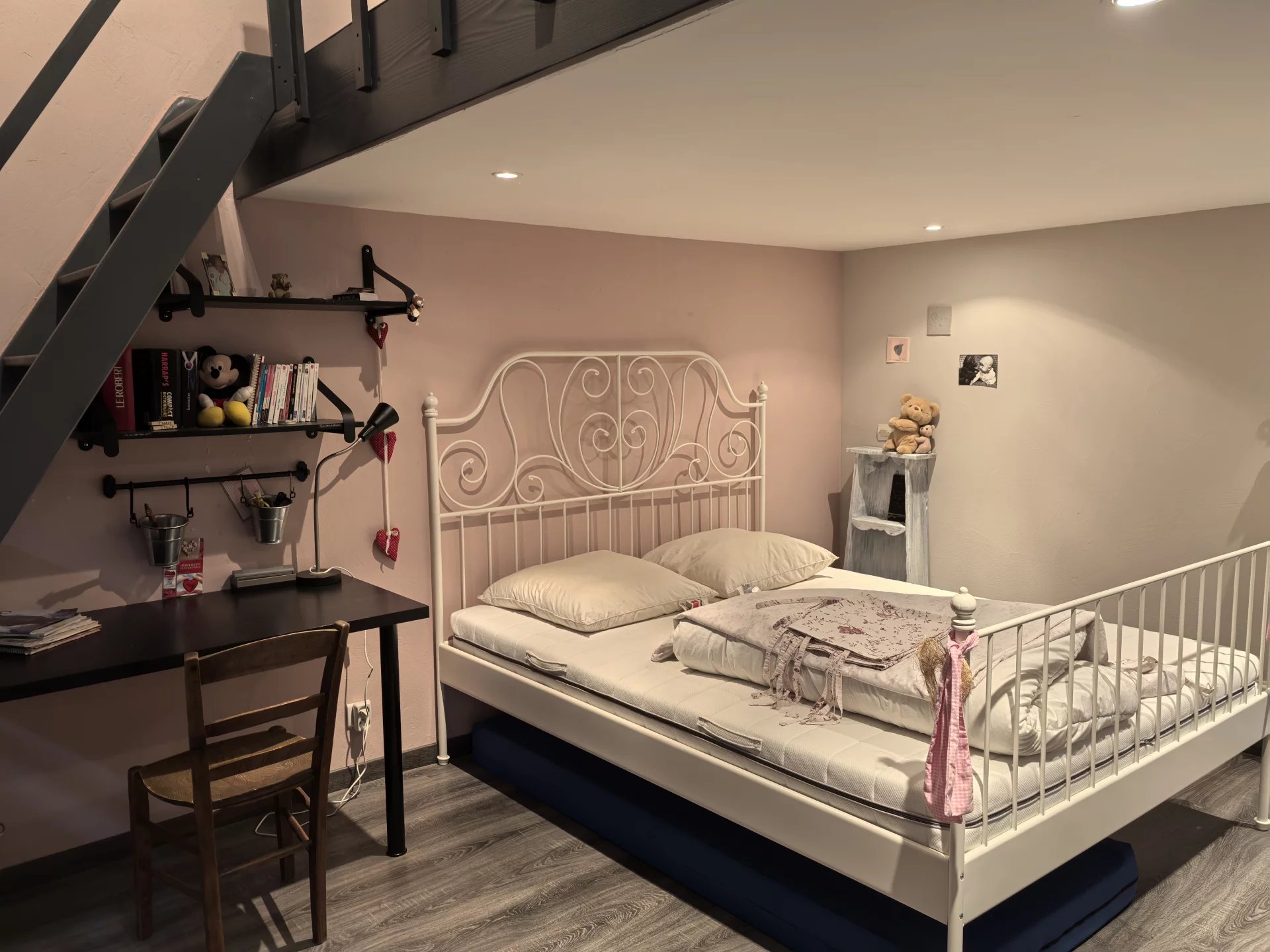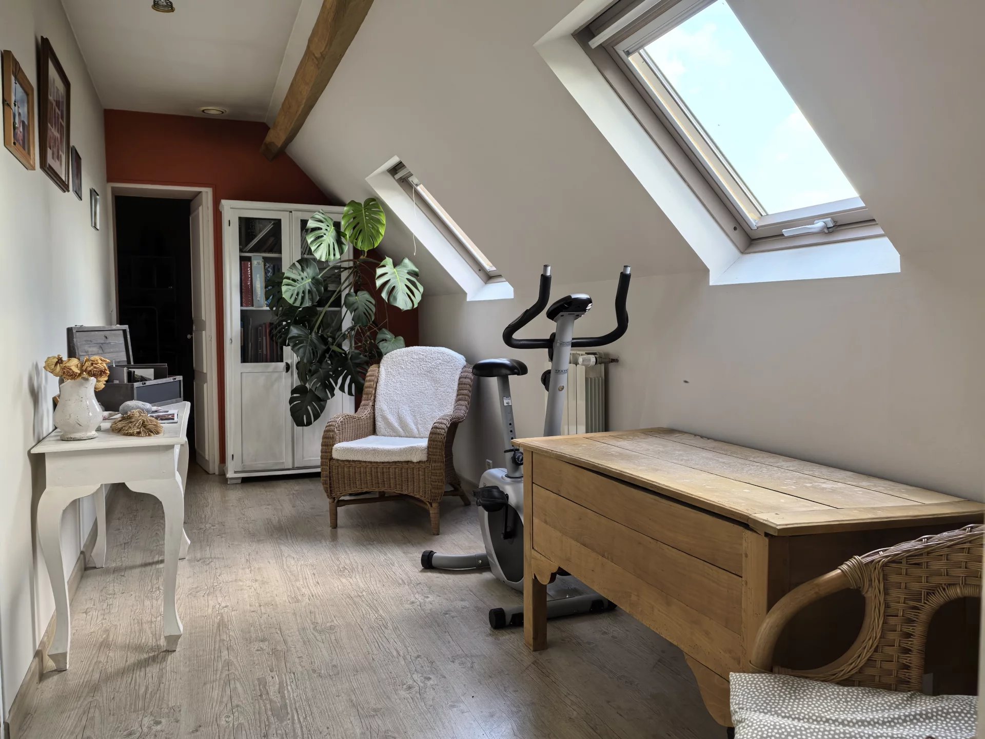 A l’étage, un vaste palier dessert une grande chambre de 18m2 avec mezzanine, deux autres chambres de 18m2 et 15m2, un bureau pouvant également faire office de chambre pour enfant ainsi qu’un second WC.