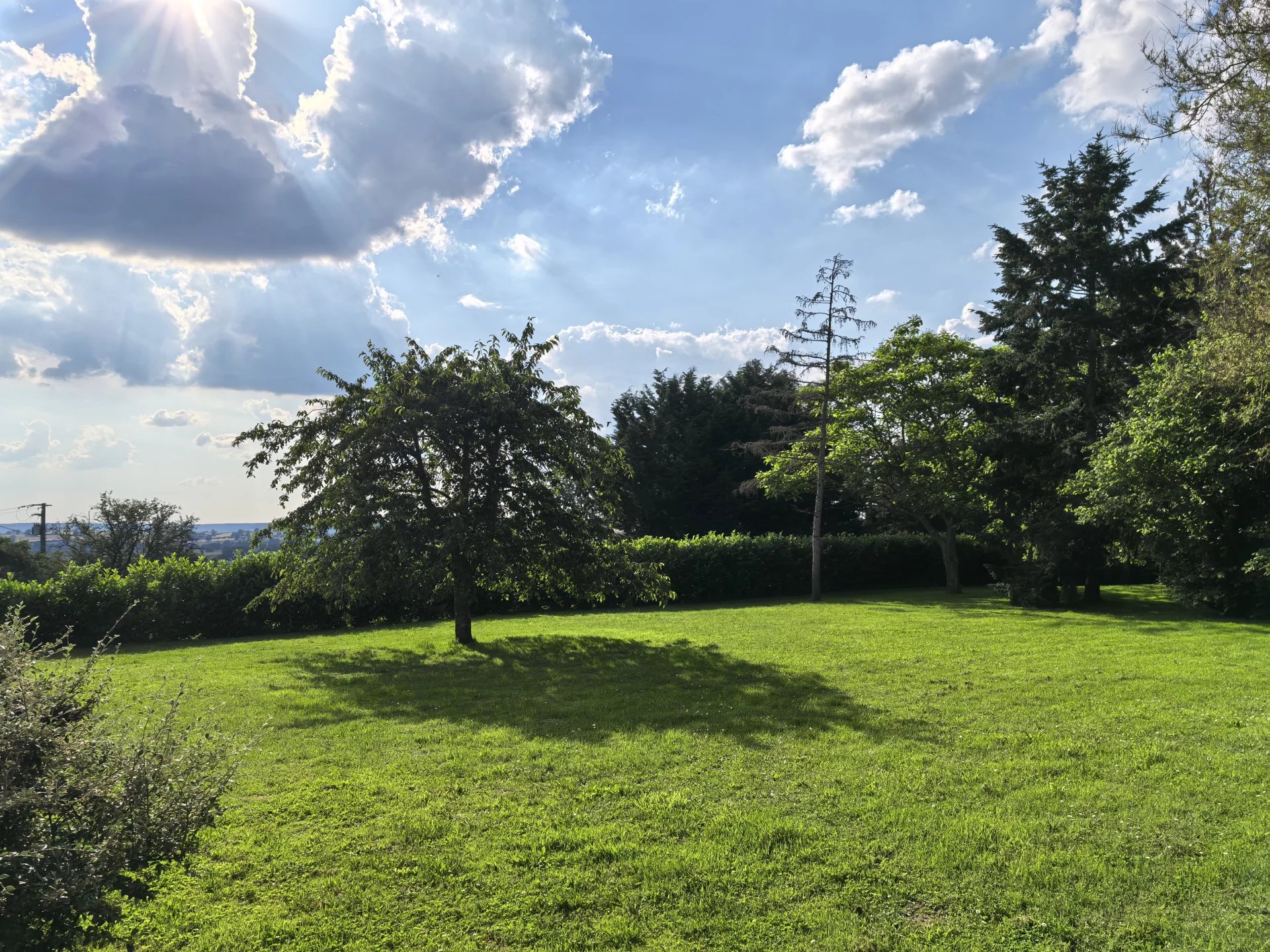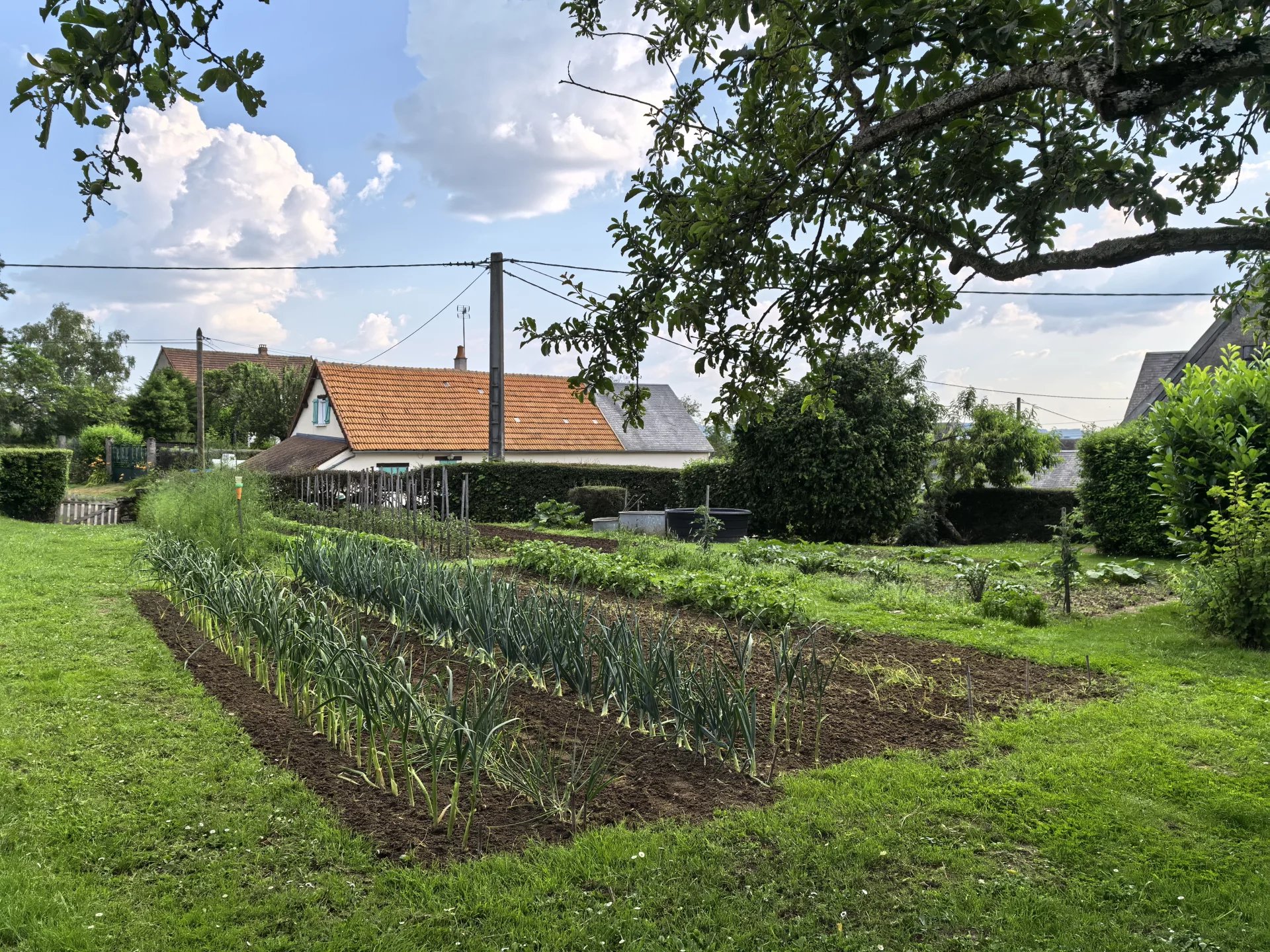 L’ensemble est situé sur un vaste terrain totalisant 7214m2, composé d’un beau jardin arboré, suivi d’un potager, d’un verger et d’un champ.
