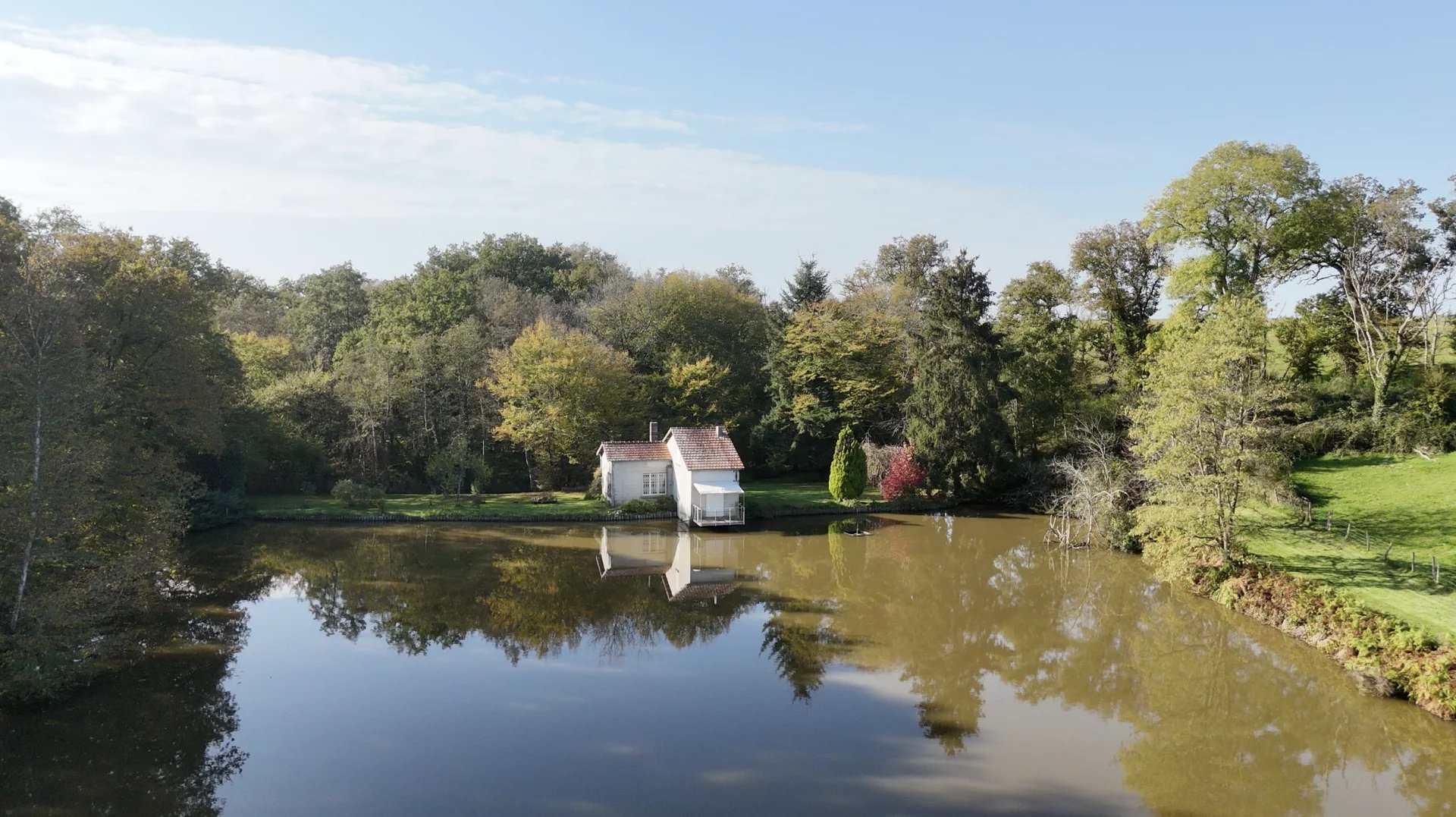L’accès à la propriété se fait par un petit chemin forestier, menant à un grand étang d’environ 1 hectare. Deux autres réserves d’eaux sont également présents. Vous avez ensuite un grand bois de 8 hectares ainsi qu’une maison d’habitation d’environ 55m2. Celle-ci se compose d’une belle pièce de vie avec cheminée, suivi d’une cuisine donnant sur une terrasse surplombant l’étang. Une chambre à l’étage et une salle d’eau avec WC complètent l’ensemble. La maison est alimentée en eau et en électricité.