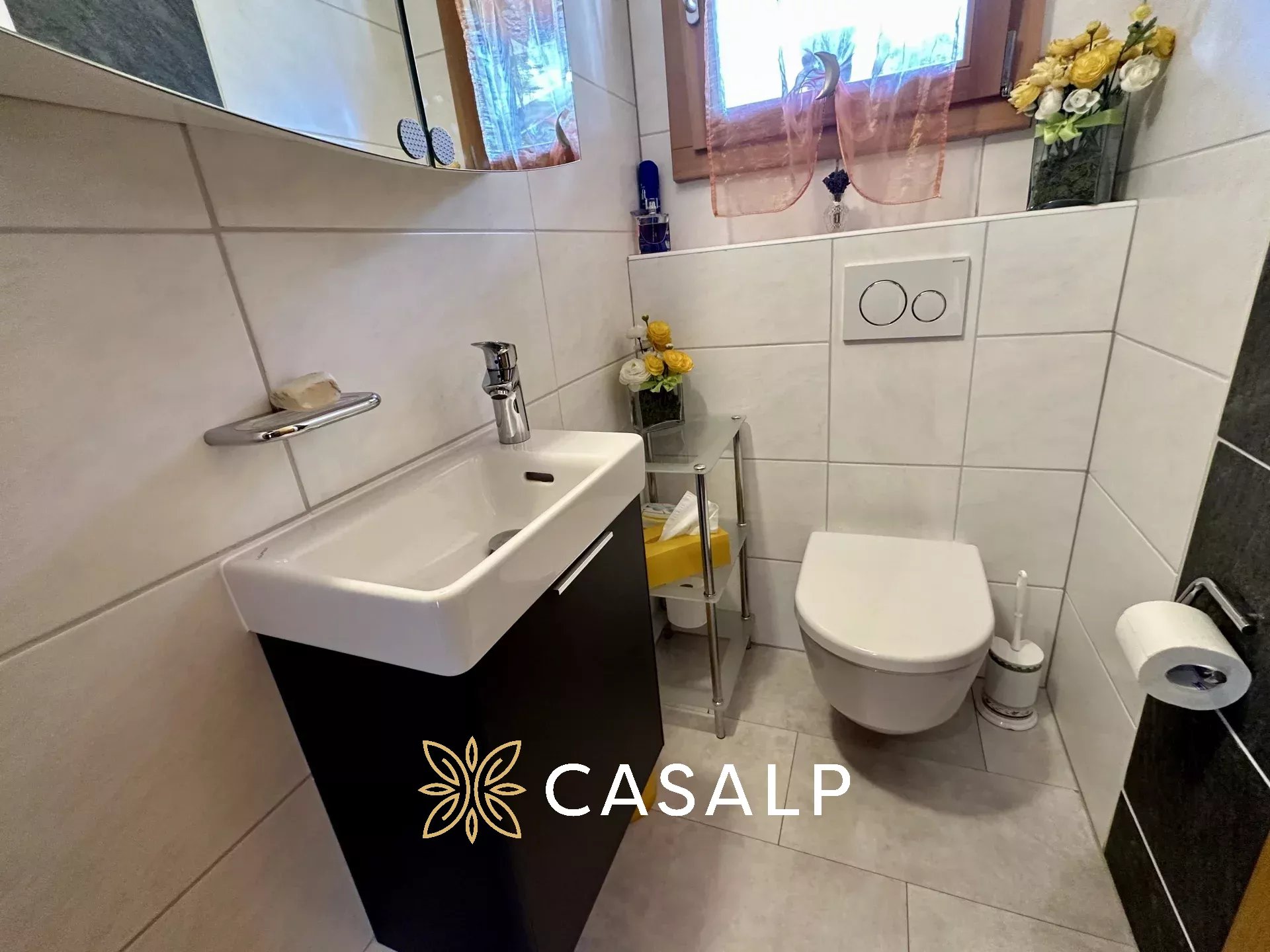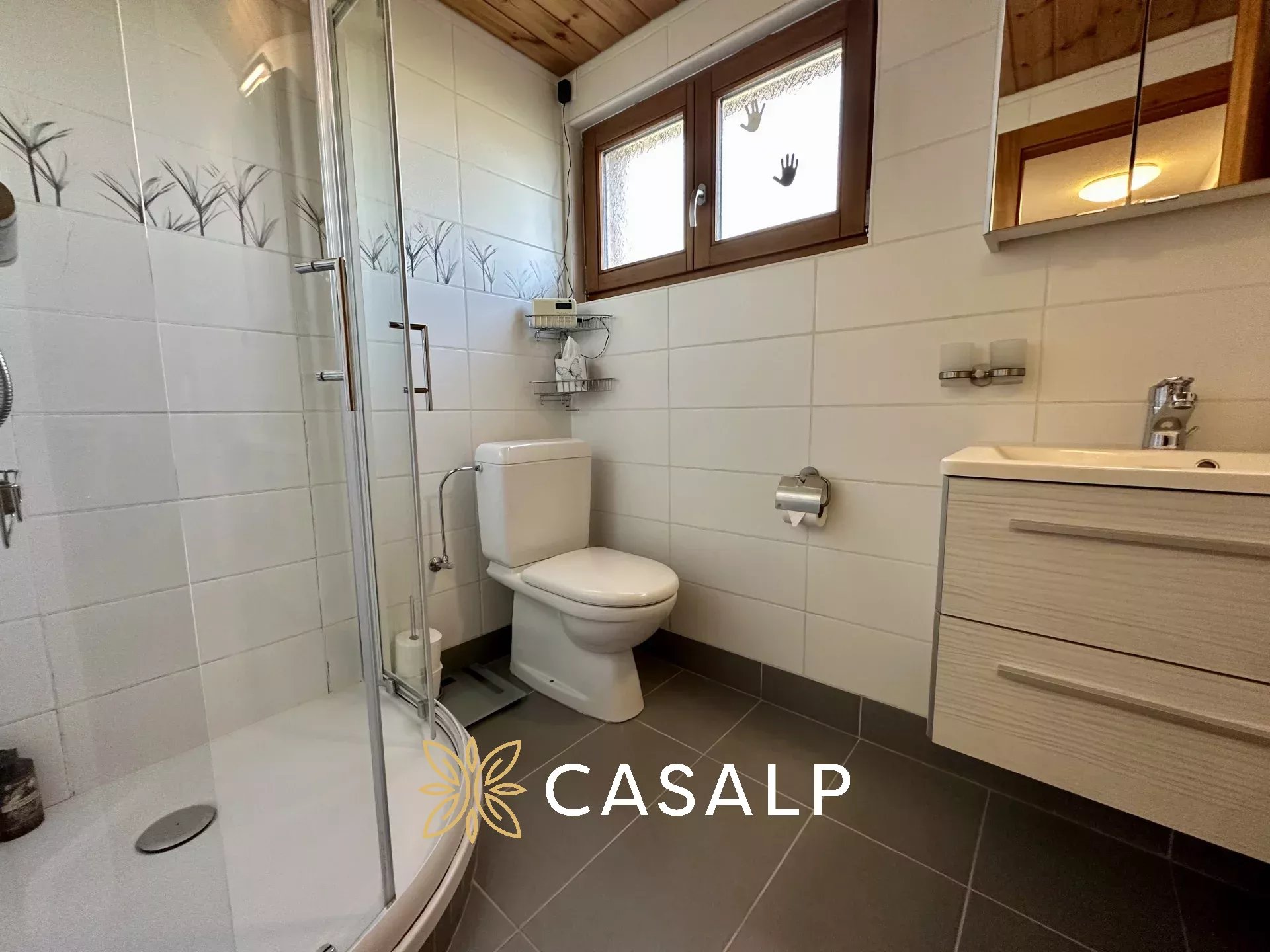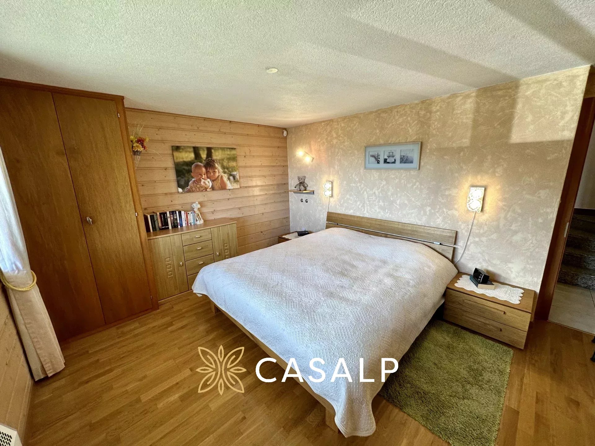 Au rez-de-jardin, les deux grandes chambres à coucher offrent un confort douillet et une plus petite chambre idéal pour des enfants, avec des fenêtres encadrant des panoramas spectaculaires. La salle de douche avec WC moderne vient compléter l'espace.