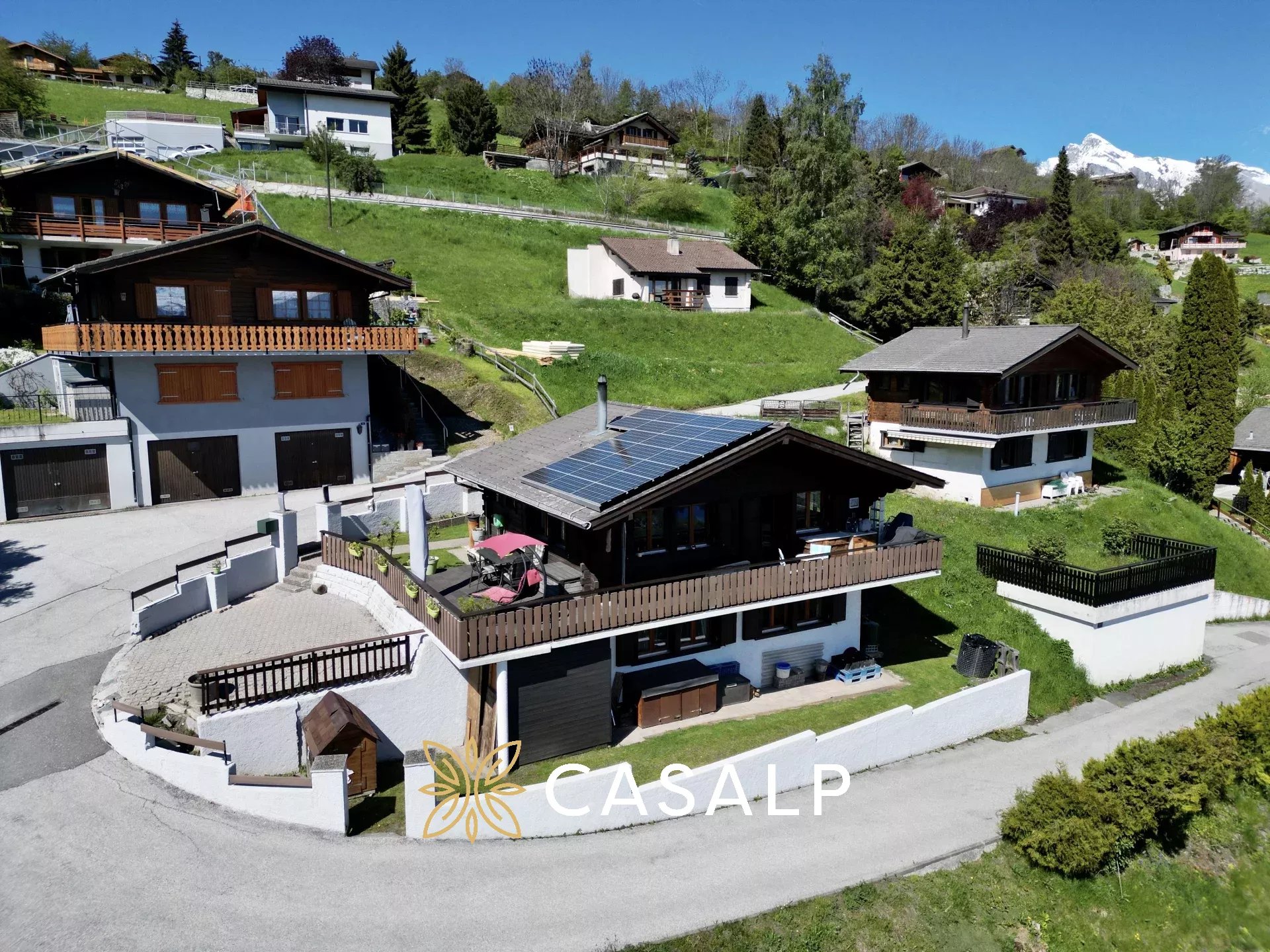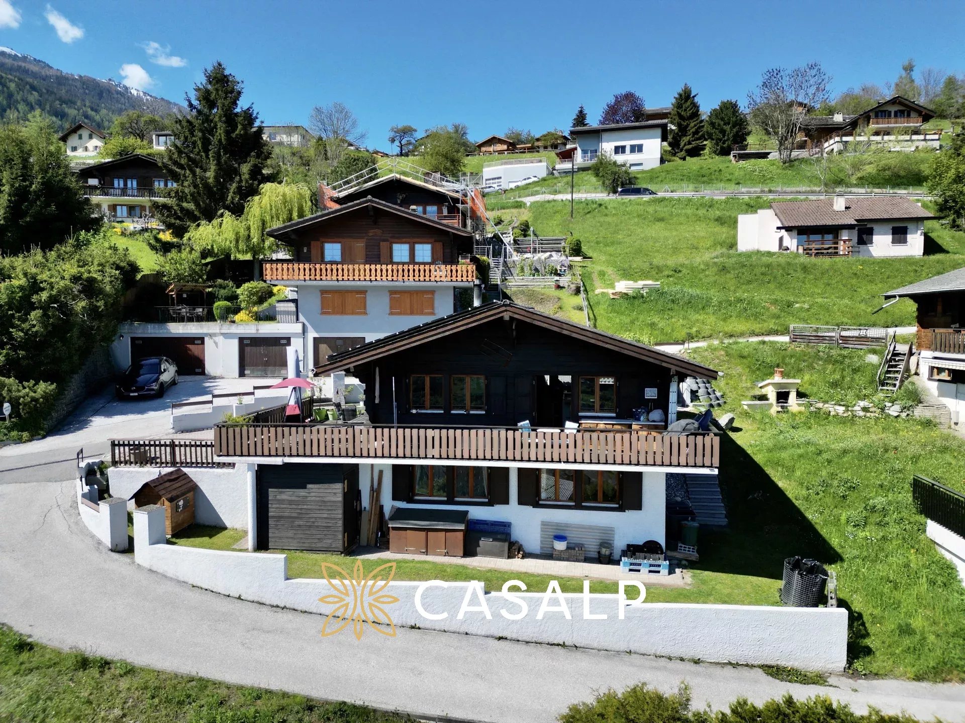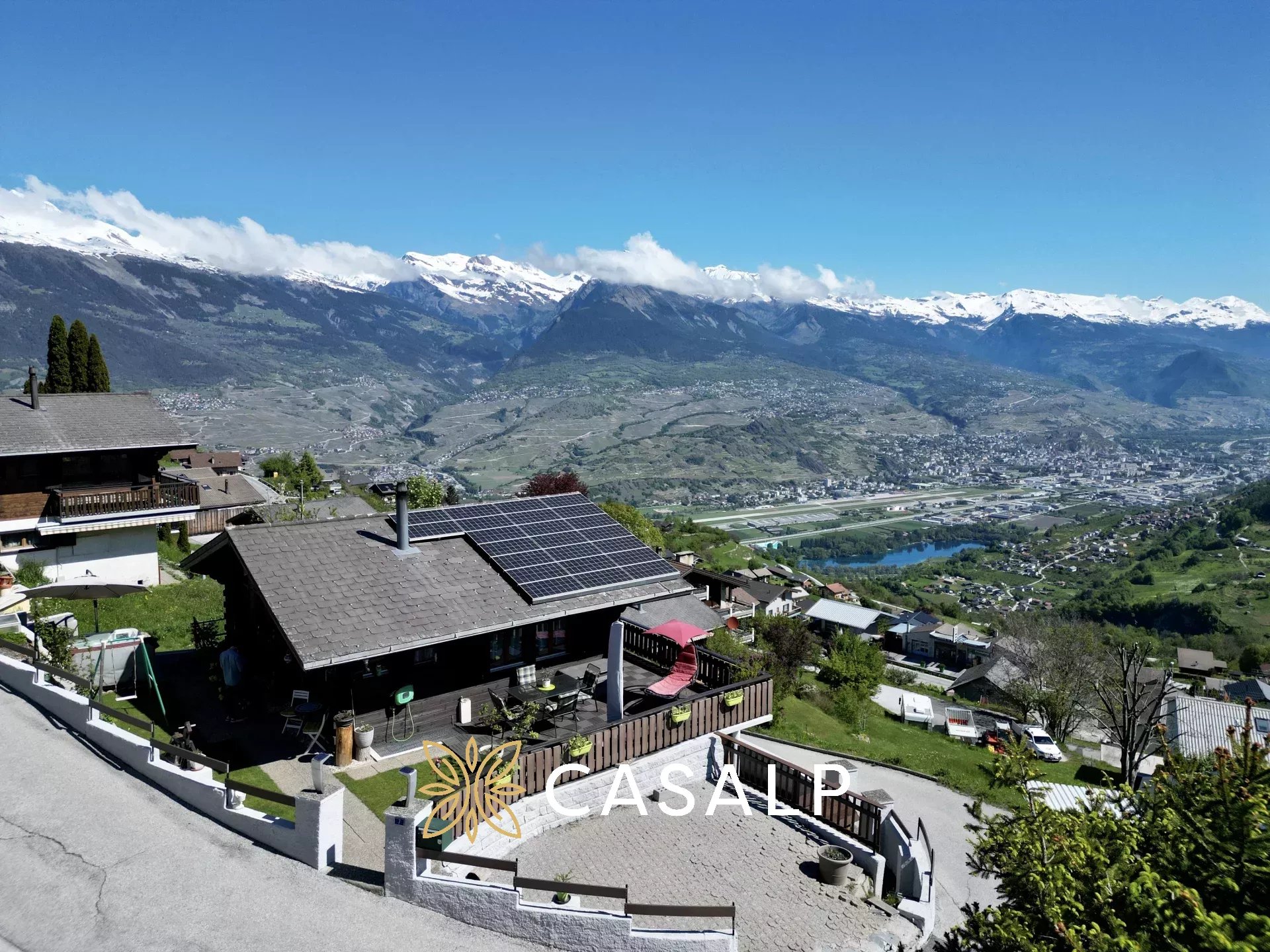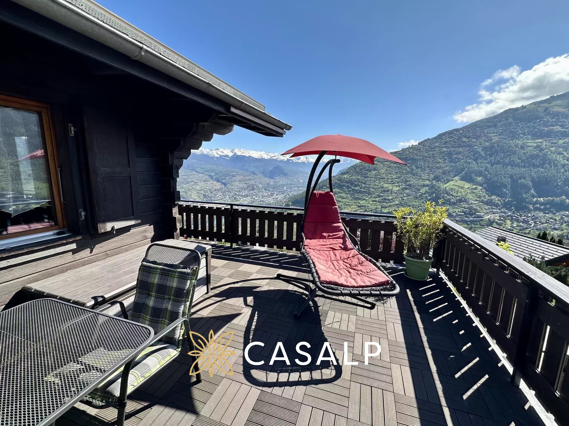 Perché au cœur des Alpes suisses, ce chalet rénové de 100 m² sur les hauteurs de Basse-Nendaz offre une vue panoramique sur les Alpes, Sion et la vallée du Rhône. Son extérieur avec une terrasse spacieuse est un endroit parfait pour se détendre et profiter du paysage.