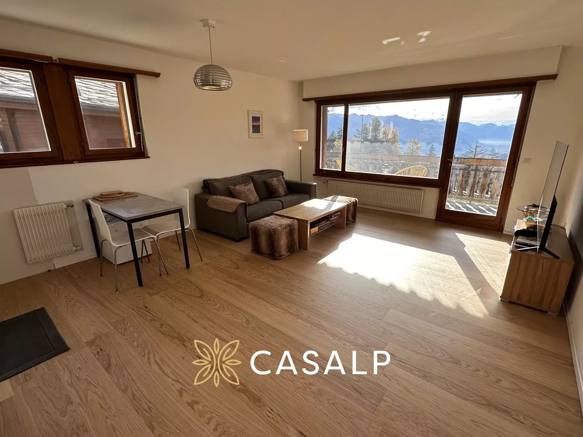 Charmant appartement de 3 pièces et 1/2 ensoleillé avec vue imprenable sur les montagnes et la vallée du Rhône.
