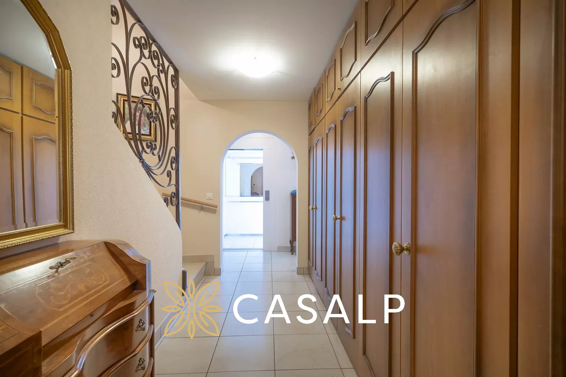 Mains courantes sécurisées dans chaque escalier et espaces verts soignés.