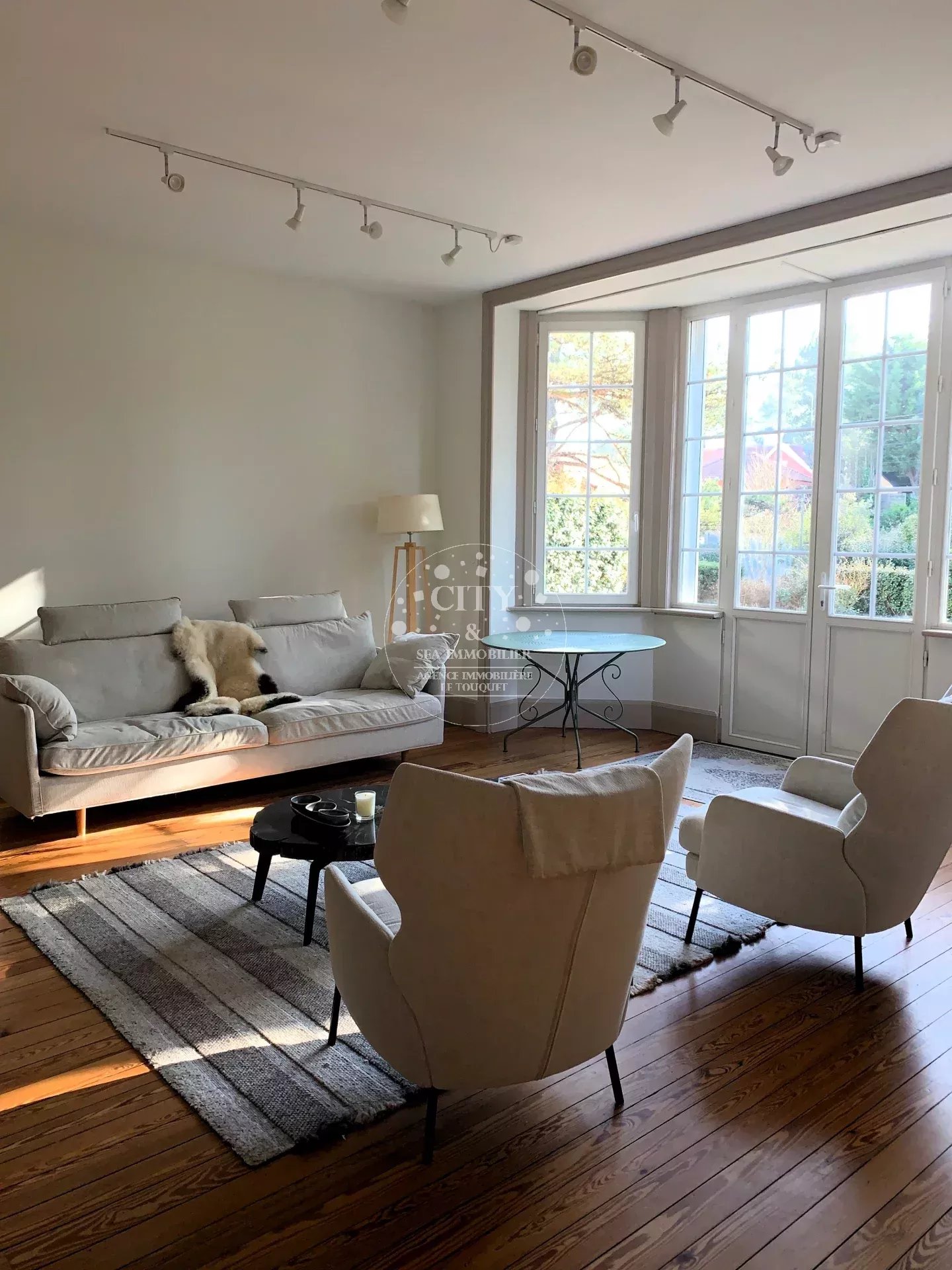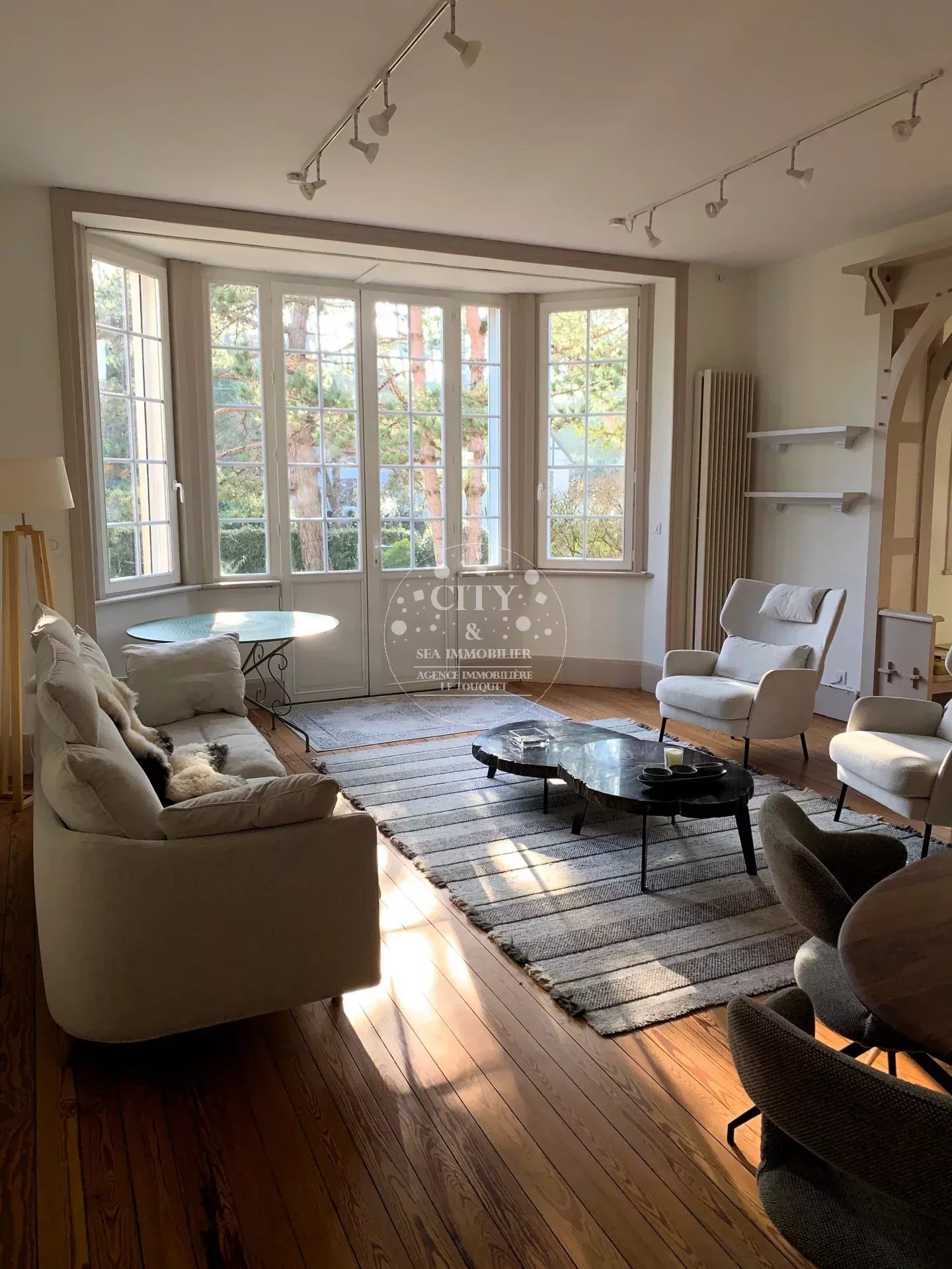Secteur recherché, proche du Palais des Congrès, en rez-de-jardin d'une belle villa de style anglo-normand, bel appartement de 81,89m² avec entrée indépendante et de beaux volumes comprenant :