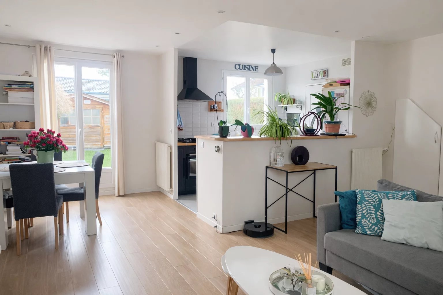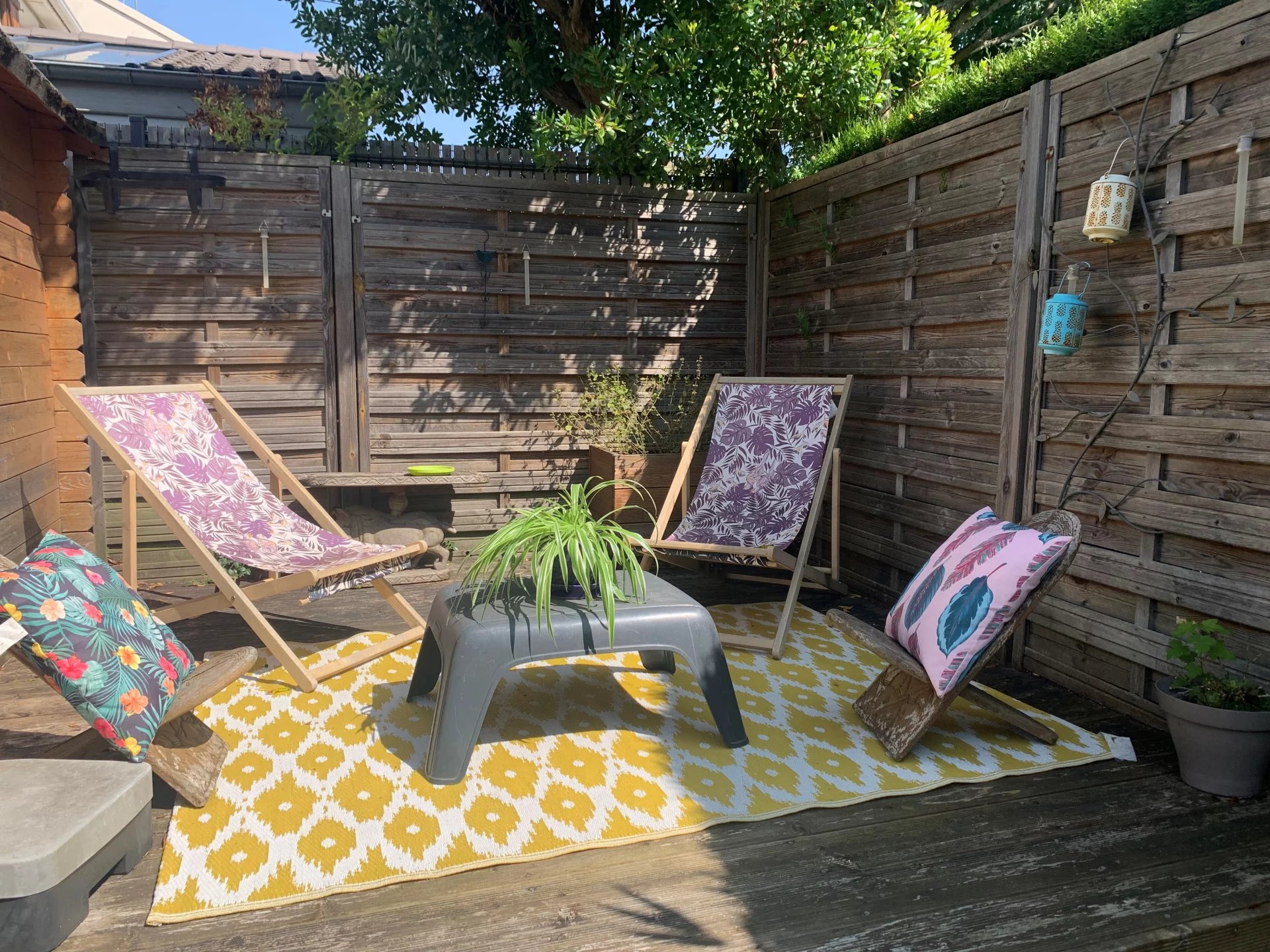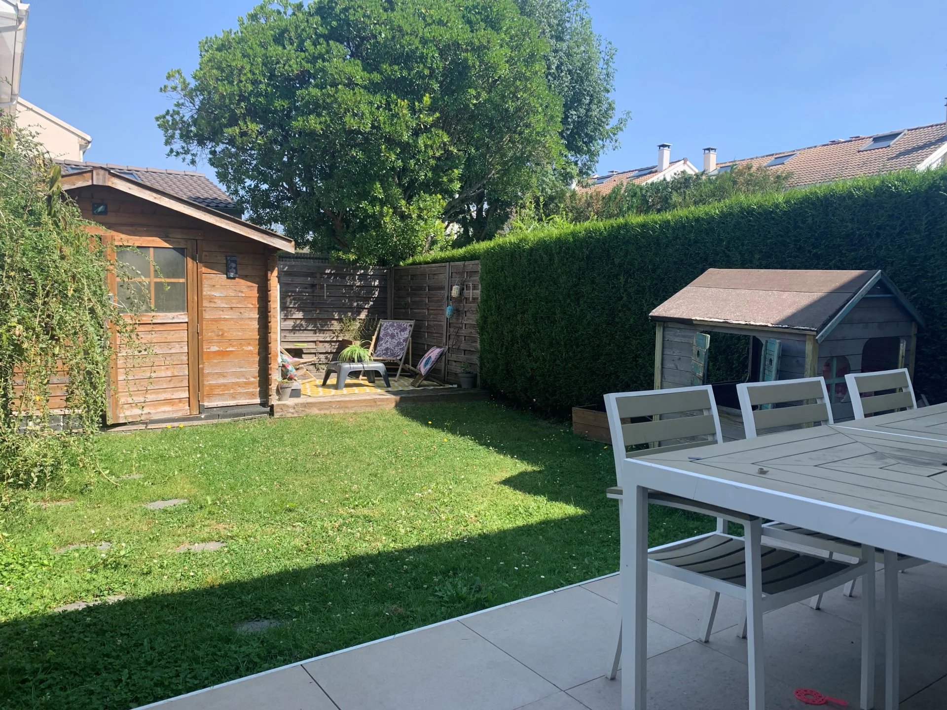 En plein cœur du village à proximité de toutes les commodités à pied, dans résidence familiale et conviviale face à la forêt, ravissante maison de 81m² avec terrasses et jardin SANS VIS/VIS.