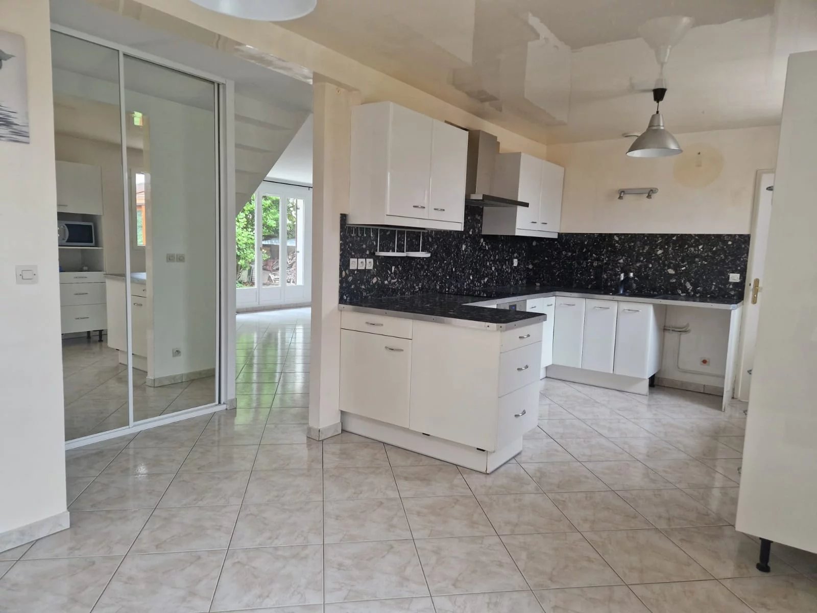 Édifiée sur un terrain de 675 m², elle dispose également d’un garage double.