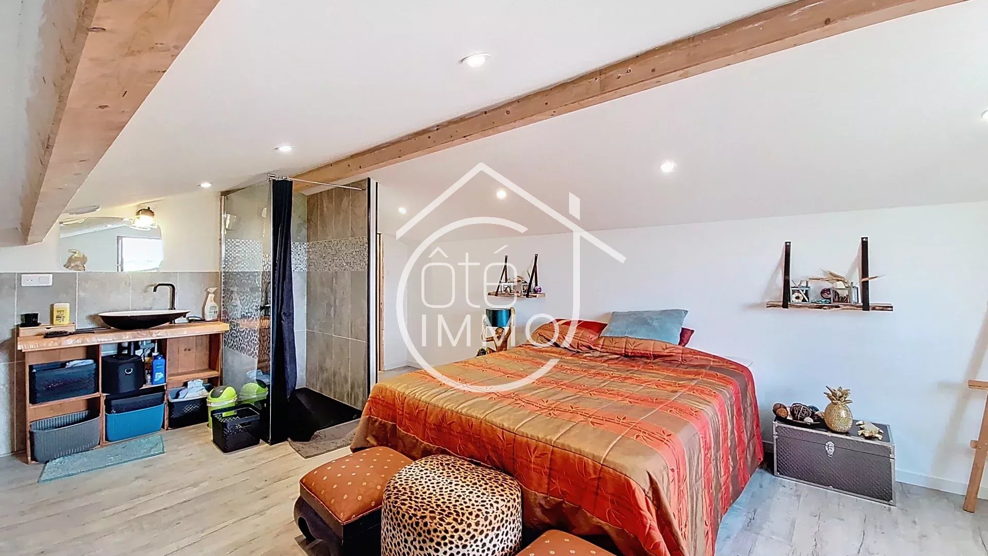 S’ajoutent une buanderie. un grand garage avec chambre froide. ainsi qu’un accès discret menant à une suite parentale disposant de son propre point d’eau et offrant une vue panoramique sur la campagne environnante.