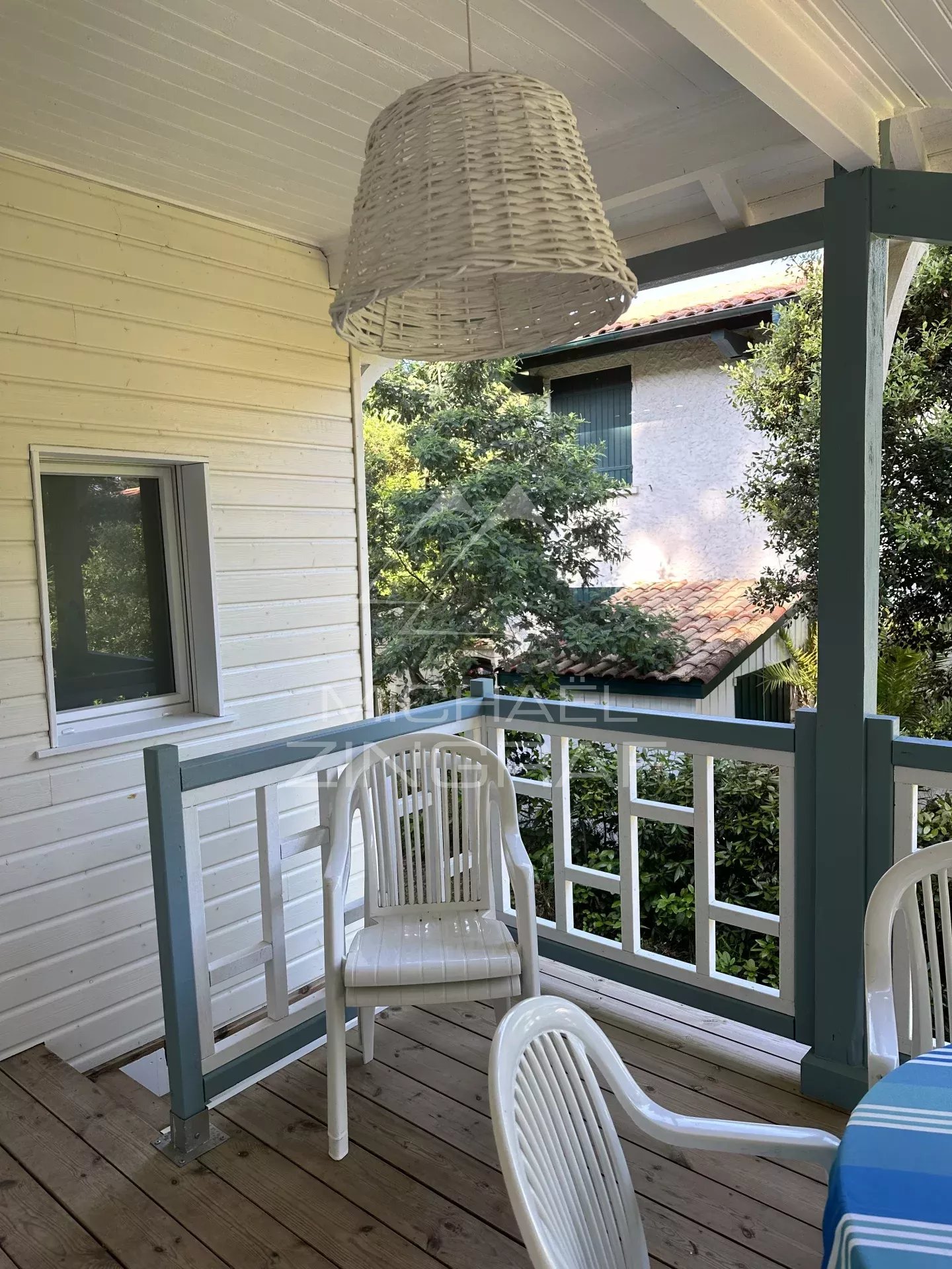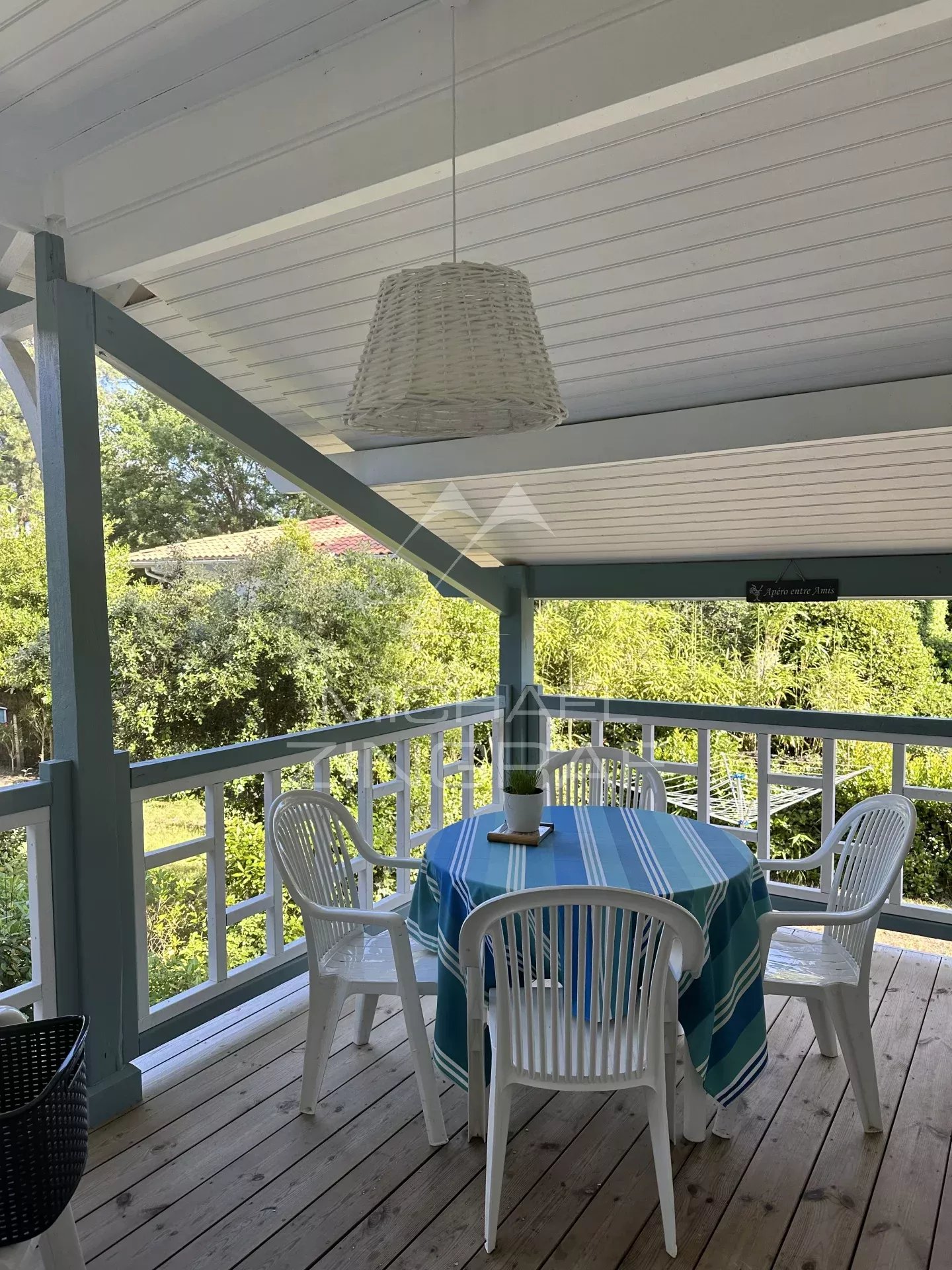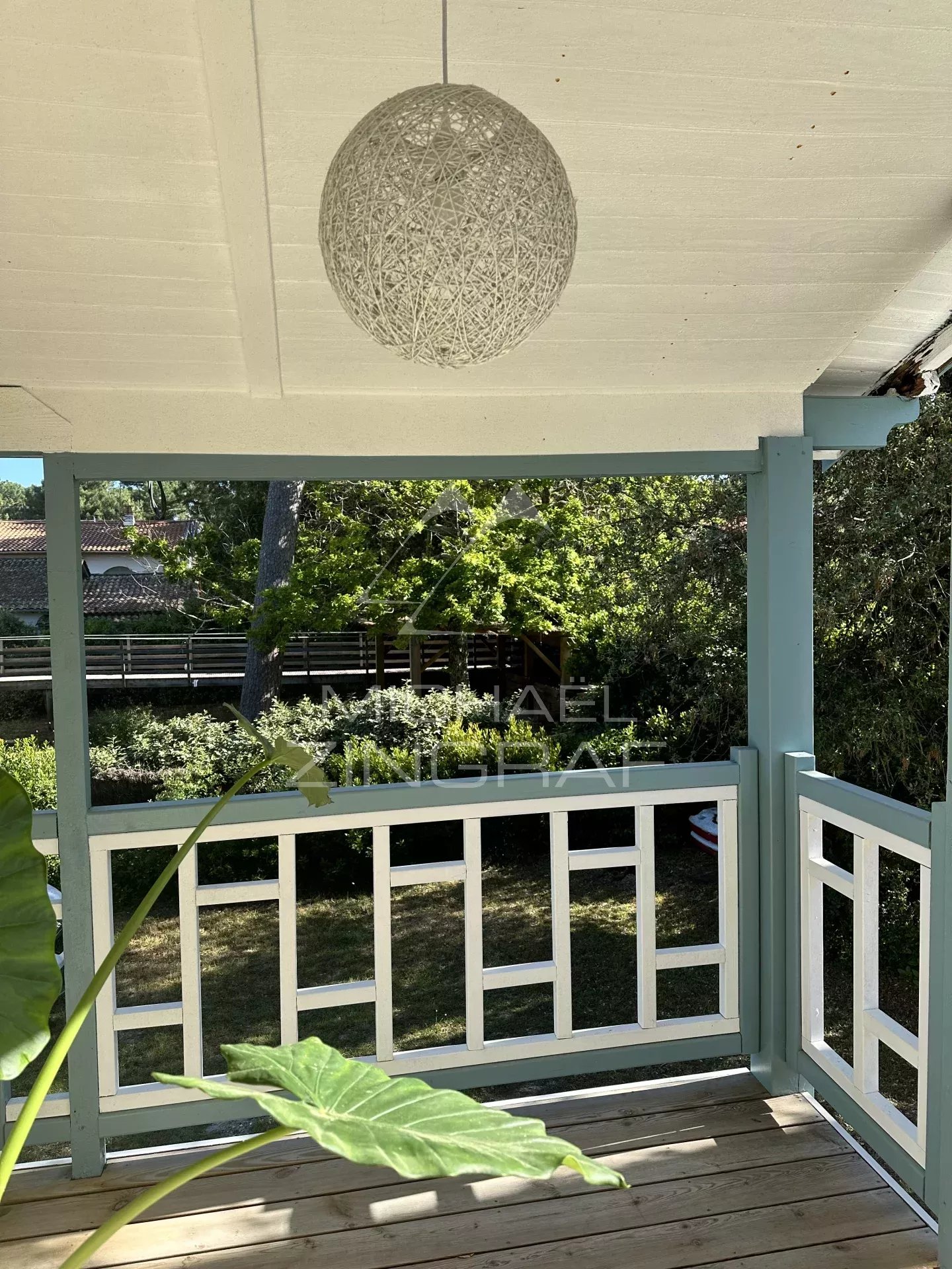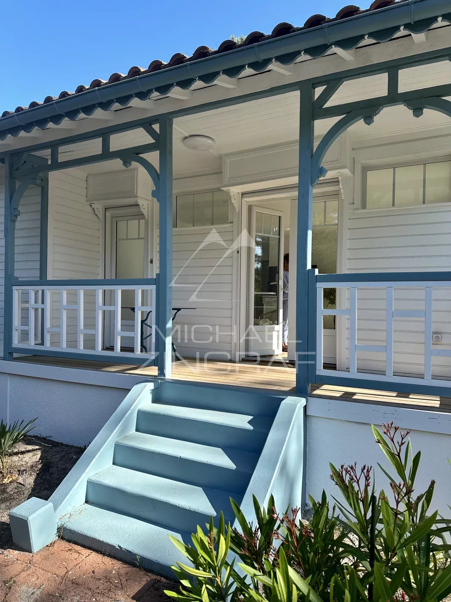 Cette villa surélevée de style arcachonnais, bardée de bois, est idéalement située à quelques minutes à pied de la plage et des commerces de proximité.