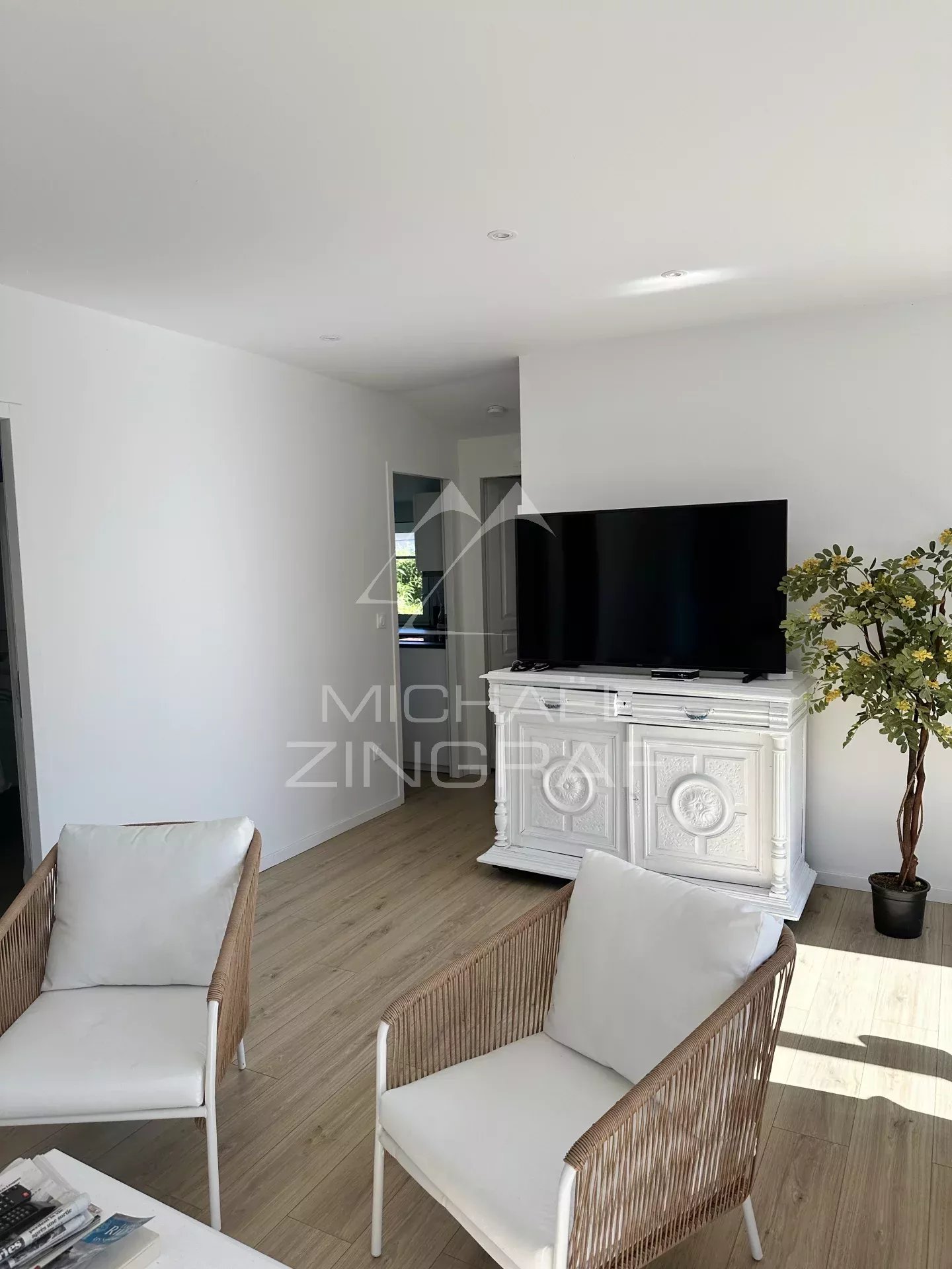 - Une pièce à vivre ayant un accès sur deux terrasses avec un espace salon équipé du wi-fi et de la TV et un espace repas.
