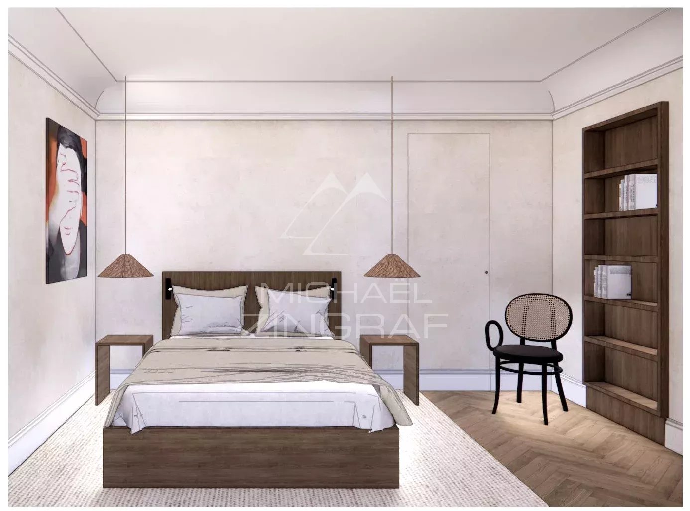 L’étage accueille trois chambres, dont une suite avec dressing et salle d’eau privative. Une seconde salle d’eau indépendante dessert les deux autres chambres. Les volumes sont clairs, bien proportionnés, sans effet de composition inutile. Chaque pièce trouve sa place dans une distribution pensée pour un usage quotidien confortable.