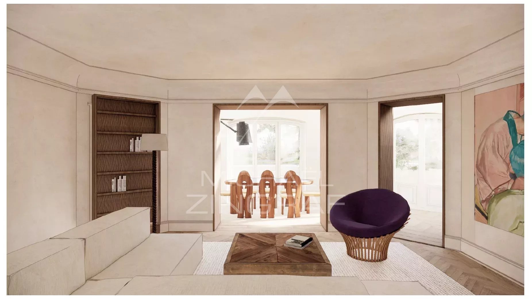 Michael Zingraf Real Estate vous propose une maison indépendante située au sein de la propriété de la Villa Flamberge, en première ligne sur le Bassin d’Arcachon. Entièrement repensée dans le cadre du projet global de réhabilitation, cette maison se distingue par son autonomie, son volume généreux et son ouverture sur un jardin privatif, prolongé par le parc de la propriété, le tout situé sur une parcelle de 1 690 m².