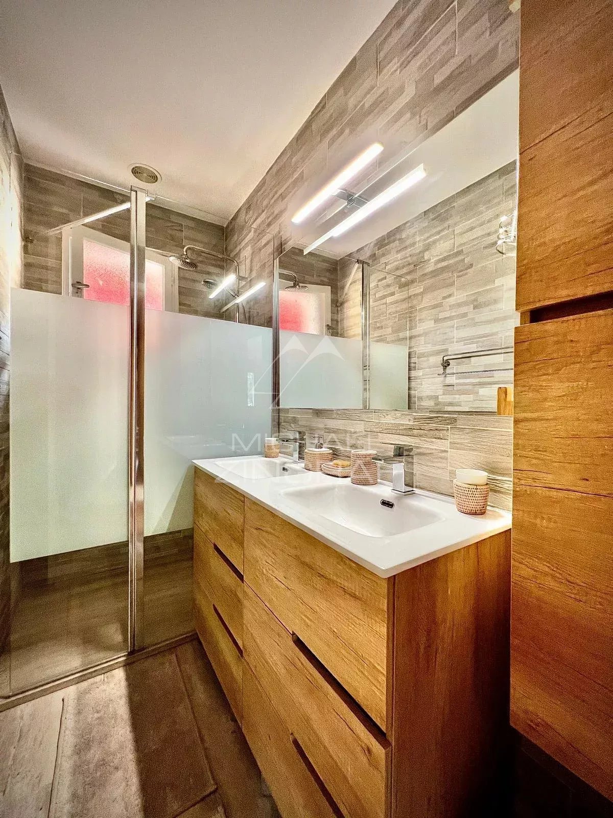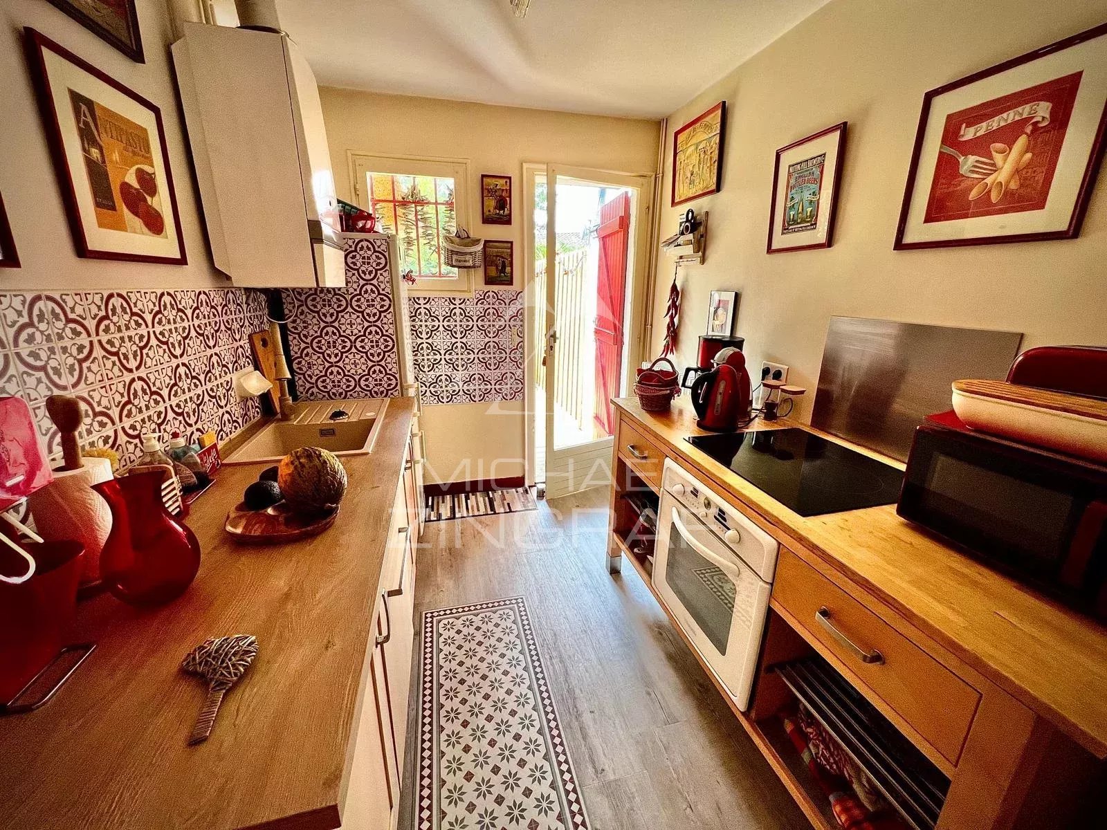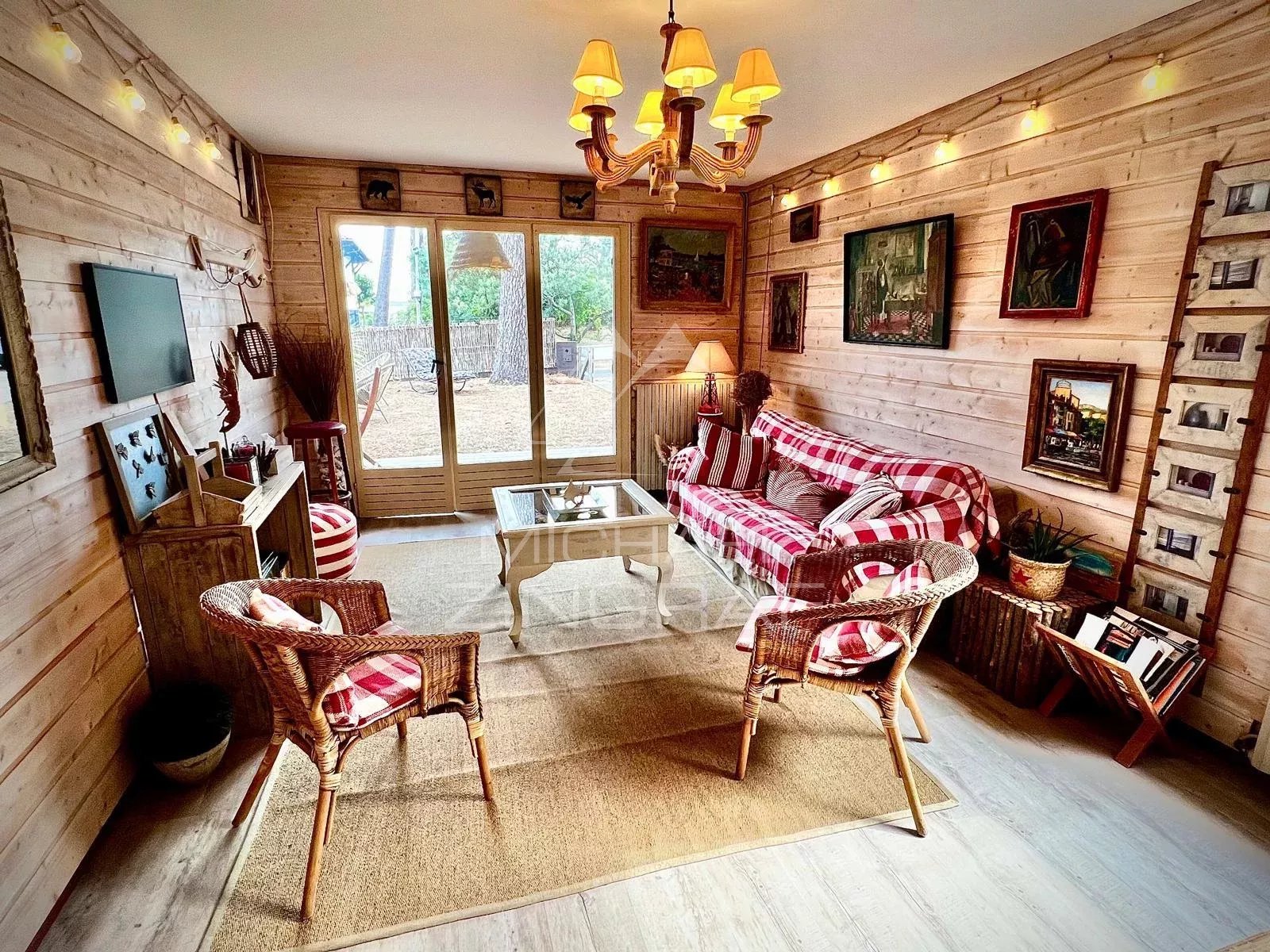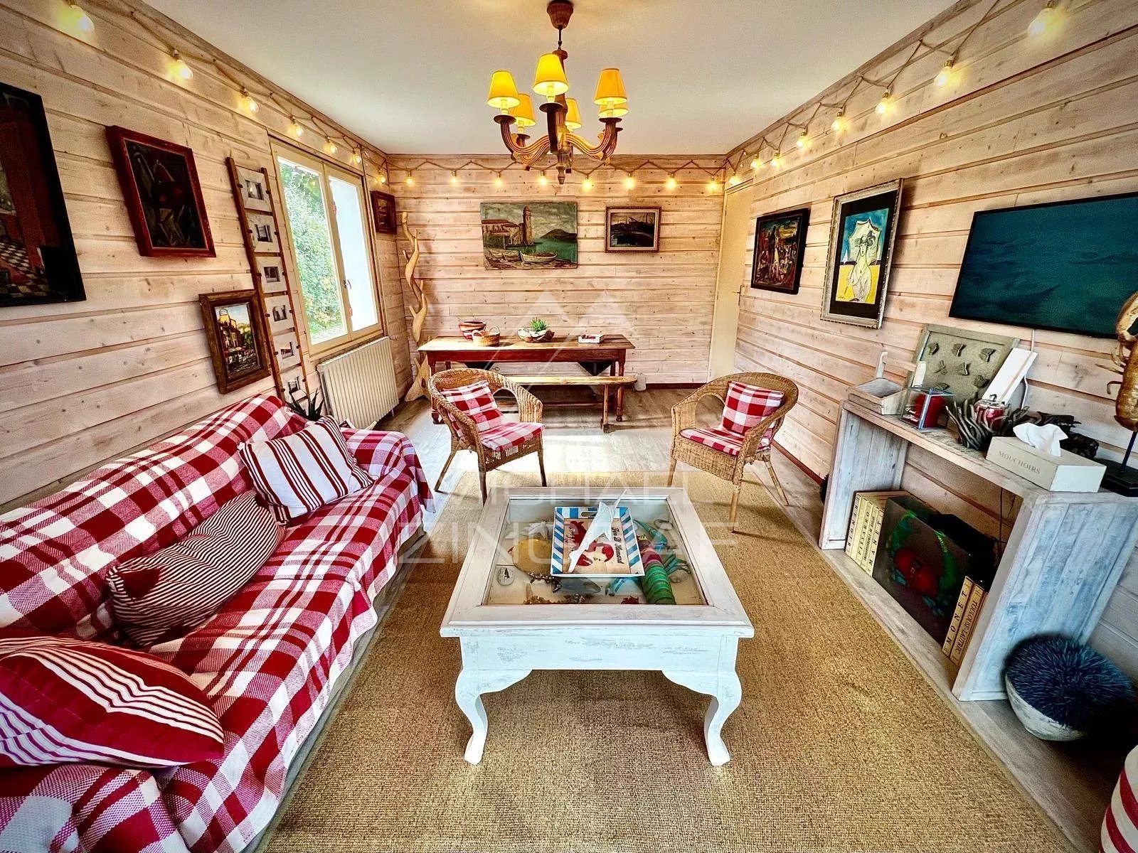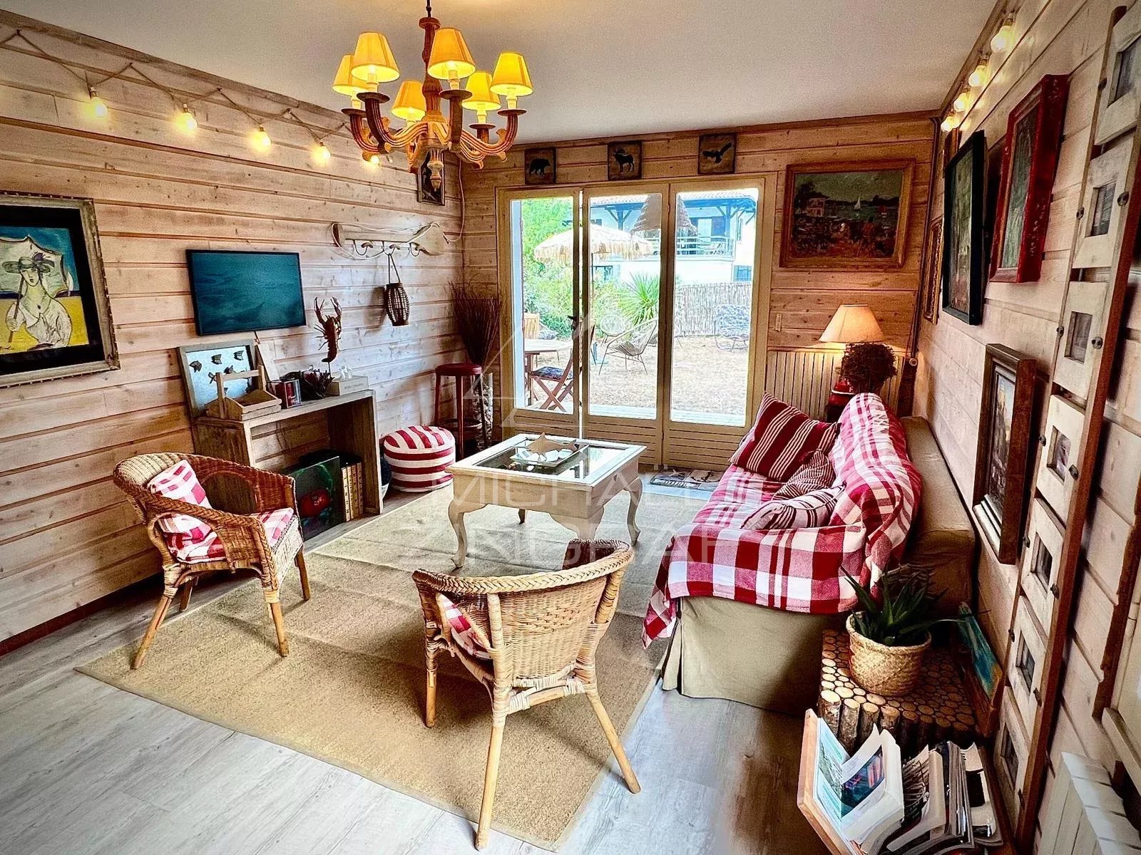 La maison des Pins... Cette charmante maison mitoyenne de 70 m2 et de plain-pied, dotée d'une double exposition Sud et Nord, est située dans le quartier résidentiel particulièrement calme des Abatilles à Arcachon. Côté intérieur... - Une cuisine indépendante entièrement équipée donnant directement sur la terrasse côté Sud. - Une chambre avec un lit en 160, une armoire/penderie, un porte-bagages, deux tables de nuit. - Une deuxième chambre avec 2 X 2 lits superposés de 90, un fauteuil, une commode, une table de nuit, des tiroirs de rangements sous les lits, un porte-bagages et une enceinte connectée. - Un séjour donnant sur le jardin côté Nord, comprenant côté salon un canapé, un pouf, deux fauteuils en osier et côté repas, une table avec deux bancs et une console. - Un WC indépendant. - Une salle d'eau entièrement rénovée avec douche à l'italienne et double vasques. - Une buanderie avec machine à laver, planche à repasser, centrale vapeur, étendoir et baignoire pour bébé. Côté extérieur... Un jardin côté Sud, avec une douche extérieur pour les retours de plage, une table à manger avec chaises et une plancha. Un jardin côté Nord, avec une table, des chaises, un salon de jardin et un parasol. Possibilité de garer deux véhicules sur la parcelle. Cette maison est idéale pour des vacances en famille. Quatre vélos sont à disposition pour les locations de juillet et août.