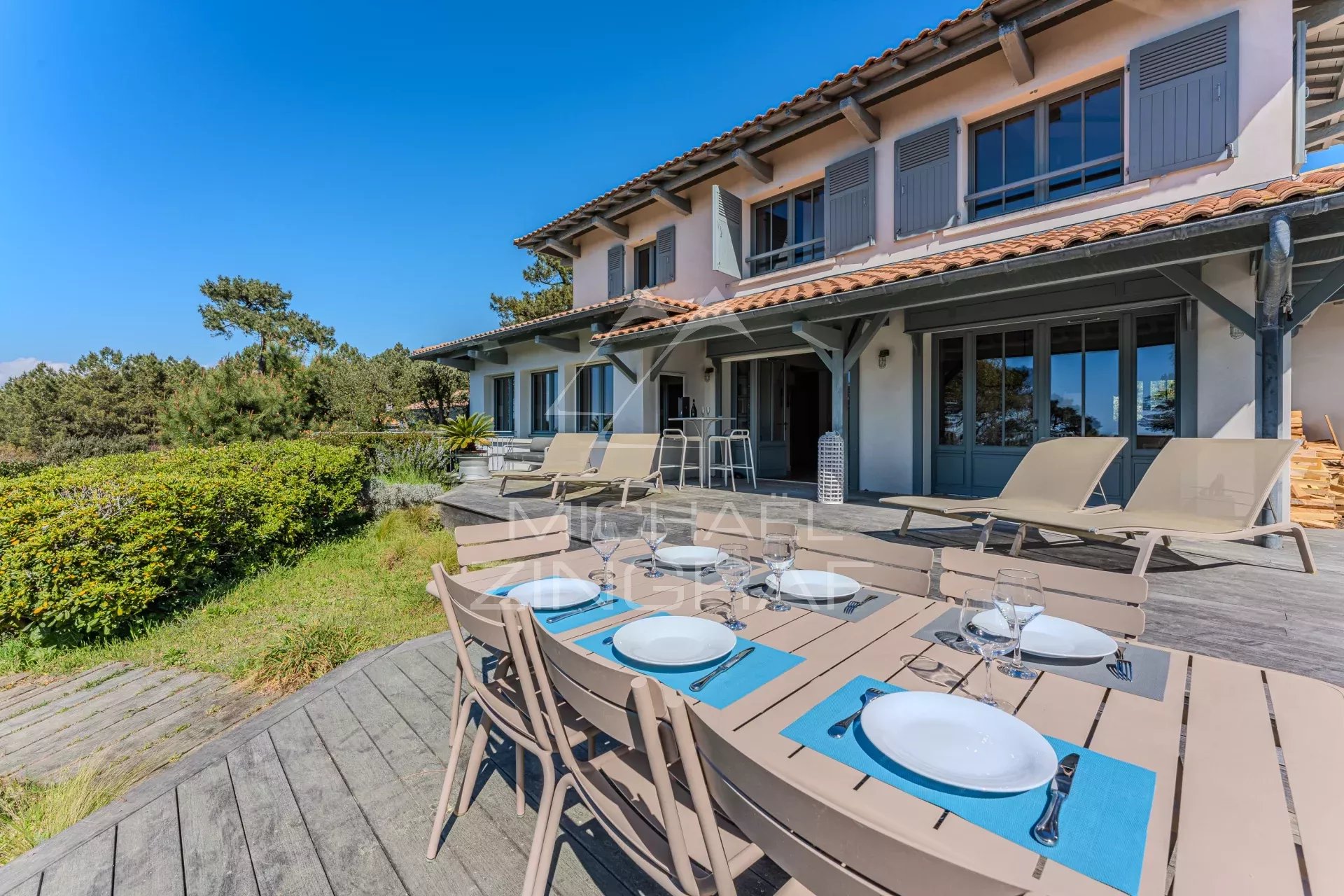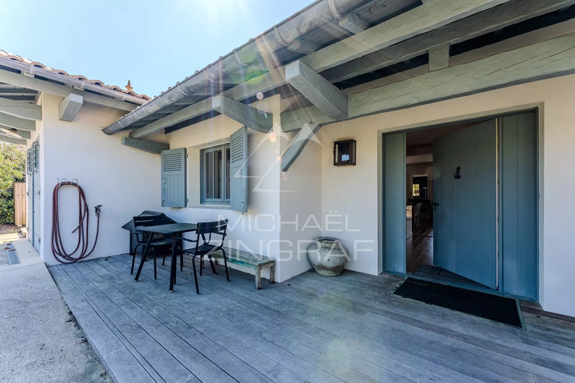 L'Agence Michaël Zingraf vous propose à la location saisonnière cette très jolie villa à 10 minutes à pied de la plage.