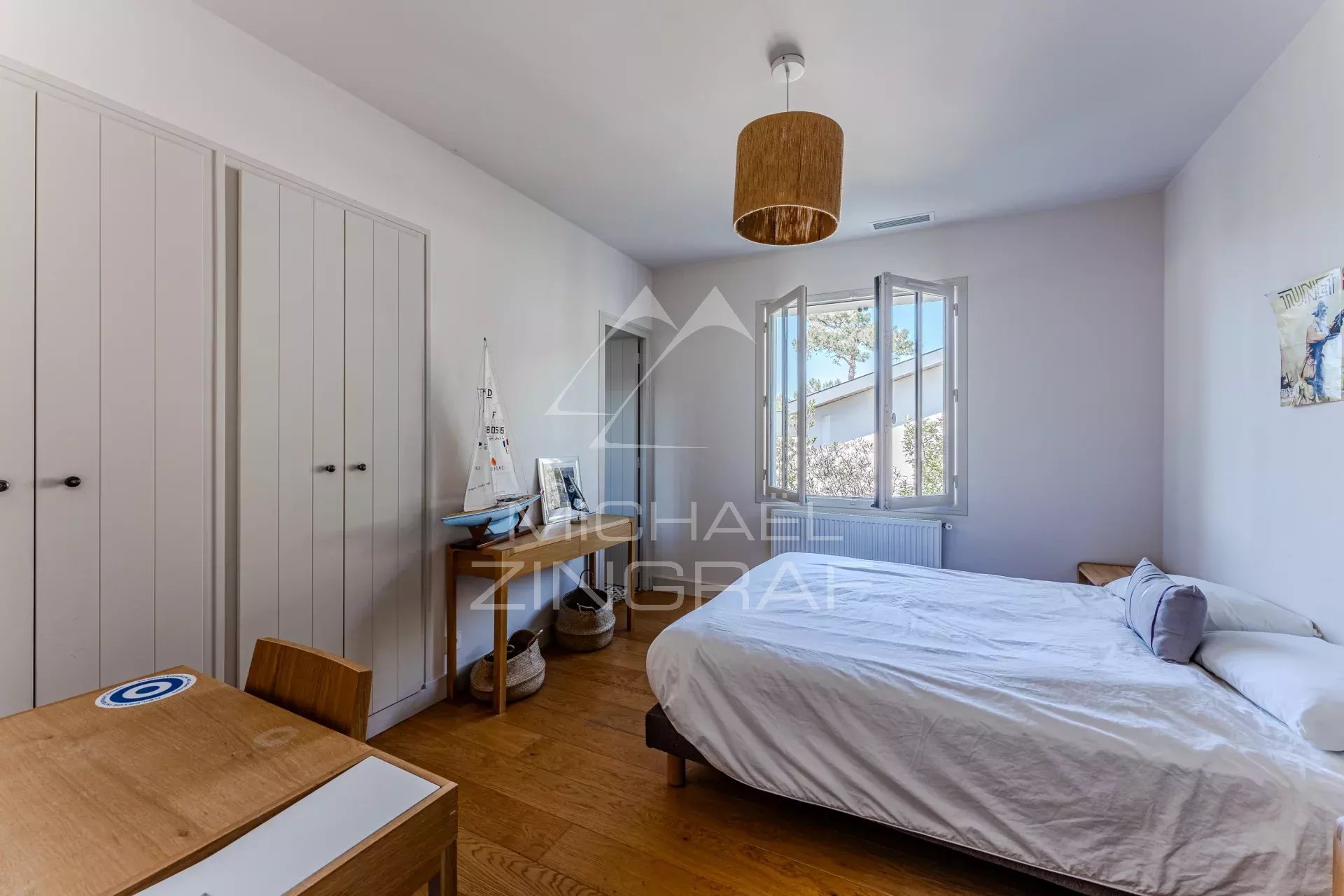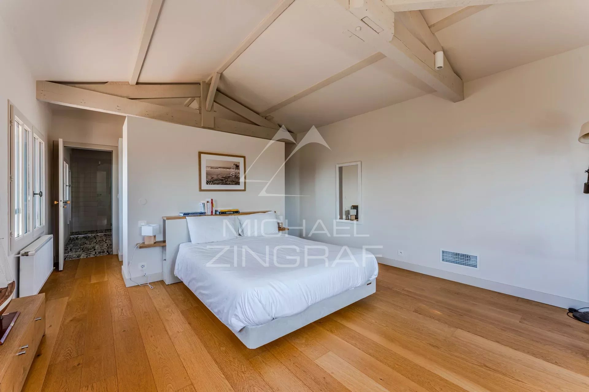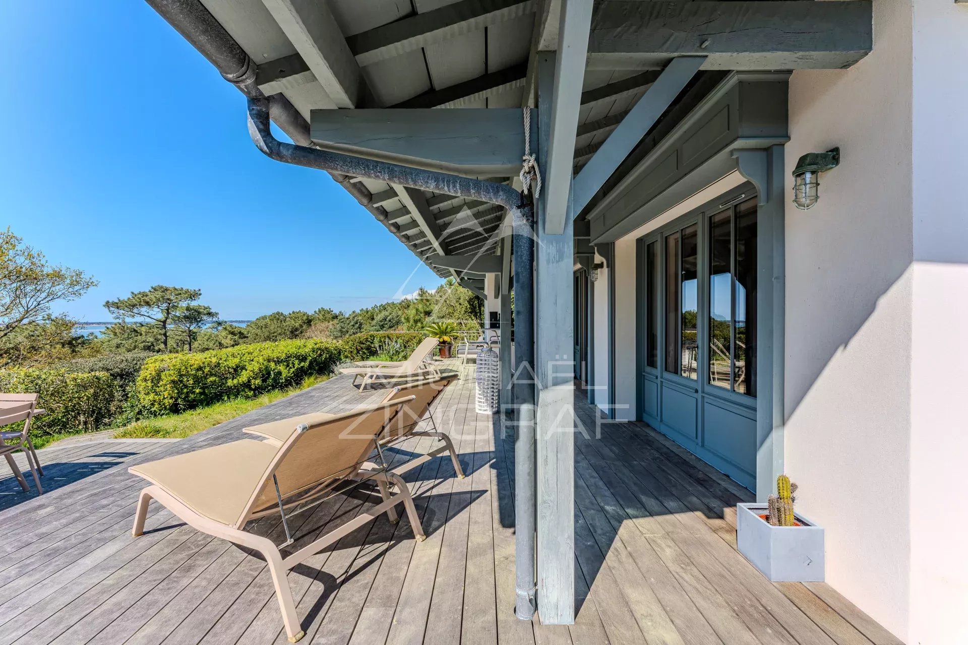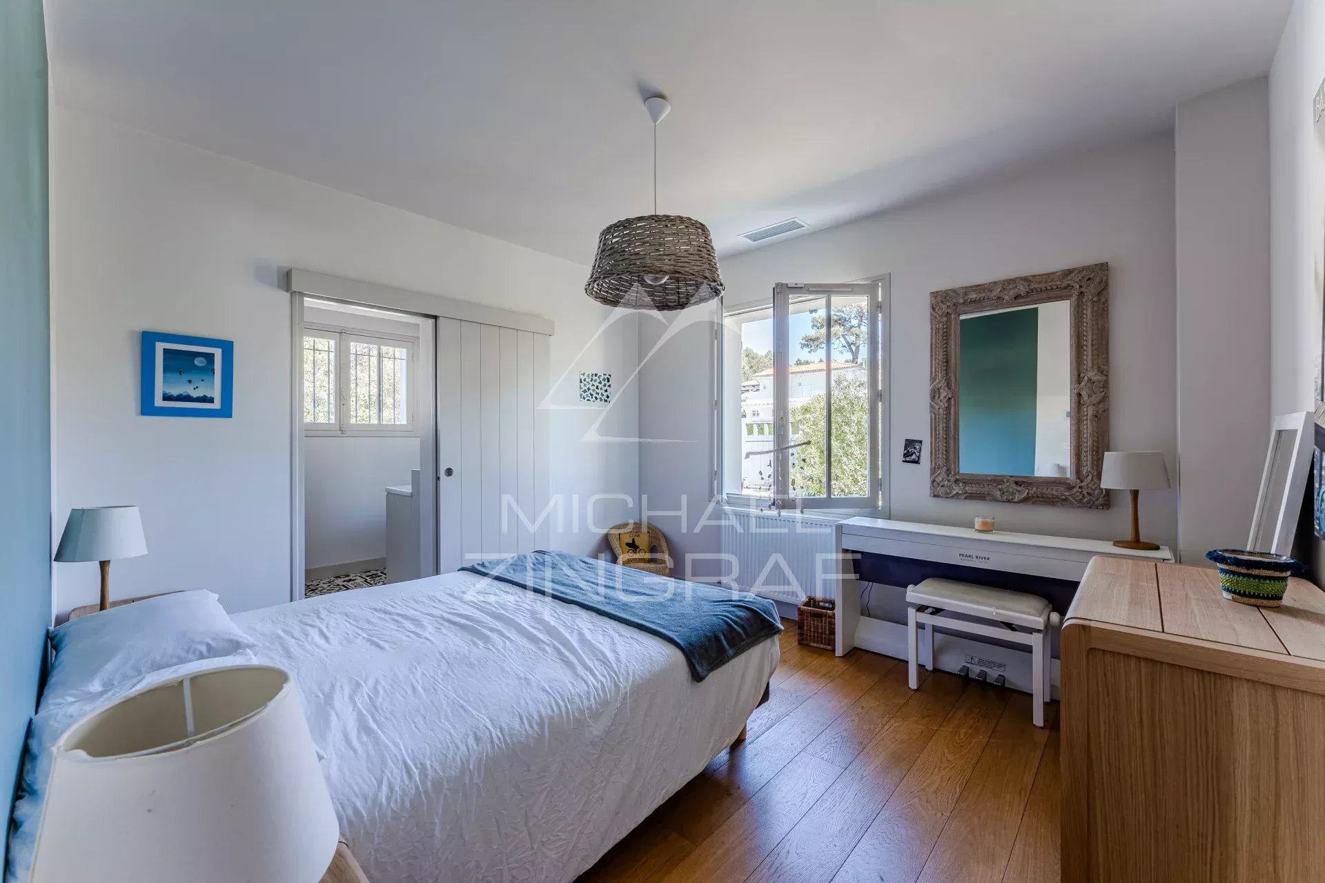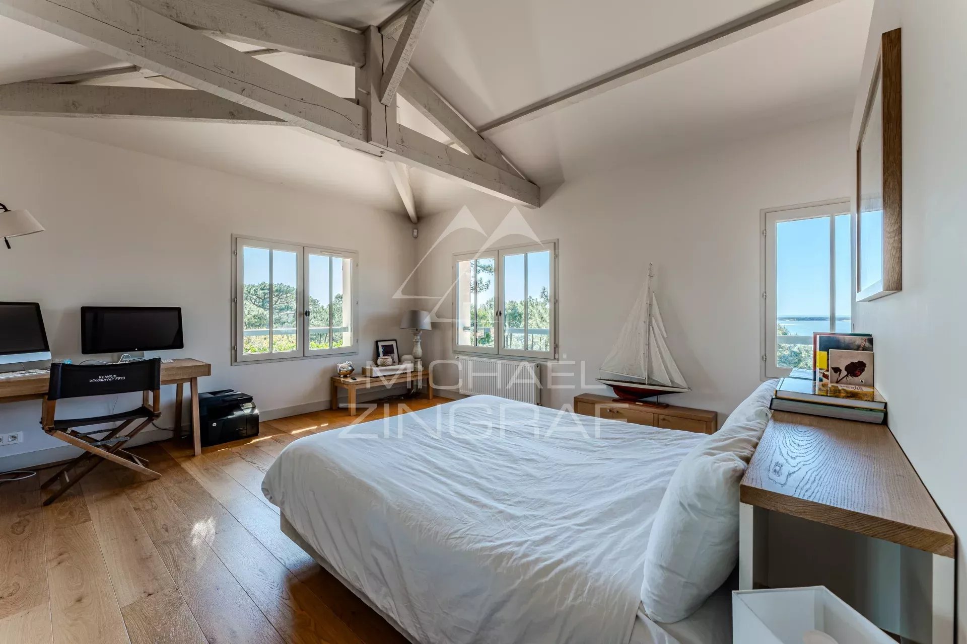 - Une Master avec dressing, lit Queen Size et salle d'eau équipée d'une douche à l'italienne. Vue exceptionnelle sur le bassin d'Arcachon.