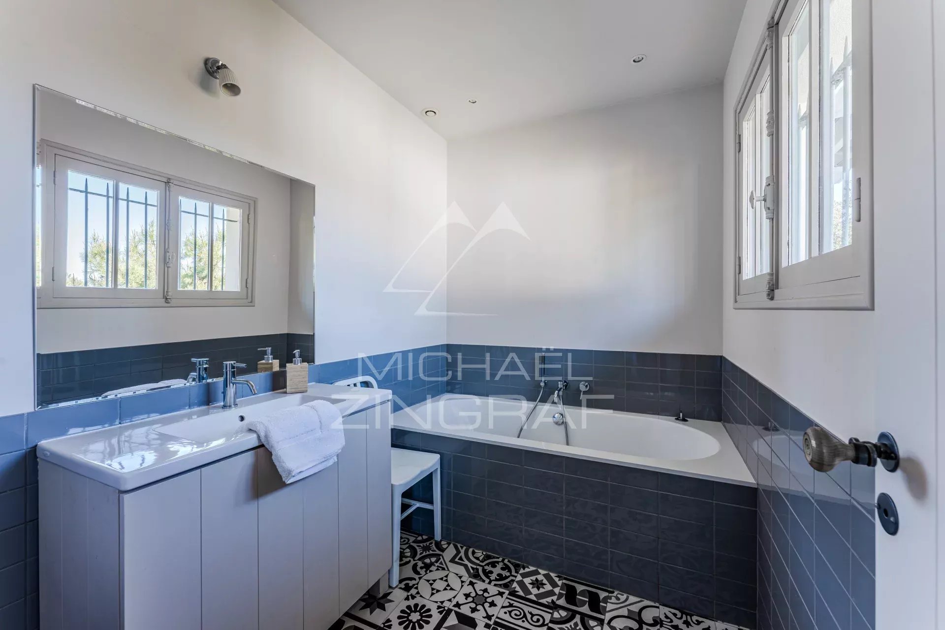 - Une première chambre avec un lit King Size, placards et salle de bain attenante avec baignoire.