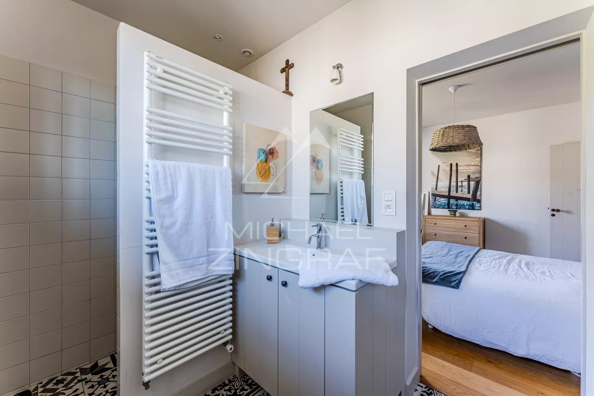 - Une deuxième chambre avec lit King Size, rangements et salle d'eau attenante avec douche à l'italienne.