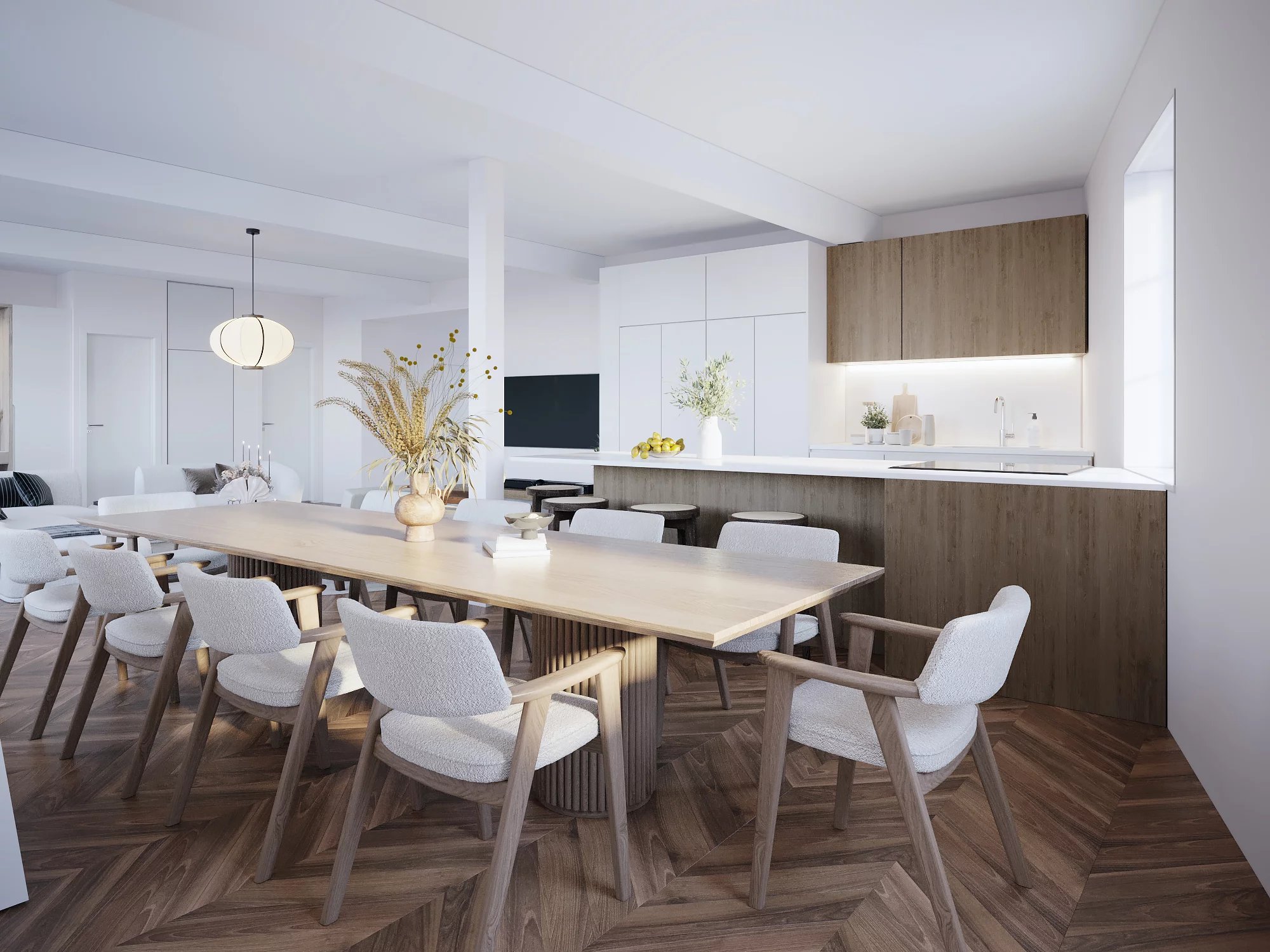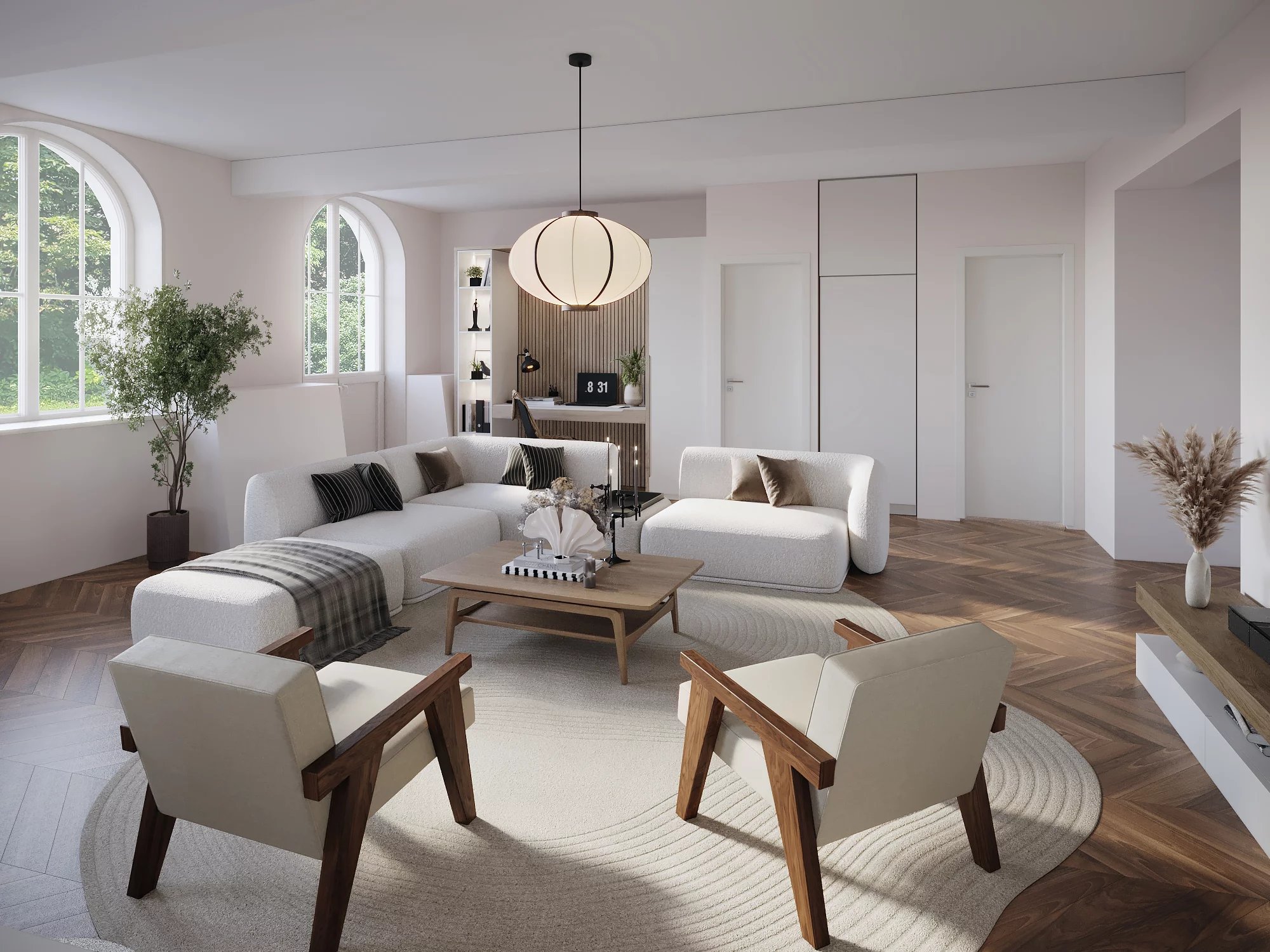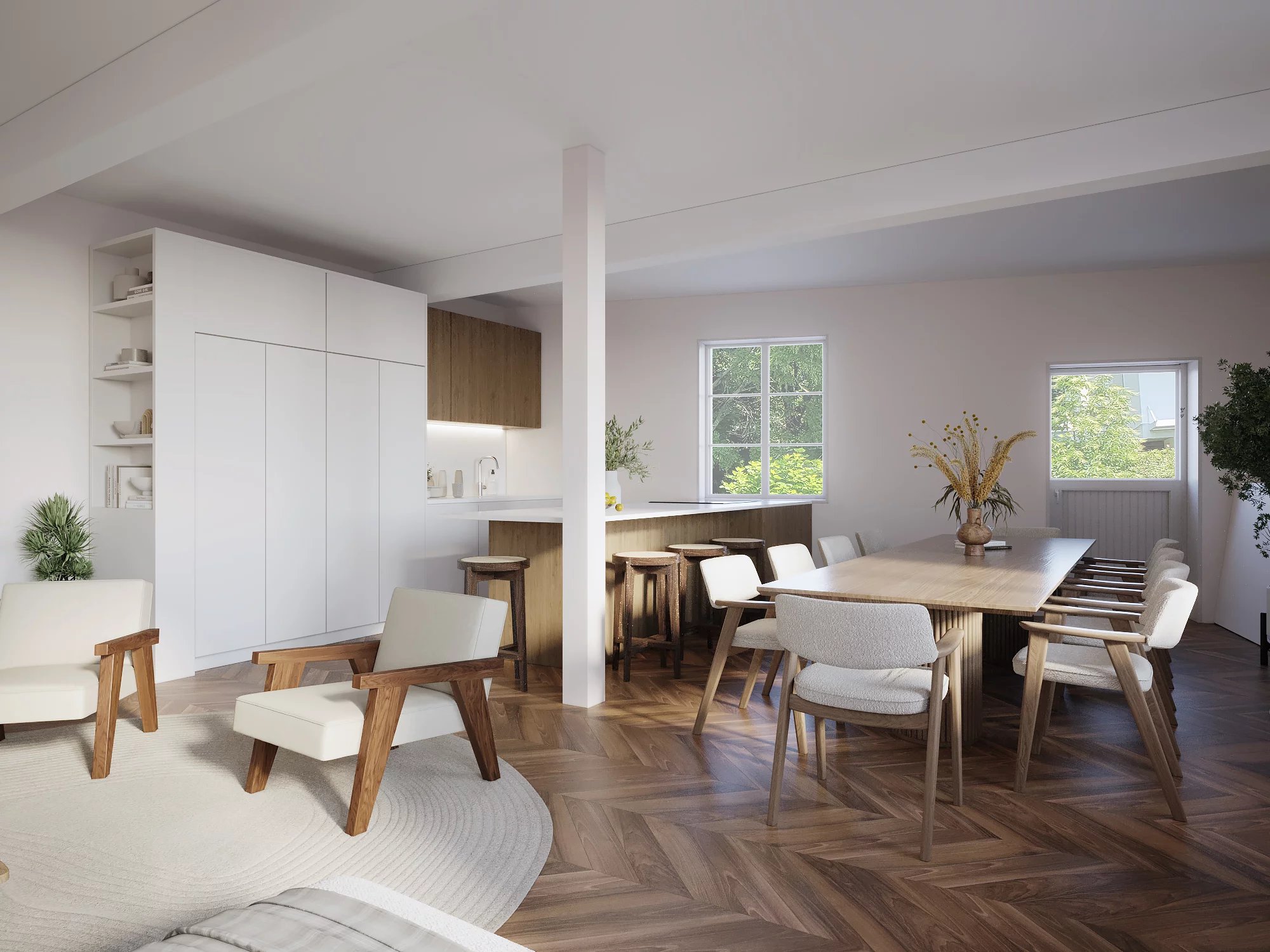 •La pièce de vie est sublime grâce à ses ouvertures au style haussmannien.