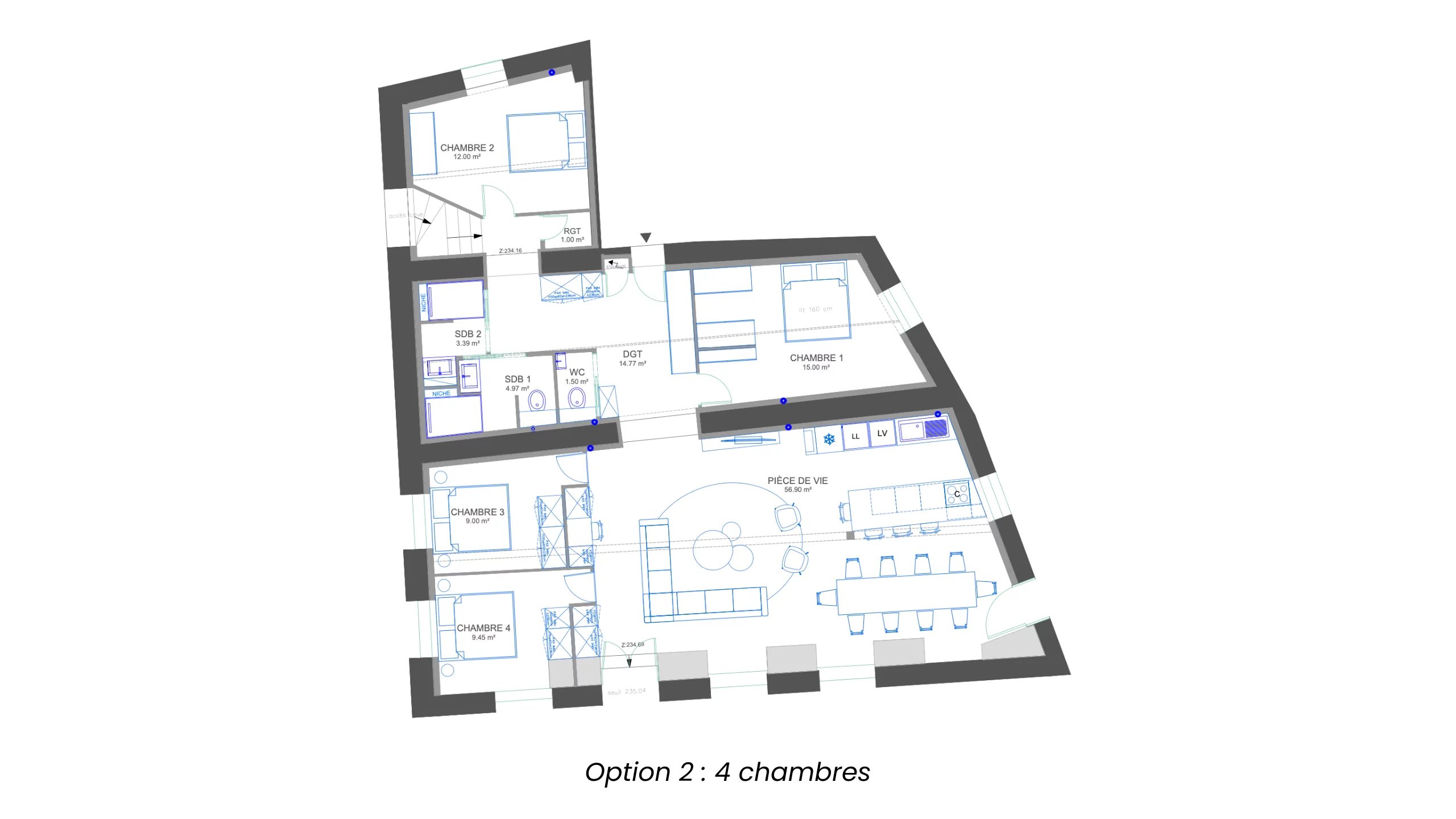 •Possibilité de faire 3 ou 4 chambres selon vos envies.