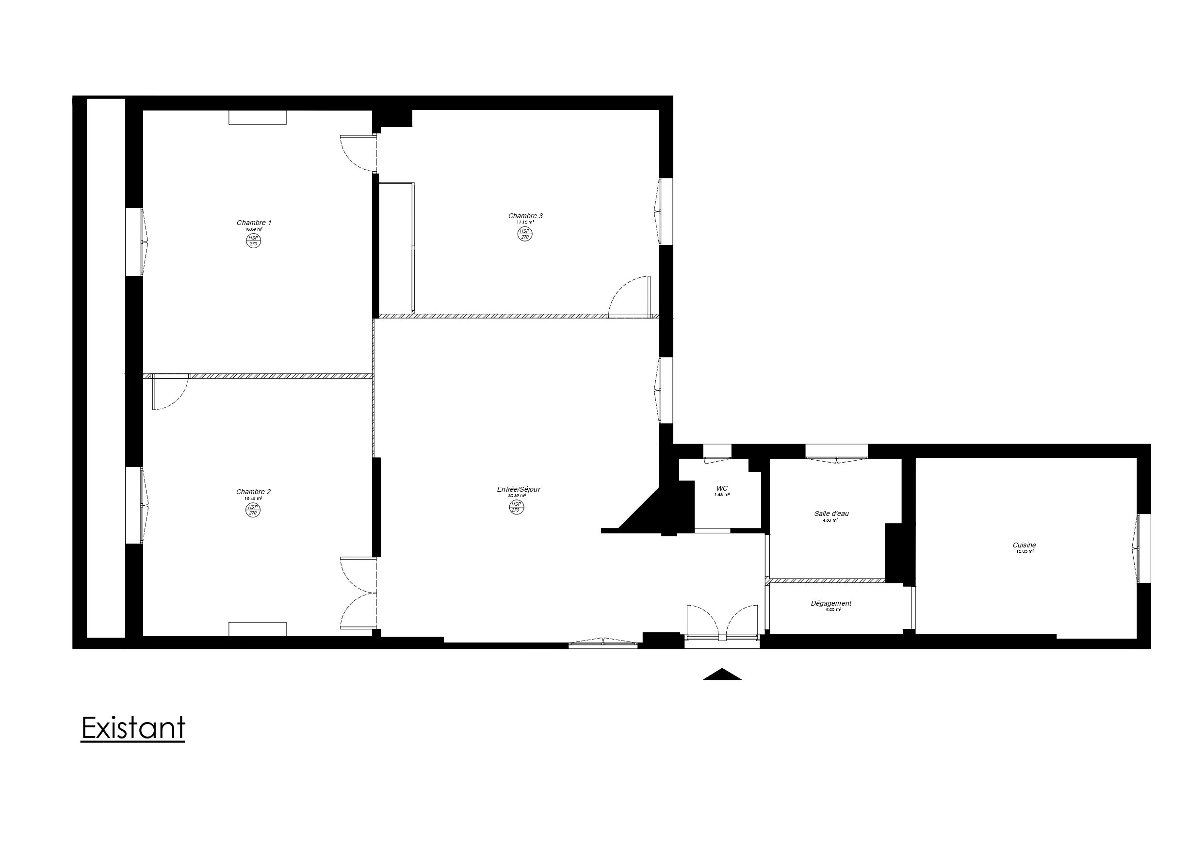 L'appartement est à rénover. Nous vous présentons lors des visites un ou plusieurs projet(s) imaginé(s) par l'un de nos architectes.