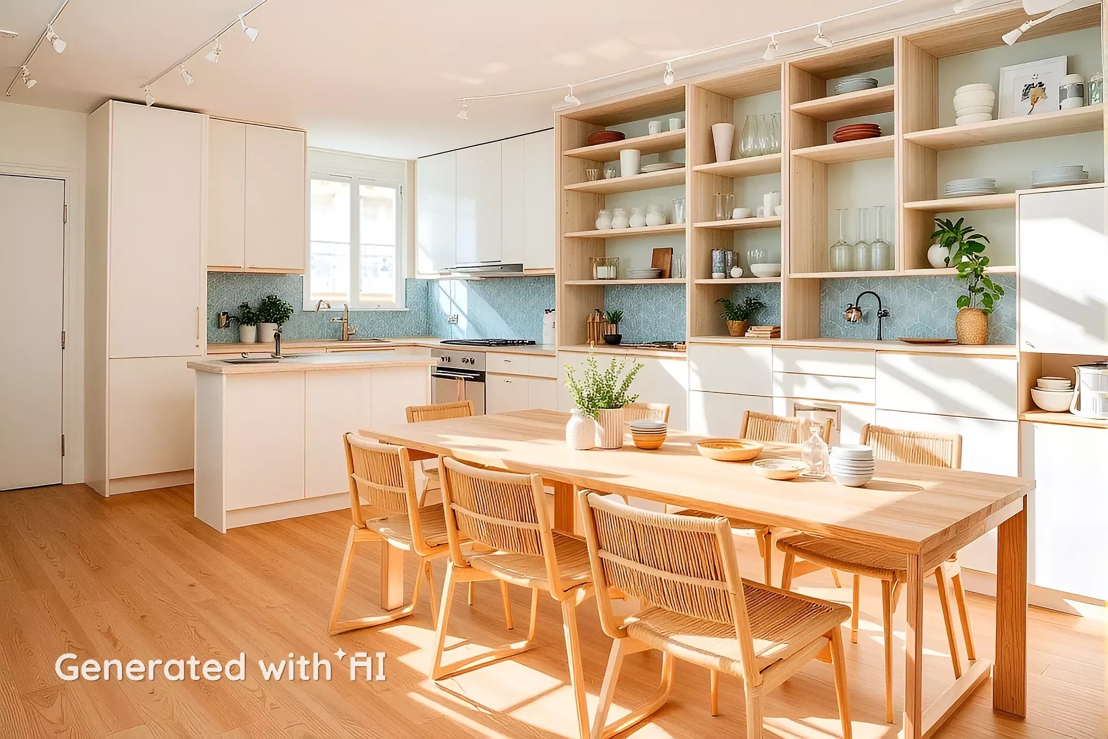 -Une belle pièce de vie très lumineuse de 40m2 avec la possibilité d'une cuisine entièrement ouverte ou semi-ouverte.