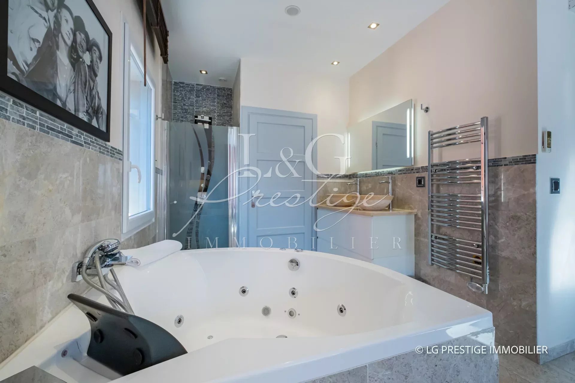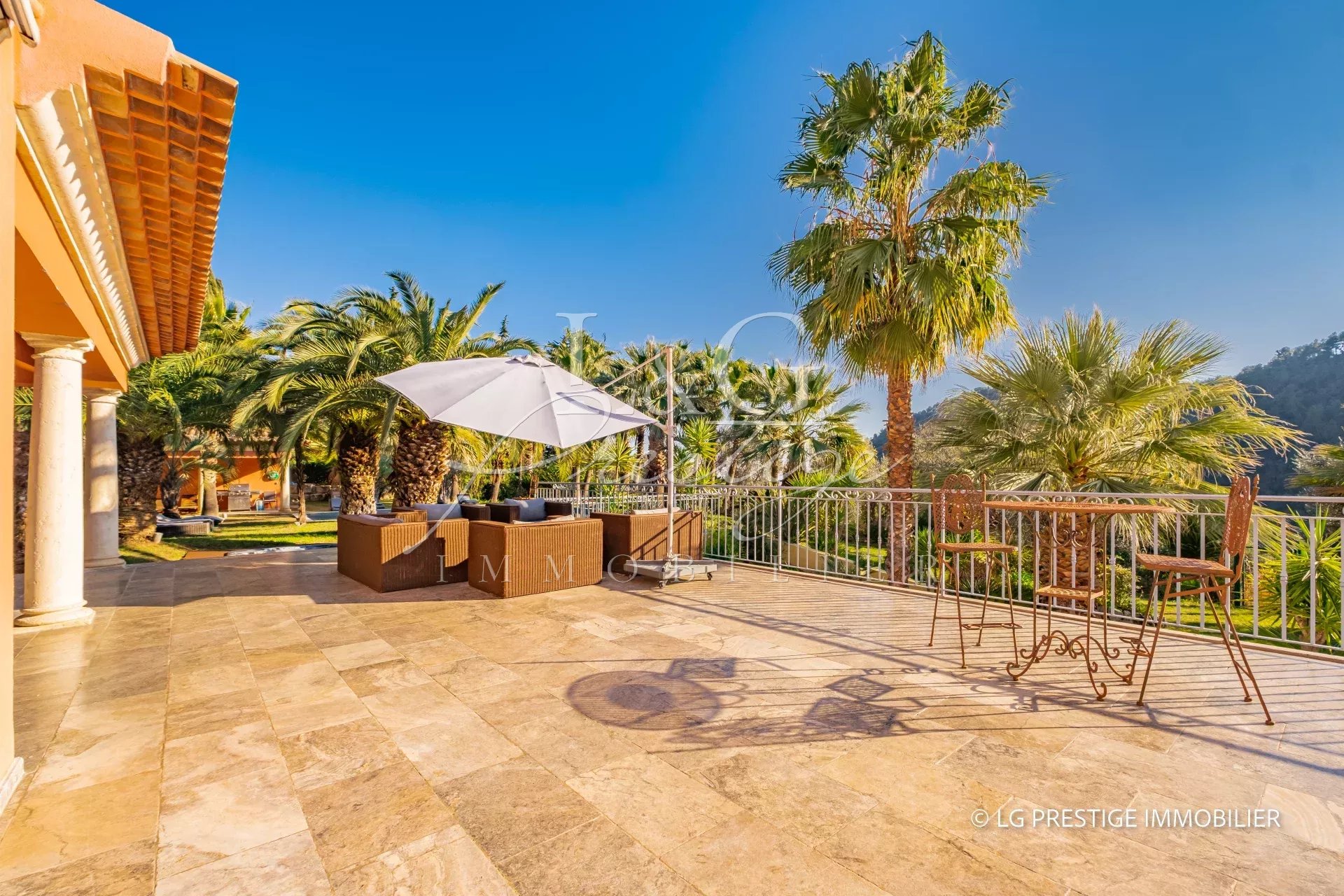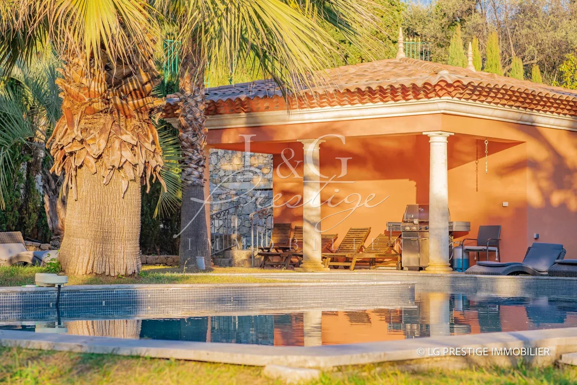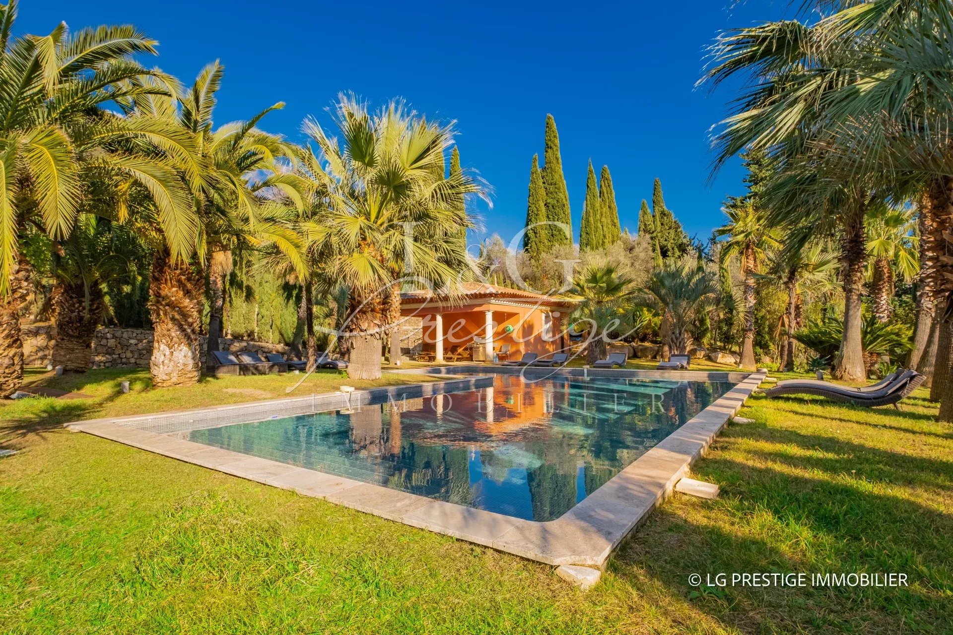 L'agence LG Prestige Immobilier de Mandelieu-La Napoule vous propose à la vente cette propriété d'exception : Située sur les hauteurs de Grasse, magnifique demeure de 420m² nichée dans un écrin de verdure. Elle offre une oasis de calme et de sérénité autour d'une somptueuse piscine chauffée, de grandes terrasses entourées d'une végétation luxuriante et à l'abri des regards. Répartie sur 3 niveaux, elle se compose de 2 cuisines équipées, 2 vastes salons, un grand séjour, et 7 chambres en suite avec salle de bain/douche. Une salle de cinéma et une salle de sport avec sauna et hammam offrent des espaces de détente luxueux. Un garage double vient compléter ce tableau idyllique.