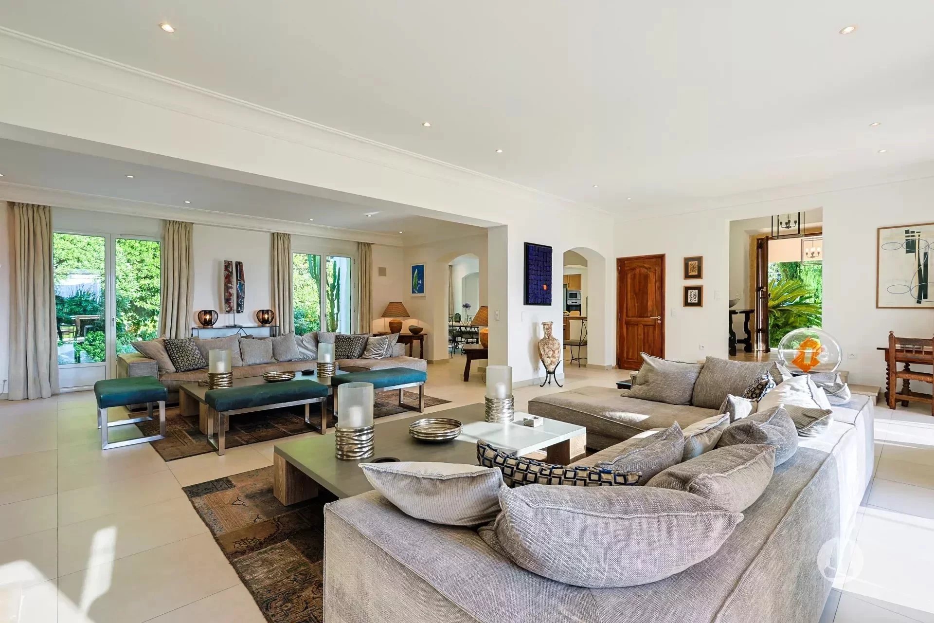 Superbe villa d'environ 400m2 avec vue dégagée proche du centre ville de Saint-Tropez. Cette villa offre un spacieux espace de vie comprenant un salon avec cheminée, une vaste salle à manger et une cuisine. Au rez-de-chaussée, vous trouverez quatre chambres avec salles de bains attenantes, chacune bénéficiant d'une terrasse privée. Un ascenseur vous conduit au niveau inférieur, où vous découvrirez trois chambres avec salles de bains attenantes, une buanderie équipée d'une chambre froide, ainsi qu'une salle de jeu équipée d'une table de billard. Au niveau de la piscine à débordement, un studio indépendant comprenant une salle de douche et une kitchenette, idéal pour accueillir des invités. Les espaces extérieurs vous invitent à profiter de moments de détente, avec un magnifique jardin, deux espaces repas en plein air équipés d'un barbecue, et deux salons d'été. La propriété bénéficie d'un double accès, offrant un minimum de huit places de stationnement, dont plusieurs sont couvertes. “Les informations sur les risques auxquels ce bien est exposé sont disponibles sur le site Géorisques http://www.georisques.gouv.fr”.