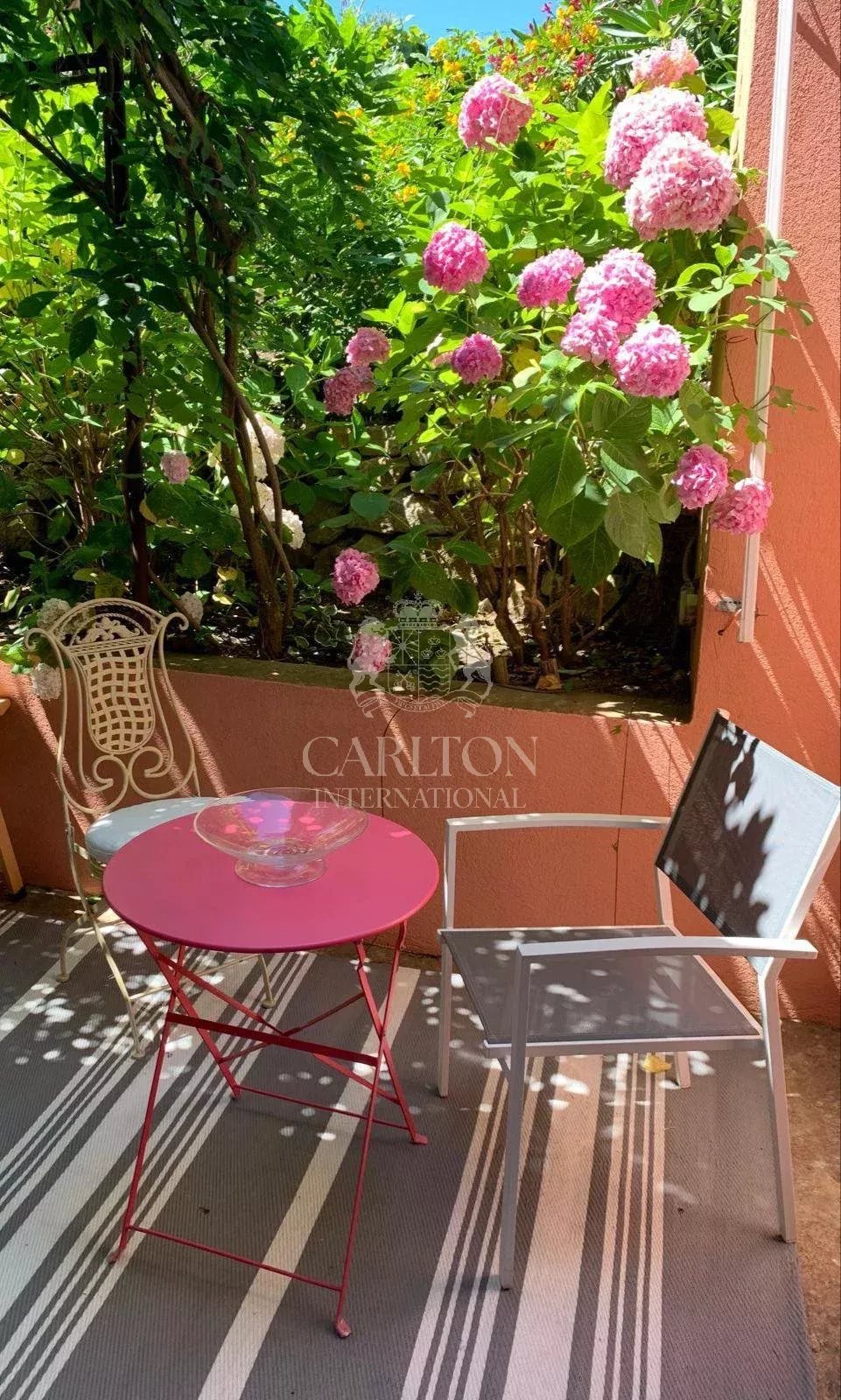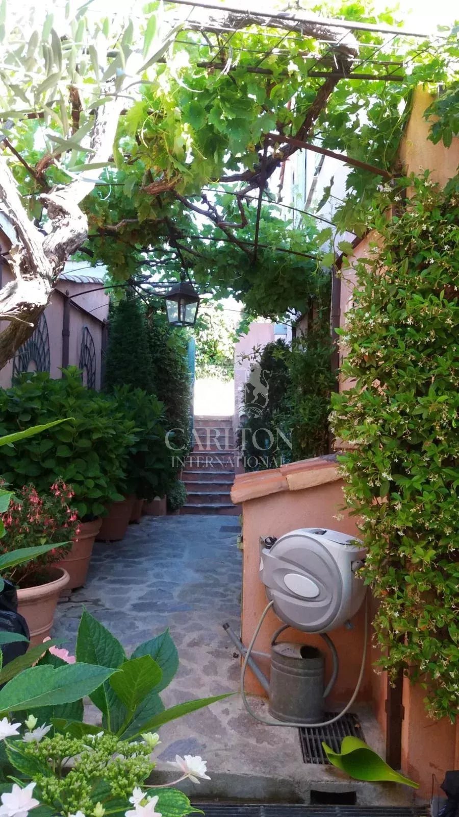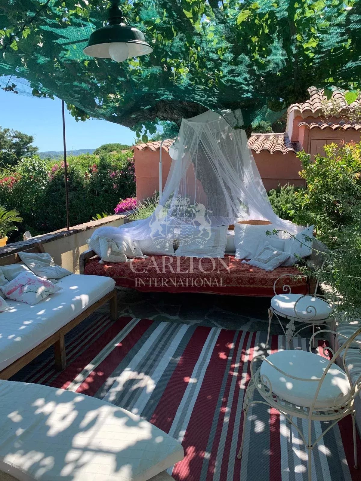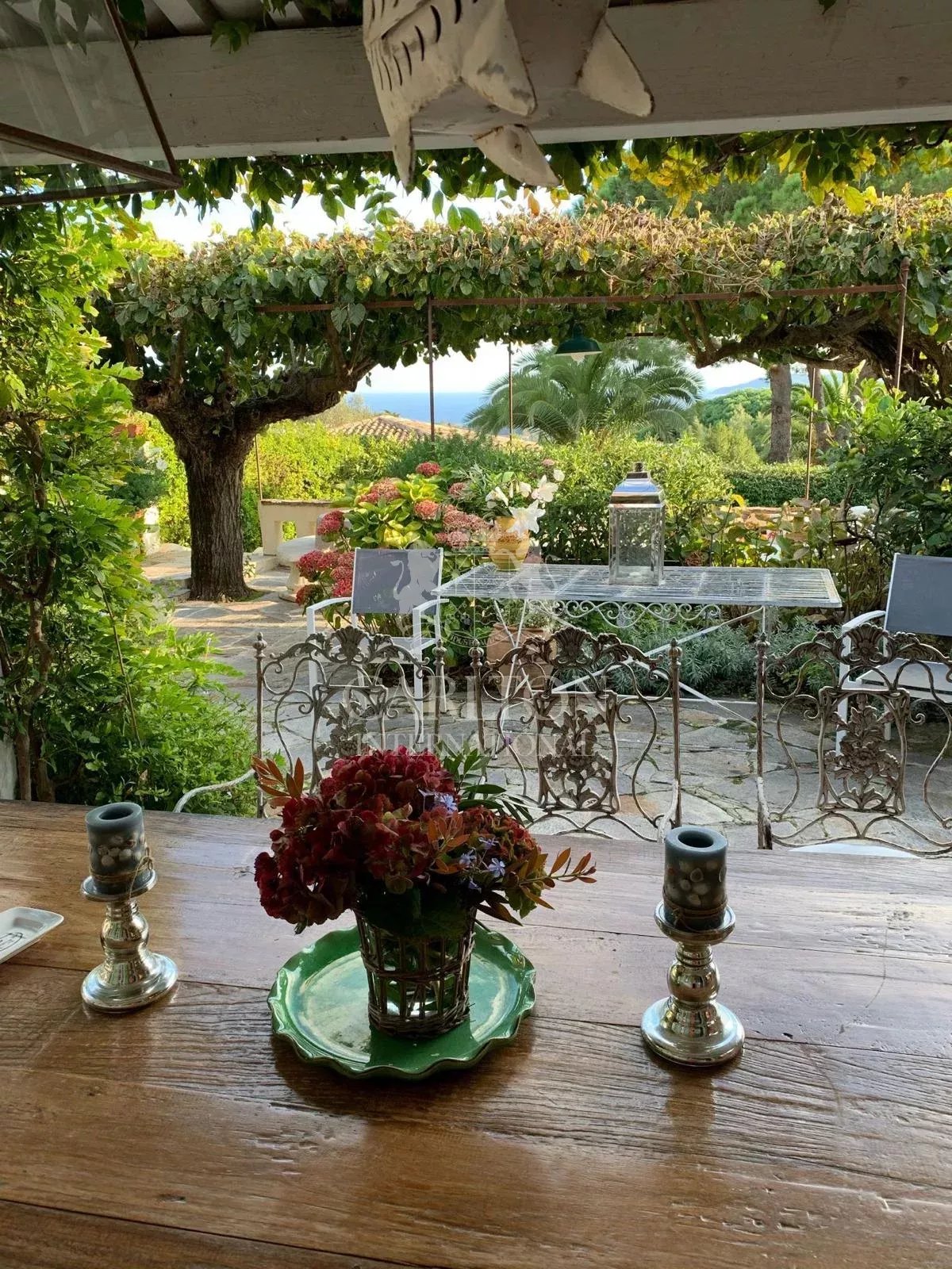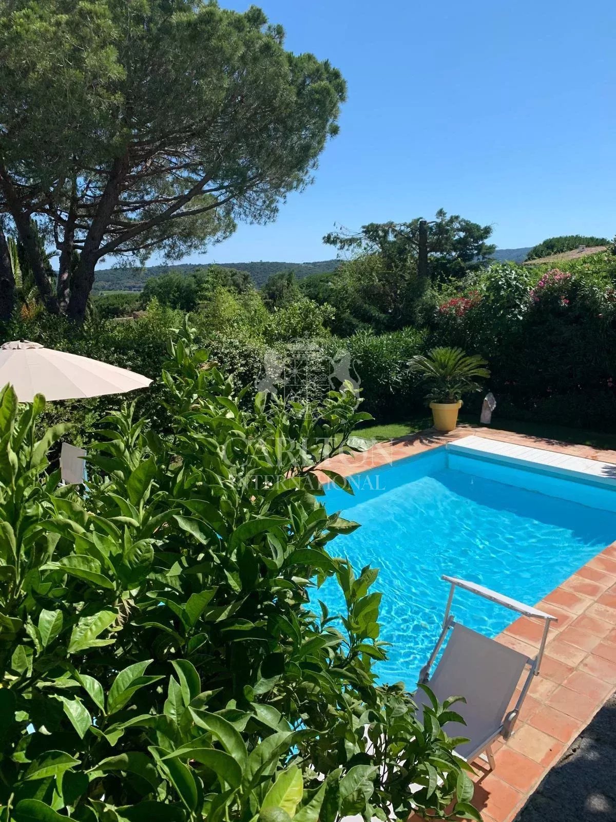 Saint-Tropez - En direction des plages de Tahiti, maison de charme d'environ 200 m2 habitable sur 2 niveaux, mitoyenne, composée de 2 appartements, d'une piscine, terrasse et jardin de 568 m2. En rez de jardin, l'appartement dispose de 3 chambres, cuisine et salon ouvrant sur la terrasse et le jardin. A l'étage, l'appartement se compose de 2 chambres, salon et cuisine et de combles aménagées. Le style de la maison et le jardin arboré séduiront les amateurs de charme provençal. La petite vue mer complète le décor.