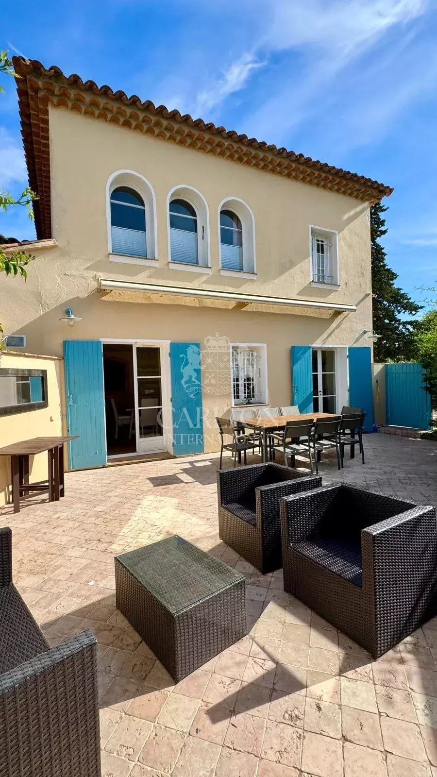 Saint-Tropez - maison en duplex, située dans un petit ensemble de 3 maisons avec piscine commune, à pieds de la "Place des Lices". Elle dispose d'une vaste terrasse privative et un parking privatif. Rez-de-Chaussée: – Séjour – Cuisine semi-ouverte – WC invités Etage: – 1 grande chambre de maitre avec salle de bains, wc et dressing – 2 chambres partageant une salle de bains et wc indépendant Extérieurs: – Parking pour une voiture – Piscine commune avec douche extérieure, pour trois maisons « Les informations sur les risques auxquels ce bien est exposé sont disponibles sur le site Géorisques : www.georisques.gouv.fr »