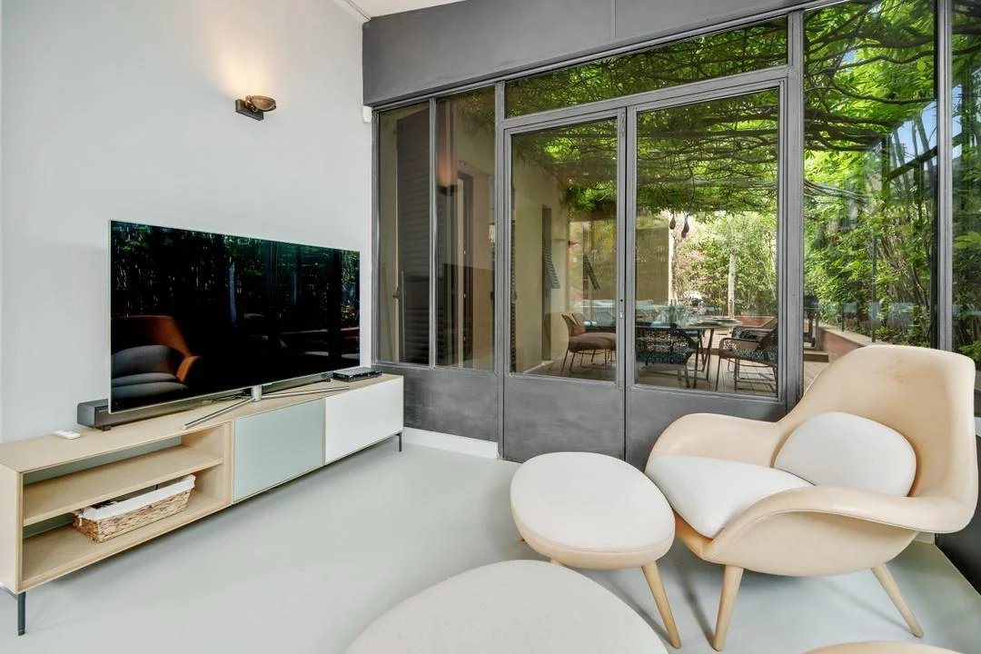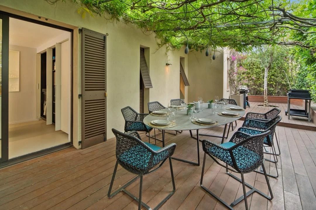 SAINT TROPEZ- A 100m de la mythique place des Lices, au cœur de St Tropez, superbe villa entièrement rénovée avec de beaux matériaux dans un esprit résolument contemporain. Entrée, 3 chambres avec salle de bain, dont une à l'étage, cuisine hi-tech, salon, véranda, terrasses, ravissant jardin arboré, petite piscine, et un studio indépendant. Très rare.. Vendu avec un garage fermé à proximité.
