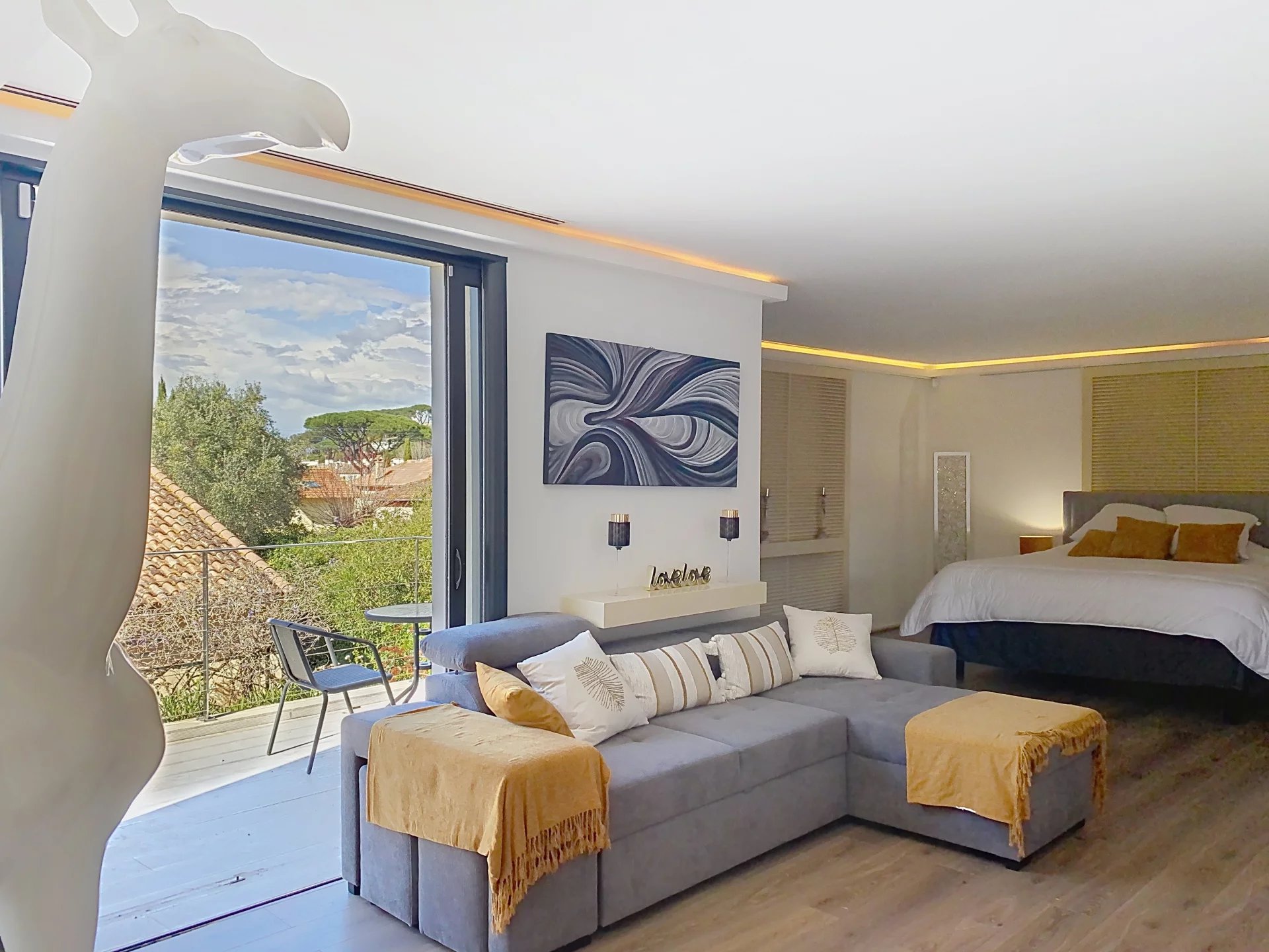 Saint-Tropez - Découvrez cette villa contemporaine de 200 m² située à 300 mètres de la place des Lices. Offrant quatre chambres spacieuses sur 2 niveaux, elle est idéale pour une famille à la recherche de confort et de tranquillité. Les installations modernes incluent la climatisation, une domotique avancée, et un système de sécurité complet. Le jardin de 850 m2, offre un espace de détente autour d'une jolie piscine de 8mx3m. La propriété est entièrement clôturée pour garantir une intimité totale, et sécurisé par un portail électrique. Garage et buanderie. Domotique. Alarme, climatisation.