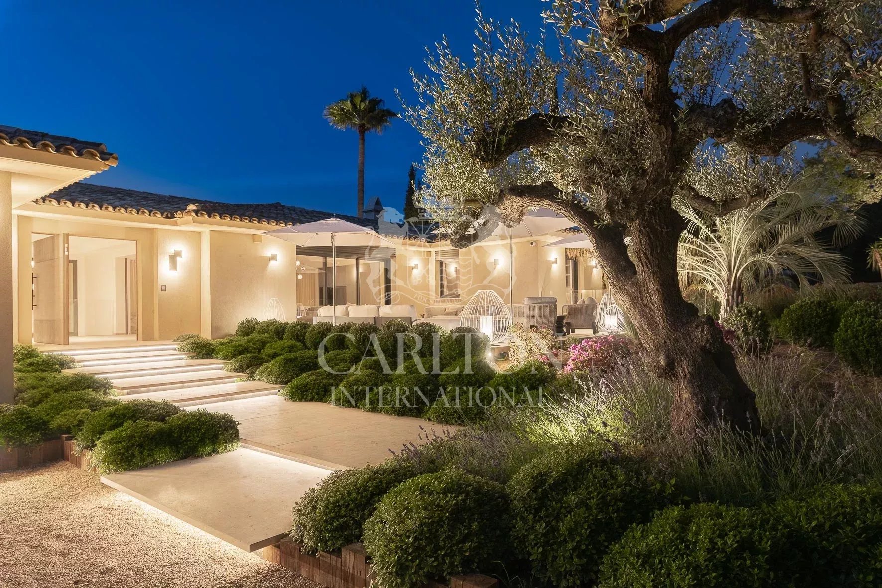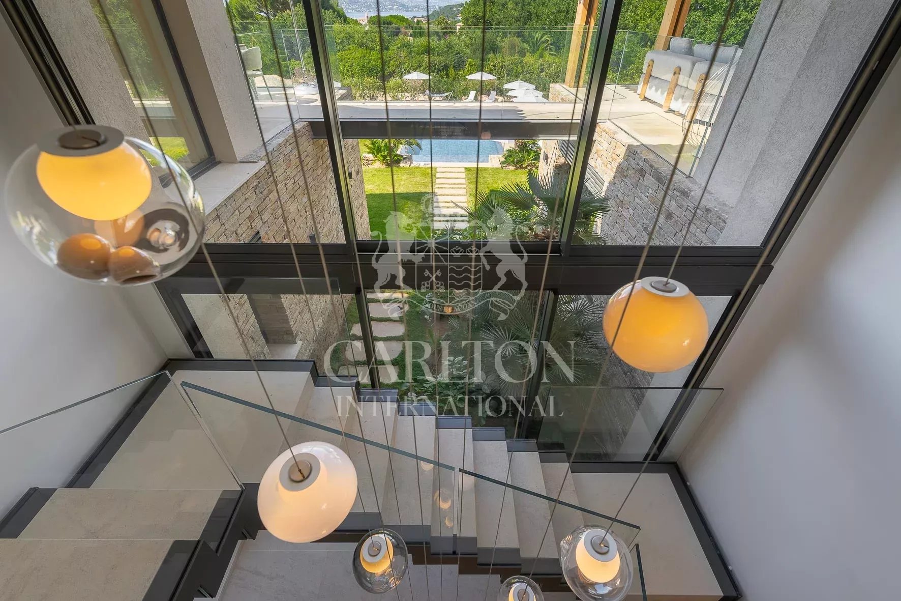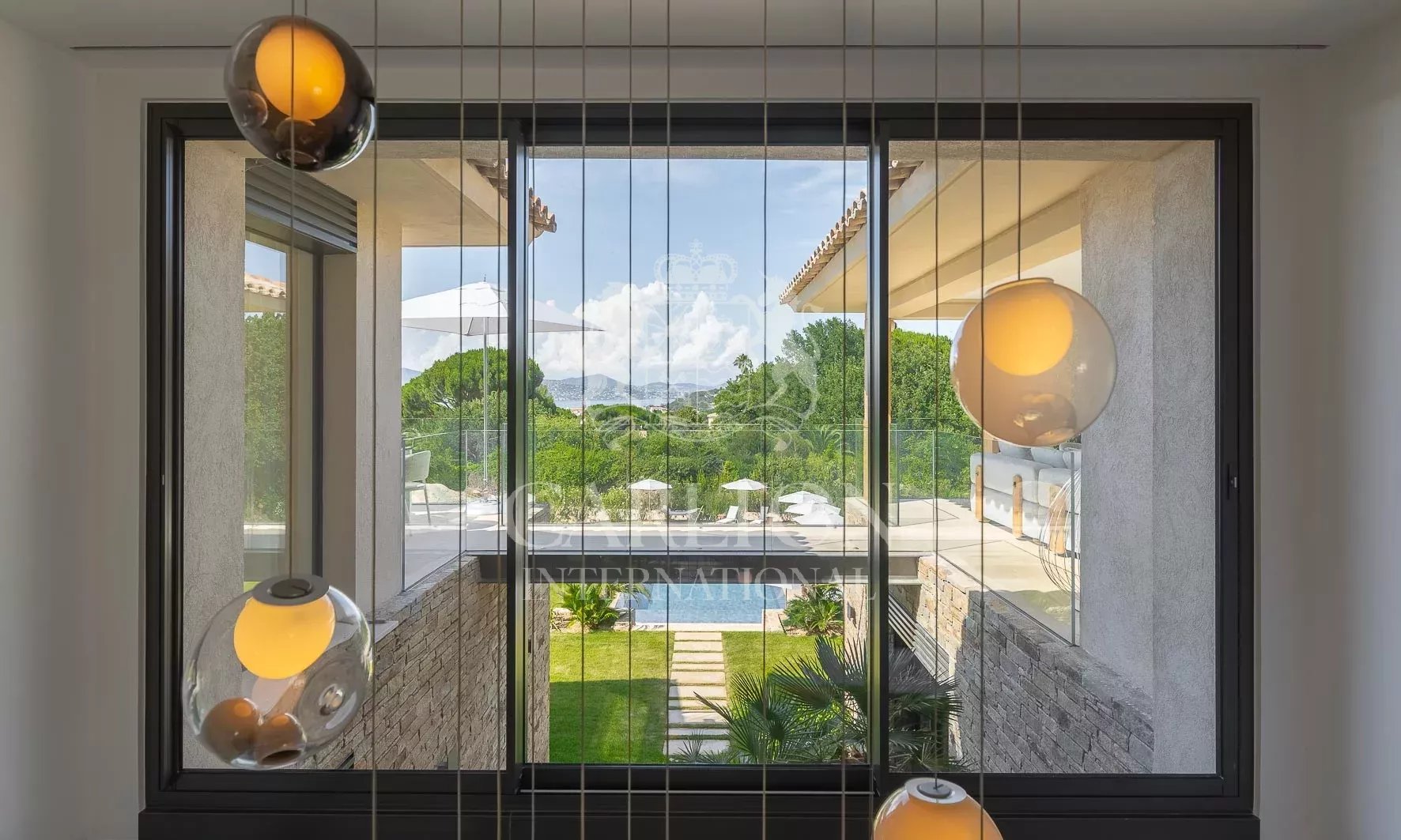 Saint-Tropez - Splendida casa contemporanea di nuova costruzione con caratteristiche di alta gamma e decorazioni di lusso. A soli 10 minuti a piedi dal centro del paese, godrete di una vista incantevole e ininterrotta sul paese e sul mare sullo sfondo. Immersa in un ampio terreno, questa proprietà di oltre 600 m2 comprende 6 camere da letto con bagno (di cui una padronale) + 2 camere da letto servite su 3 livelli. L'ampio soggiorno si apre su una grande terrazza coperta. La dependance di 250 m2 offre 3 camere da letto en-suite per gli ospiti. Pochi gradini conducono alla splendida piscina a specchio riscaldata, completa di pool house e cucina estiva. Garage, lavanderia, sala giochi, palestra e bagno turco. Facile accesso alle spiagge di Pampelonne. Rif. 14937