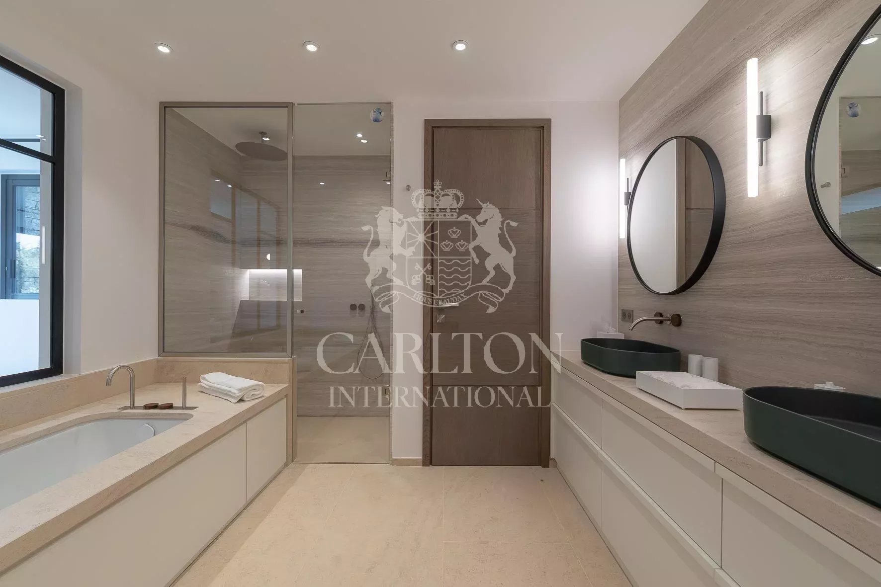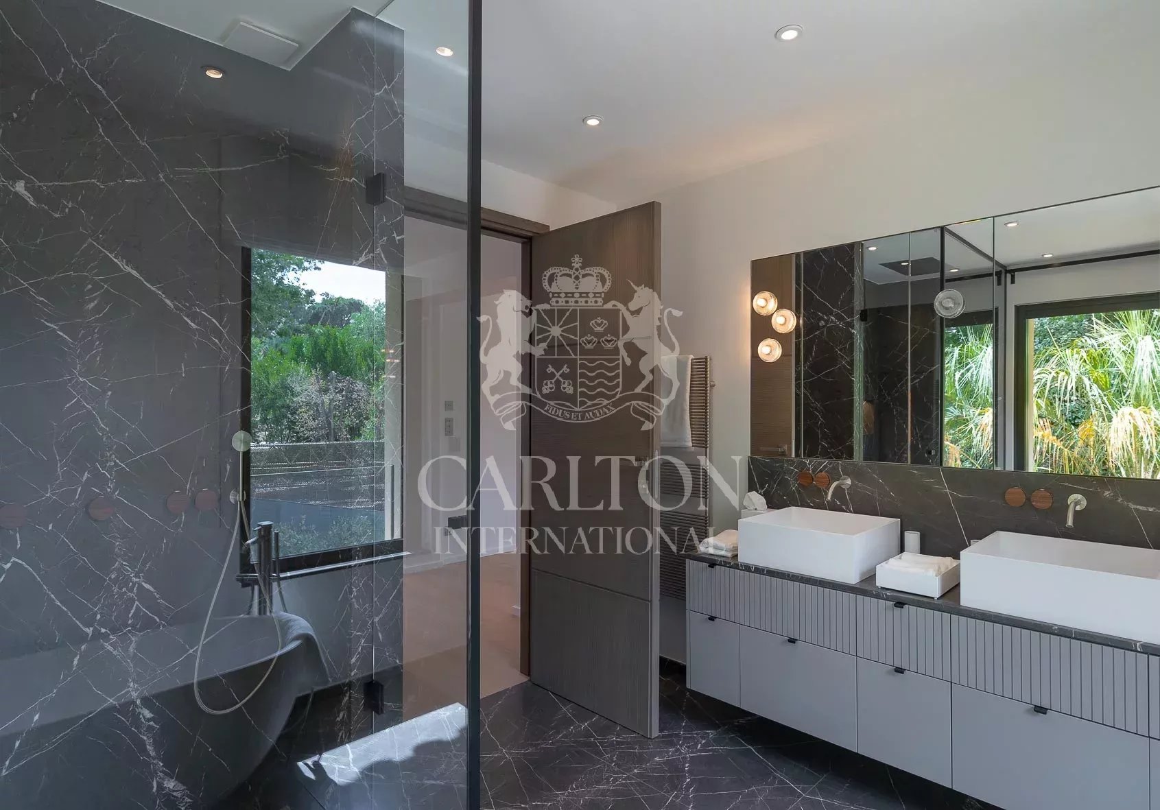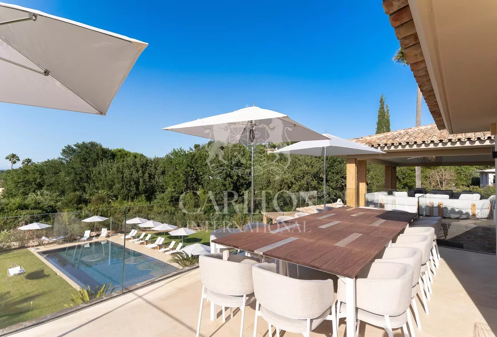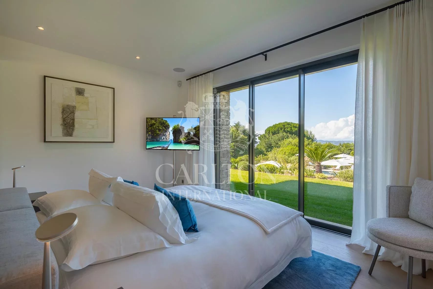 Saint-Tropez - Splendida casa contemporanea di nuova costruzione con caratteristiche di alta gamma e decorazioni di lusso. A soli 10 minuti a piedi dal centro del paese, godrete di una vista incantevole e ininterrotta sul paese e sul mare sullo sfondo. Immersa in un ampio terreno, questa proprietà di oltre 600 m2 comprende 6 camere da letto con bagno (di cui una padronale) + 2 camere da letto servite su 3 livelli. L'ampio soggiorno si apre su una grande terrazza coperta. La dependance di 250 m2 offre 3 camere da letto en-suite per gli ospiti. Pochi gradini conducono alla splendida piscina a specchio riscaldata, completa di pool house e cucina estiva. Garage, lavanderia, sala giochi, palestra e bagno turco. Facile accesso alle spiagge di Pampelonne. Rif. 14937