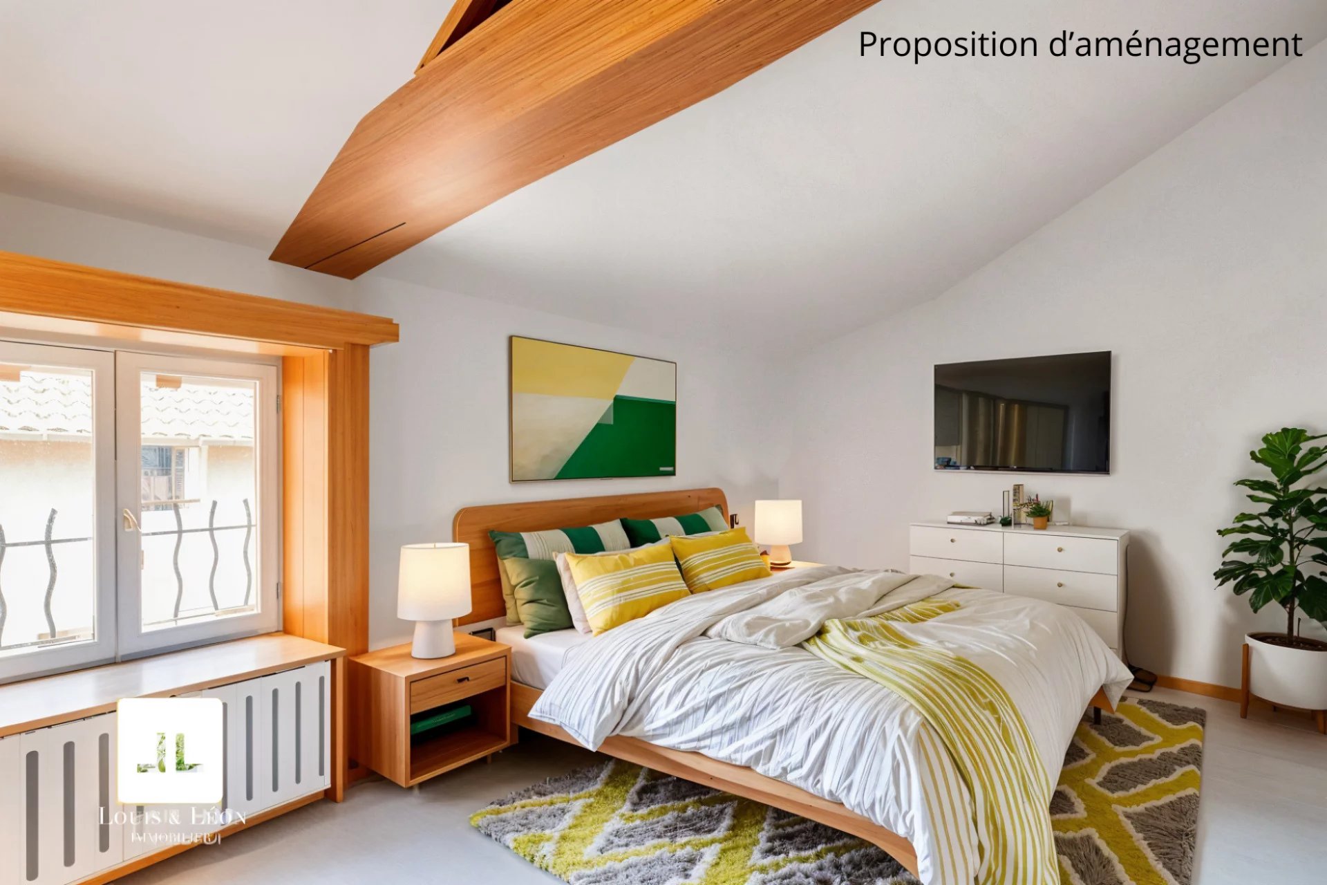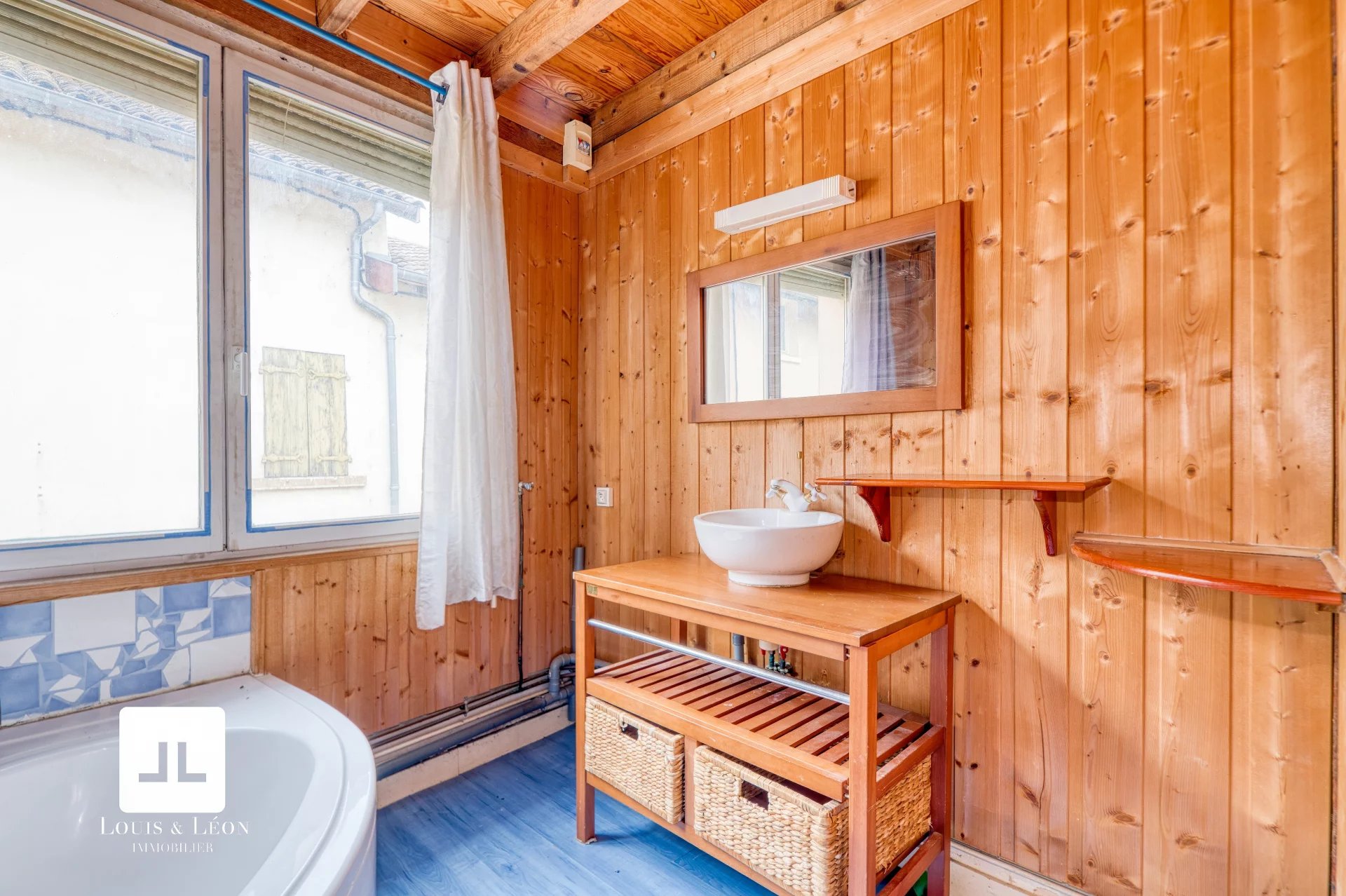 Louis & Léon Immobilier vous propose en exclusivité ce T4 en duplex et traversant de 78,6m2 de surface utile, 70m2 carrez idéalement situé en plein cœur de Belleville en Beaujolais. Il se trouve à deux pas de l’école maternelle, du cinéma et de la zone commerciale, au premier et dernier étage d’un petit immeuble de deux appartements, SANS COPROPRIETE. Vous serez séduits par sa localisation, son exposition traversante (est-ouest), et son fort potentiel. Au rez-de chaussée, vous découvrirez une entrée avec placard donnant sur un séjour de près de 30m2 et sa cuisine ouverte, ainsi qu’une pièce attenante de 8,5m2, permettant d’accéder à la salle de bain avec baignoire d’angle et équipée d’une fenêtre. Cet espace dispose d’une mezzanine et peut être transformé en suite parentale. L’étage situé directement sous le toit se compose d’une salle d’eau avec toilettes, d’une première chambre de 10m2 avec dressing, ainsi que d’une seconde chambre de 9m2 avec velux, toutes deux mansardées avec poutre apparente. Le plus : - Toiture refaite - Façade récente Du cachet et une belle superficie pour ce bien à fort potentiel ! Surface : 78,6m2 de surface utile, 70m2 carrez Prix de vente : 140 000euros FAI Pour toute demande d’informations complémentaires, contactez VINCENT CHARBONNET – O6 43 11 28 48 Performance énergétique et climatique : E/E